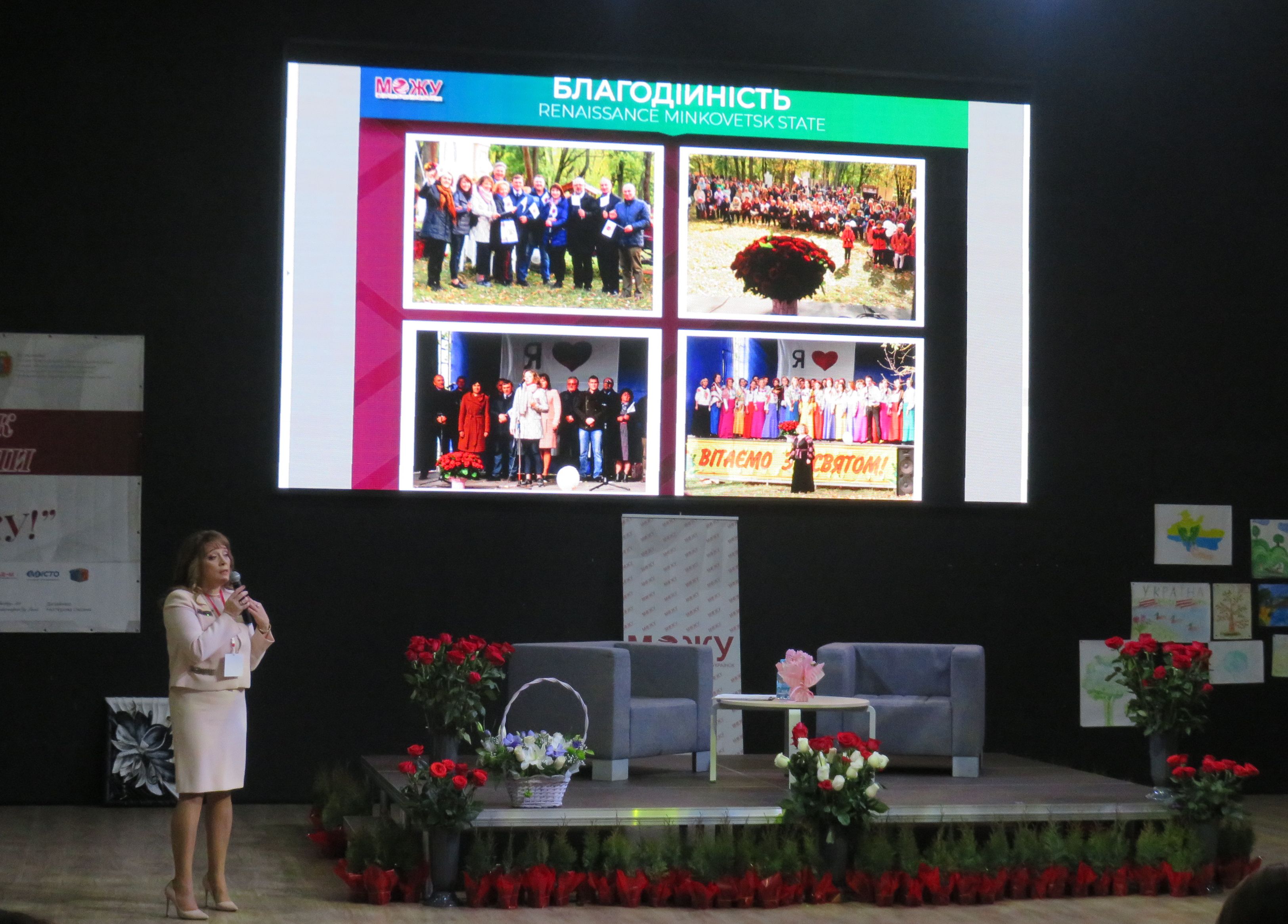 Про діяльність Міжнародного об’єднання жінок-українок «МОЖУ» розповіла генеральний директор і співвласник металургійного підприємства ТОВ «Тін Імпекс», співзасновниця Міжнародного об’єднання жінок-українок «МОЖУ», організаторка та модераторка Форуму, Амбасадор Міжнародної амбасади жінок підприємниць, Посол Миру, голова Благодійного фонду «Відродження Миньковецької держави», партнер міжнародних дитячих проєктів, співорганізатор глобального проєкту «Озеленення України», Кавалер-леді ордену княгині Ольги ІІІ ст. Аліна Скоморохова.