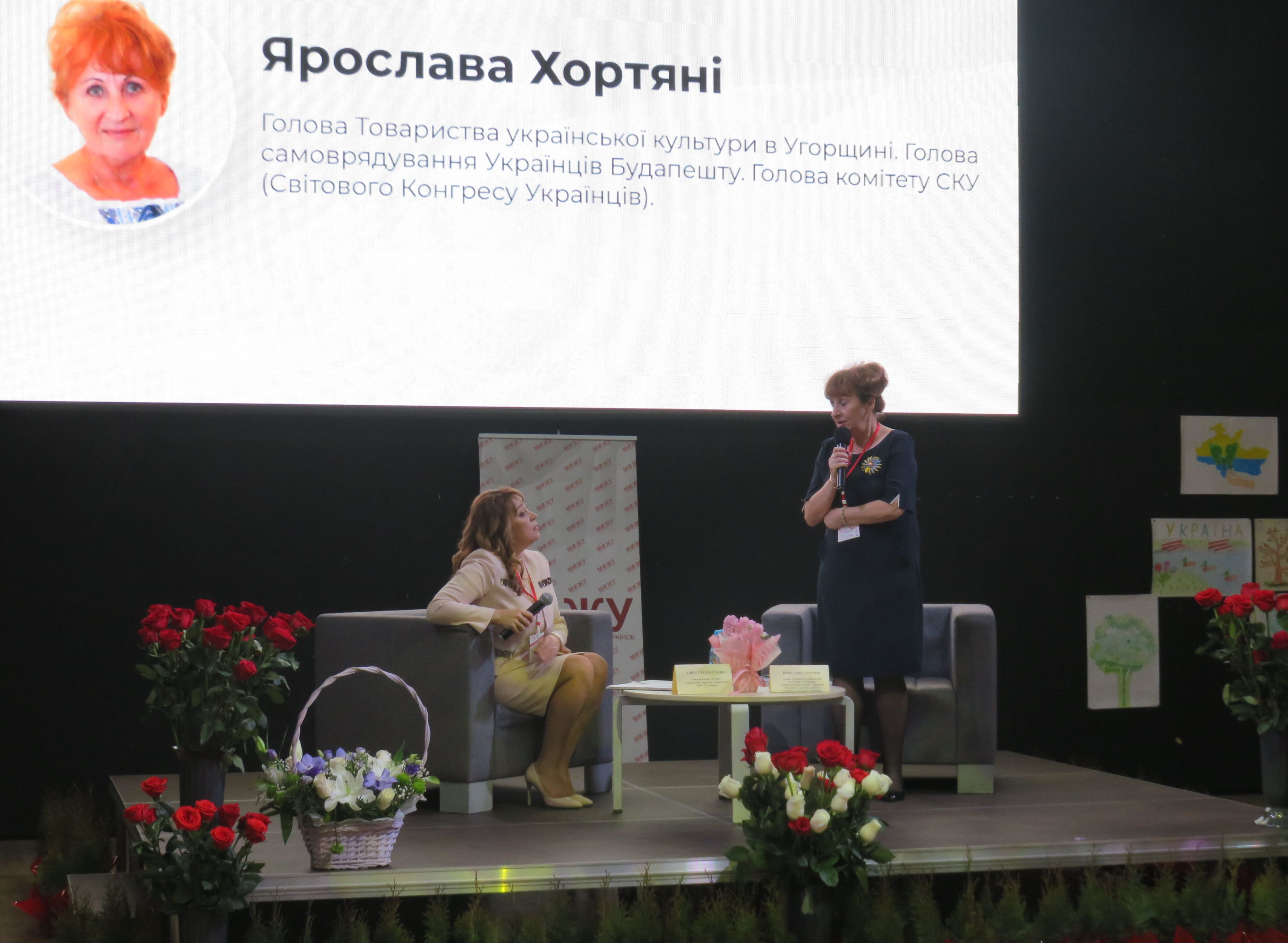 Так, голова Товариства української культури в Угорщині, Голова самоврядування українців Будапешту, Голова комітету СКУ (Світового Конгресу Українців) Ярослава Хортяні поділилася власним досвідом просування інтересів України в Угорщині. Пані Ярослава з 1979 року мешкає в цій країні і активно працює над створенням позитивного іміджу для України.