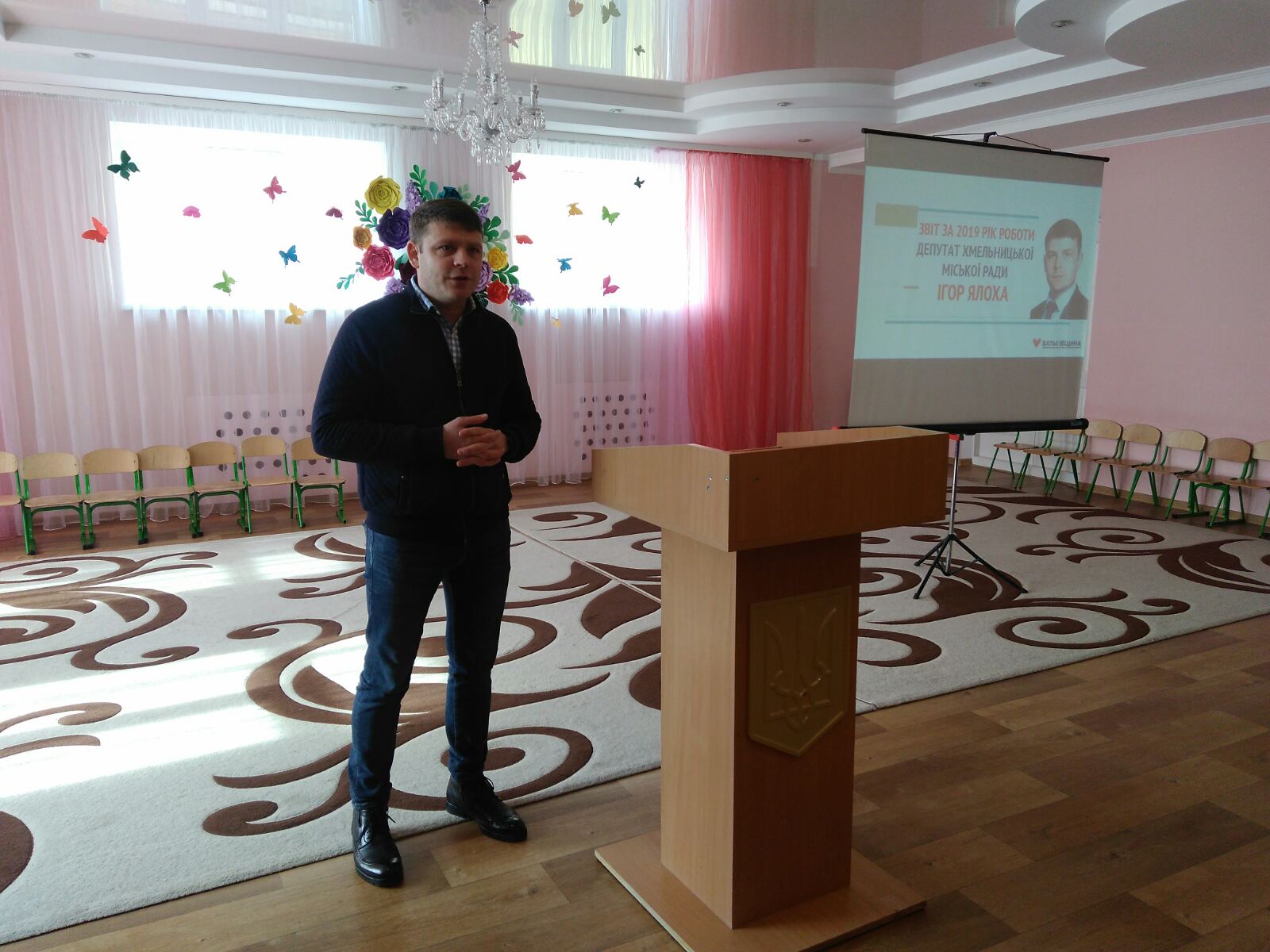 Сьогодні в приміщенні в НВК №31 депутат Хмельницької міської ради Ігор Ялоха відзвітував перед виборцями свого округу. Спілкуючись із присутніми, Ігор Станіславович зазначив, що свою роботу, як депутата, з моменту обрання організовував та проводив у таких пріоритетних напрямках, як участь в сесійних засіданнях та роботі в постійній комісії з питань житлово-комунального господарства. Особливу увагу депутат приділяв роботі на окрузі, зустрічі з виборцями та особистим прийомам громадян.