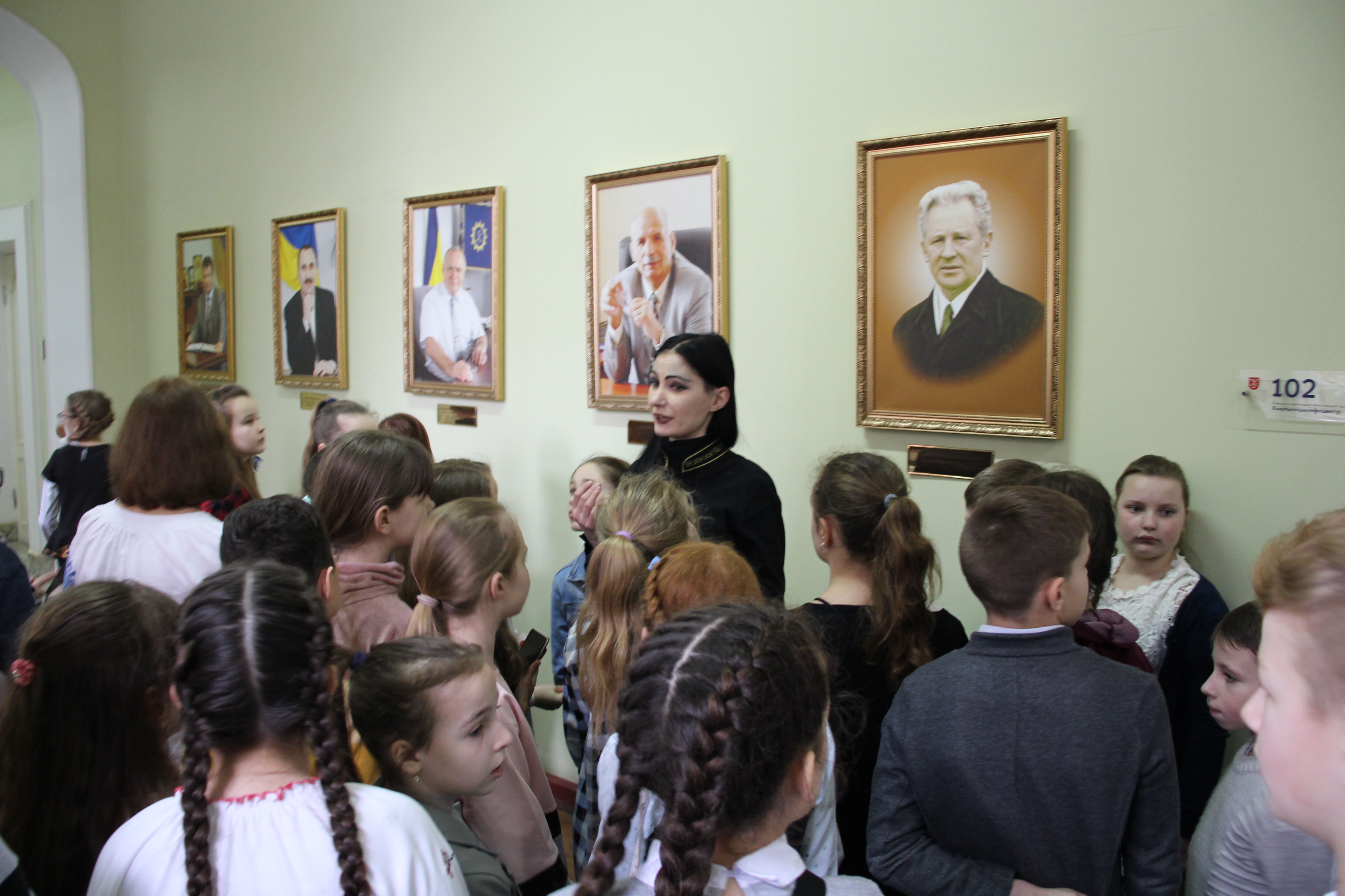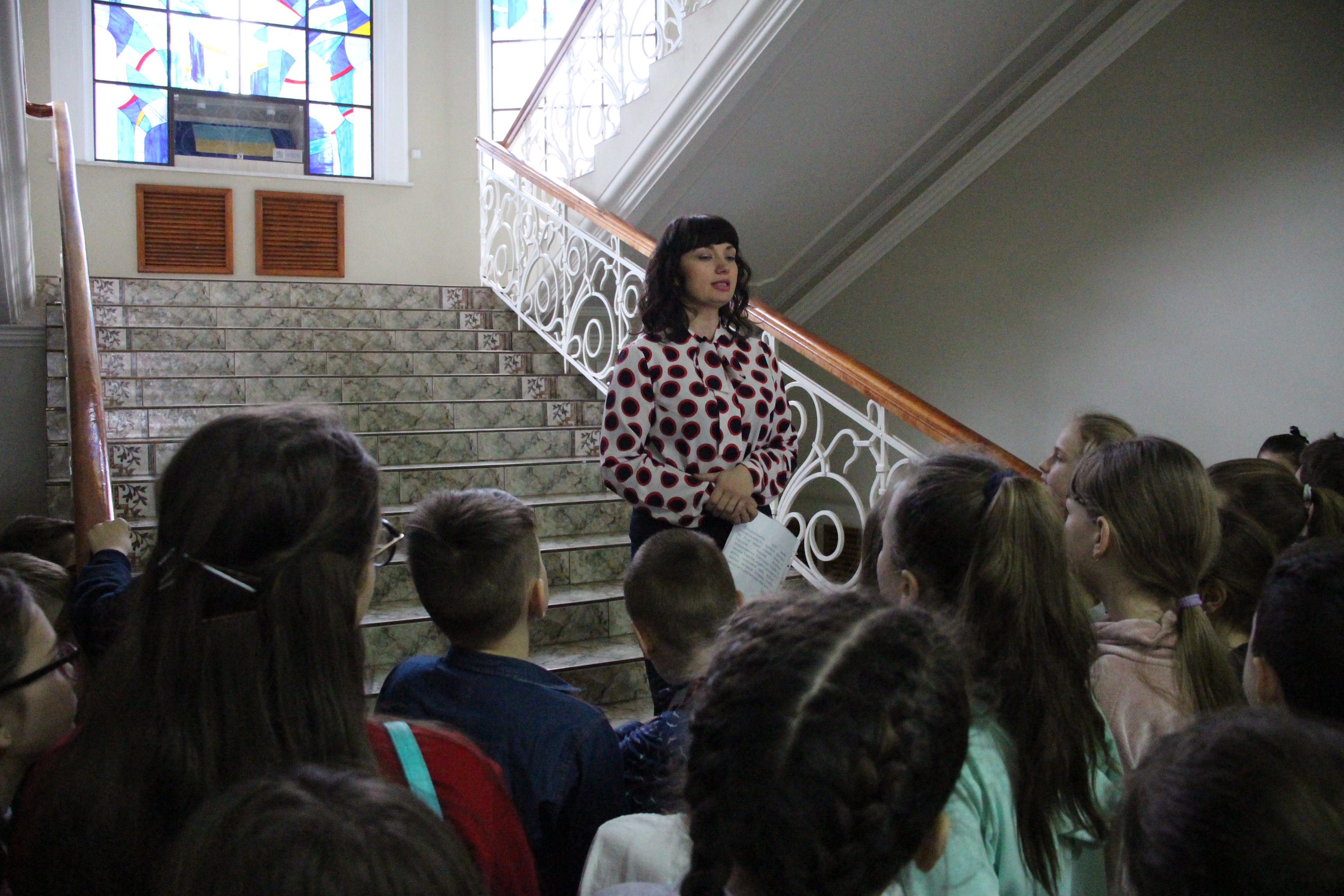Під час екскурсії школярі також мали можливість дізнатися скільки років нашому місту й будівлі, в якій нині працює міська рада, хто керував Хмельницьким у минулому. Про це їм розповідала працівниця музею історії міста Марина Грень.
