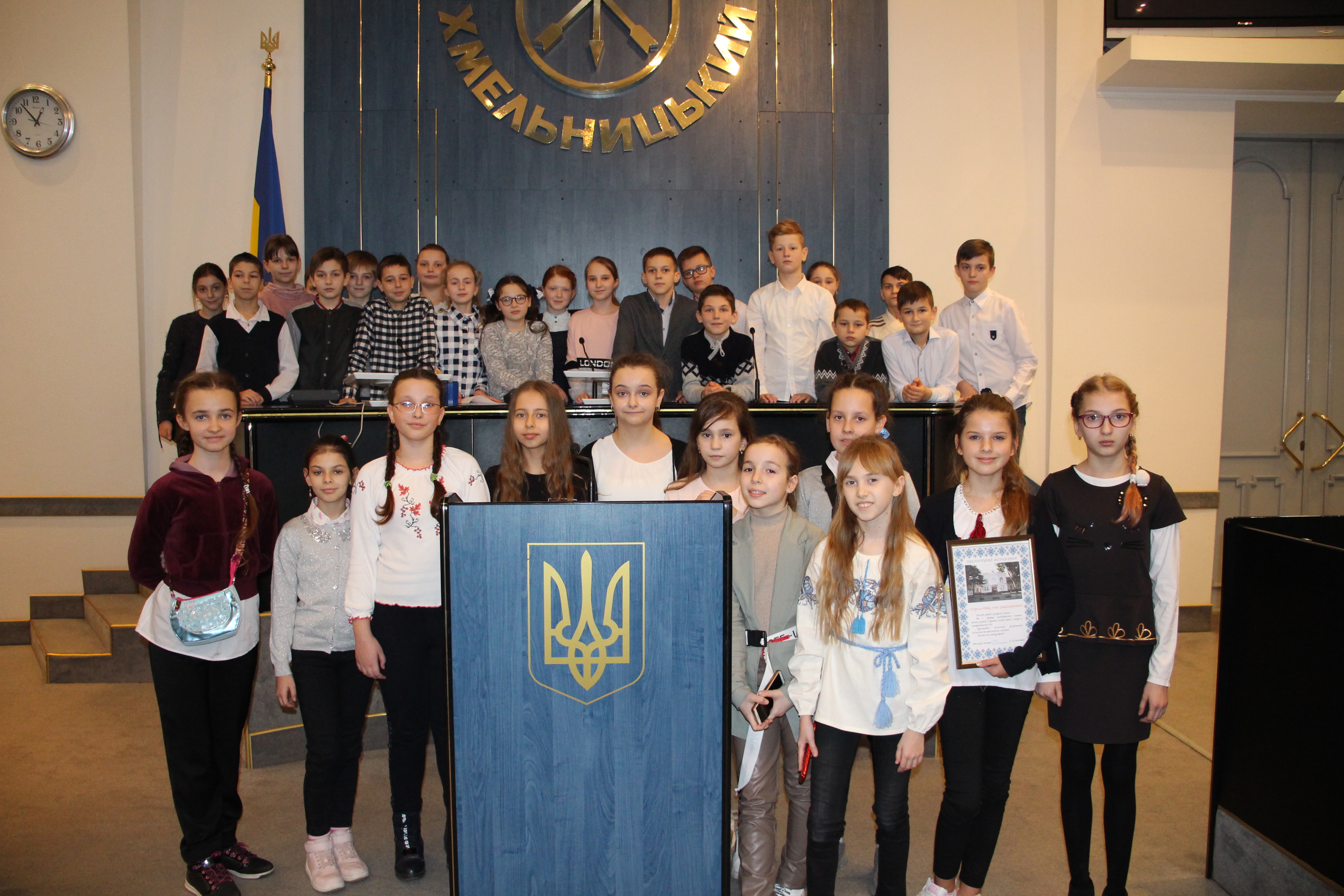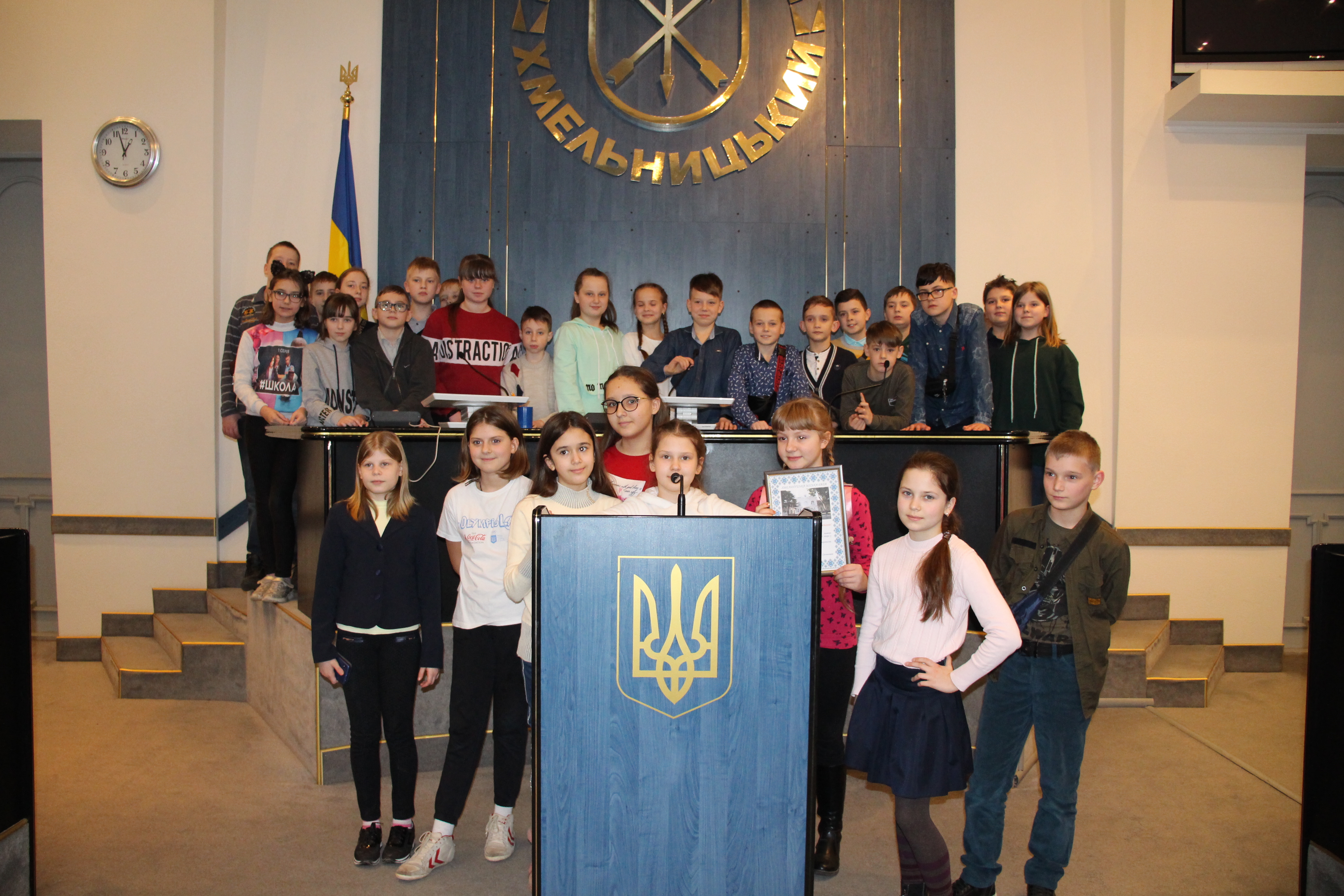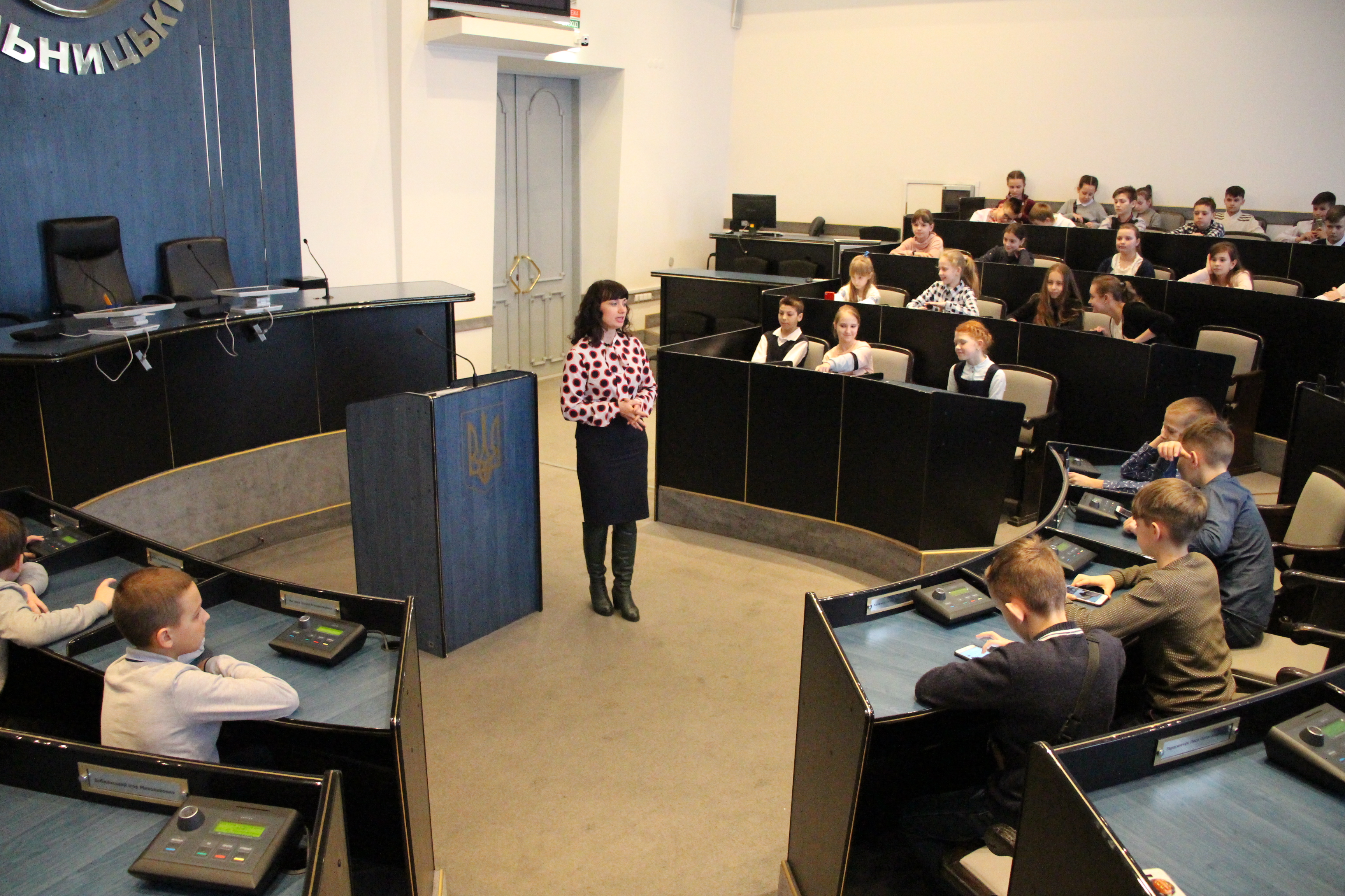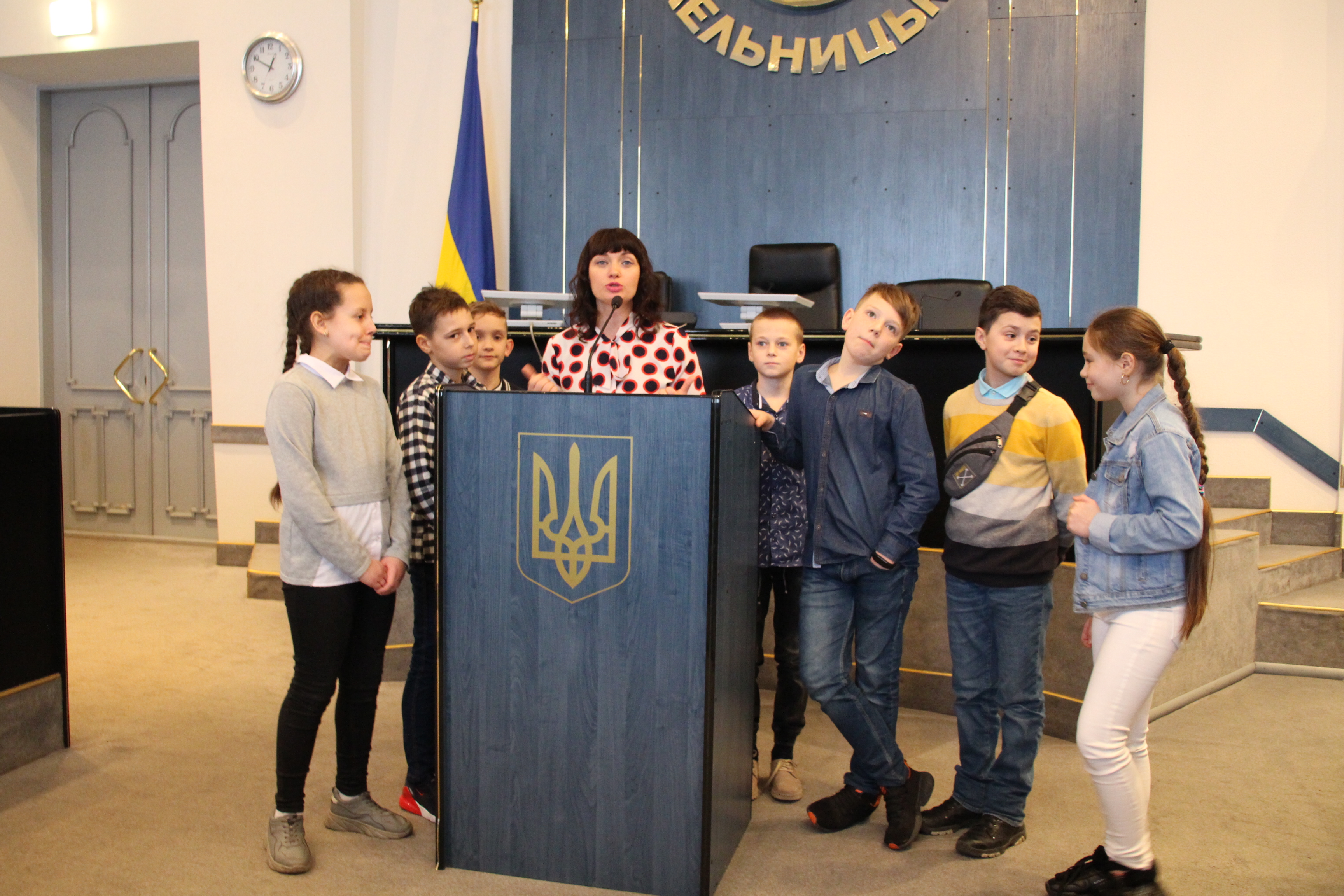 Керуюча справами та ідейна натхненниця масштабного освітнього проєкту – екскурсії міською радою Юлія Сабій показала п’ятикласникам сесійну залу, розповіла їм про роботу міської ради. Із великим захопленням школярі обирали серед однокласників міського голову, його заступників, секретаря міської ради, мали можливість посидіти на їх робочих місцях у залі. За допомогою керуючої справами хлопчики, які «балатувалися» на посаду міського голови, відповідали на запитання однокласників. Під час жвавої дискусії діти проявляли свою допитливість, ерудованість і обізнаність у питаннях життєдіяльності рідного міста. Серед питань ремонту доріг та благоустрою міста особливу увагу приділяли чистоті на вулицях рідного Хмельницького і навіть запропонували збільшити штрафи для тих, хто смітить. Викинув сміття у неналежних місцях - сплачуй значний штраф – переконані п’ятикласники.