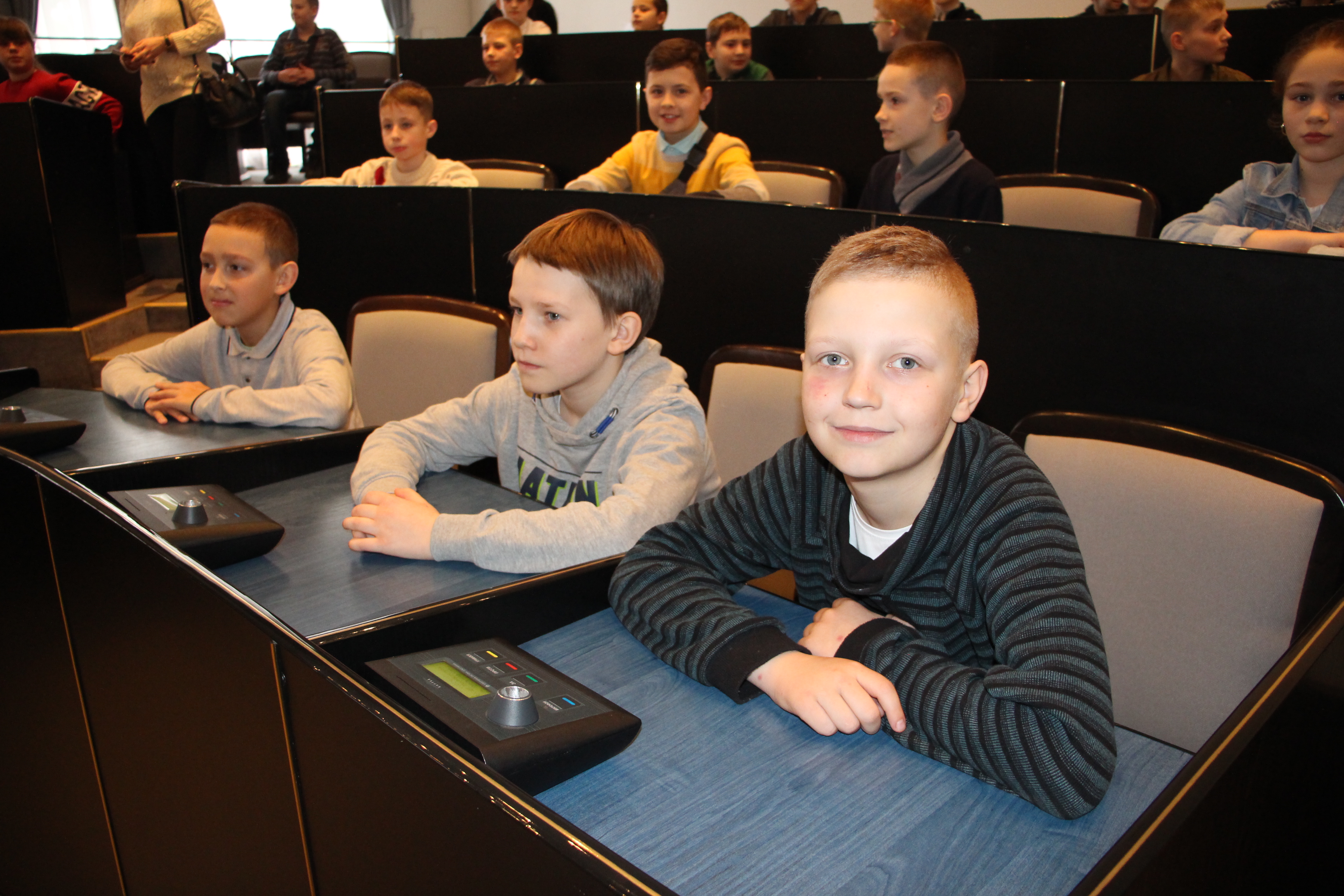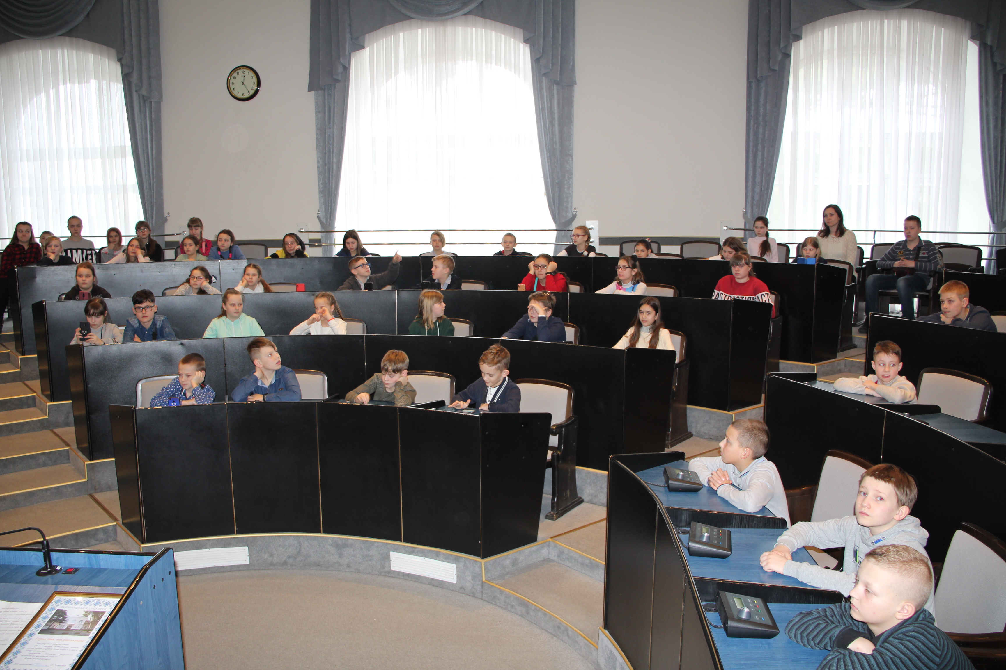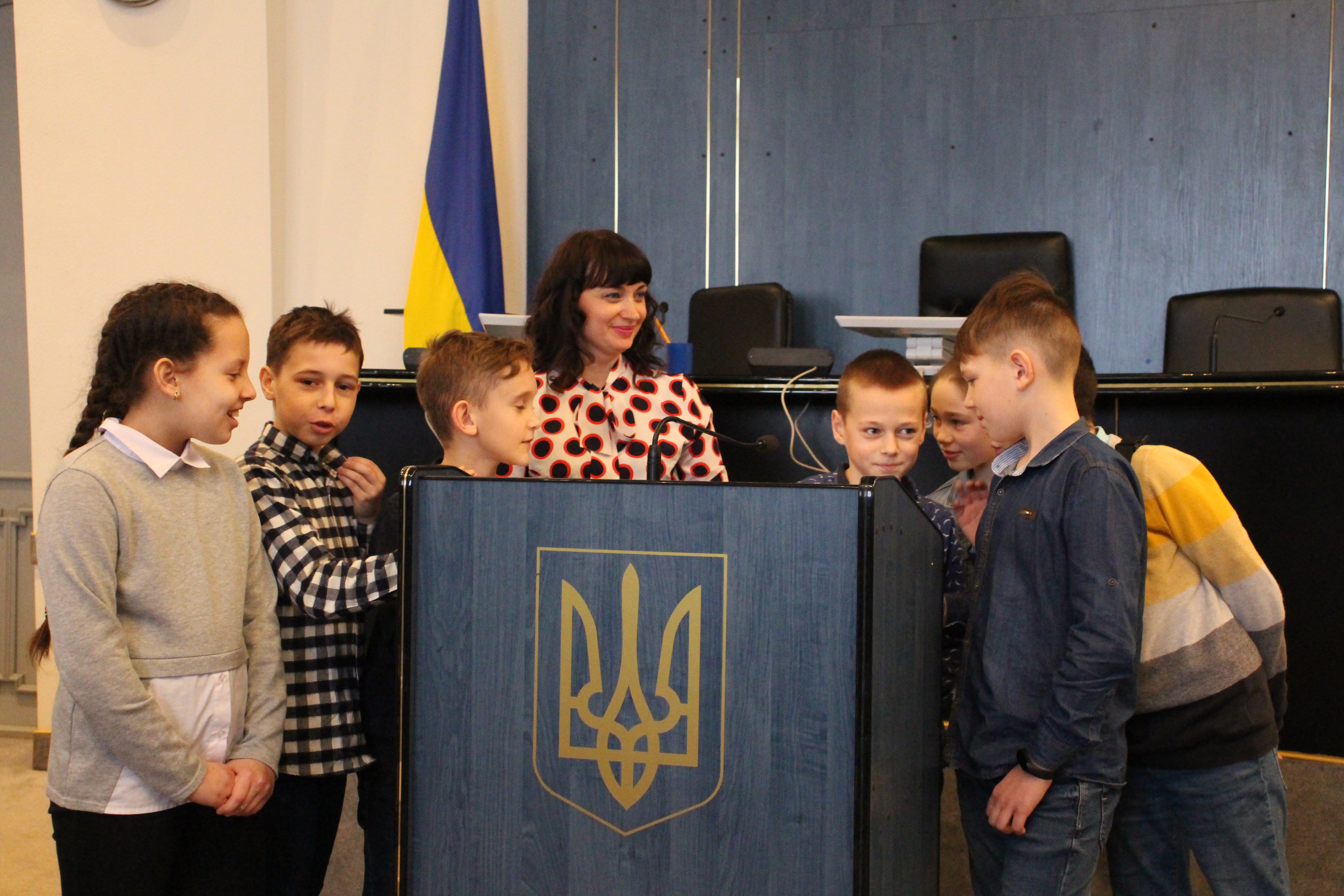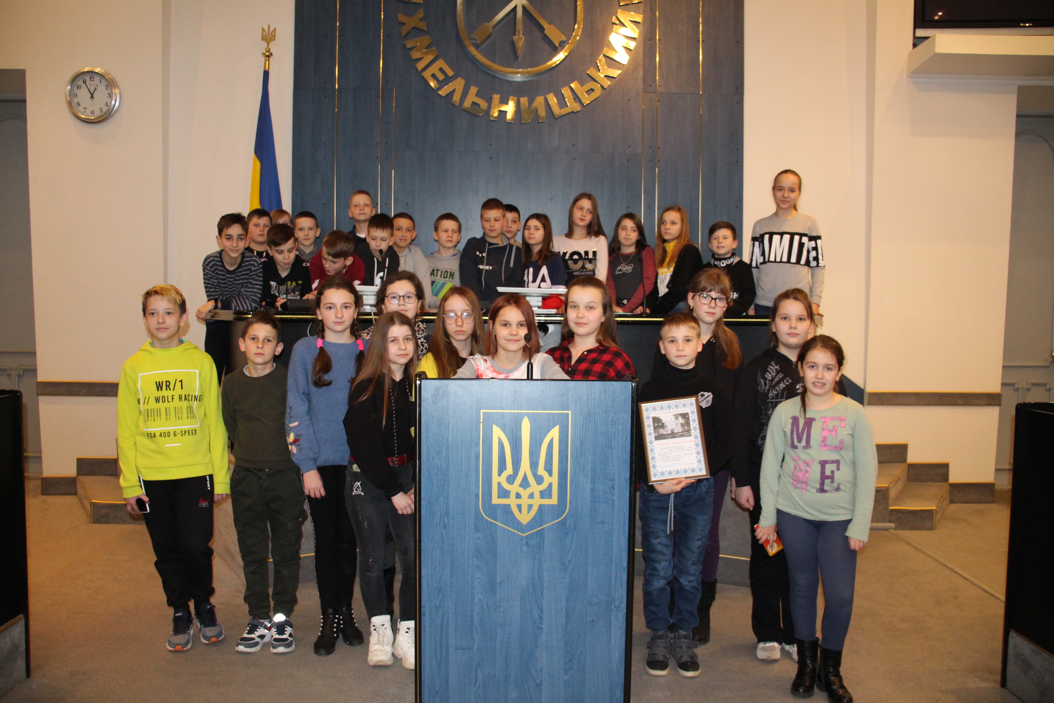 Керуюча справами та ідейна натхненниця масштабного освітнього проєкту – екскурсії міською радою Юлія Сабій показала п’ятикласникам сесійну залу, розповіла їм про роботу міської ради. Із великим захопленням школярі обирали серед однокласників міського голову, його заступників, секретаря міської ради, мали можливість посидіти на їх робочих місцях у залі. За допомогою керуючої справами хлопчики, які «балатувалися» на посаду міського голови, відповідали на запитання однокласників. Під час жвавої дискусії діти проявляли свою допитливість, ерудованість і обізнаність у питаннях життєдіяльності рідного міста. Серед питань ремонту доріг та благоустрою міста особливу увагу приділяли чистоті на вулицях рідного Хмельницького і навіть запропонували збільшити штрафи для тих, хто смітить. Викинув сміття у неналежних місцях - сплачуй значний штраф – переконані п’ятикласники.