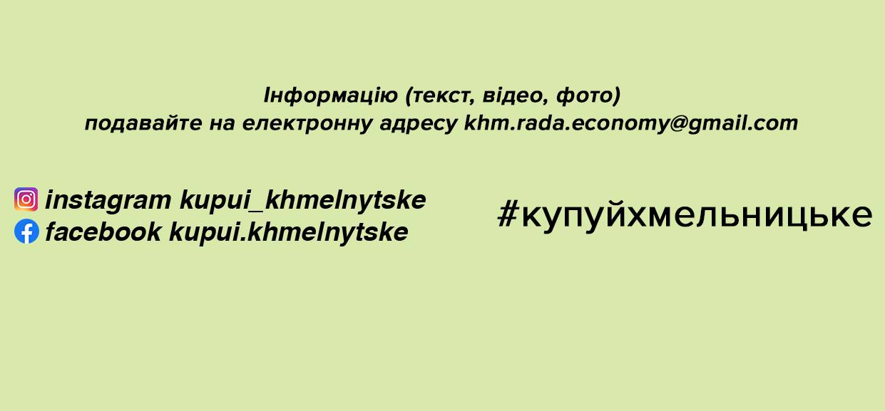 Пропонуємо підтримку підприємництва міста шляхом безкоштовної промоції в соціальних мережах проєкту «Купуй Хмельницьке» та Хмельницької міської ради.
