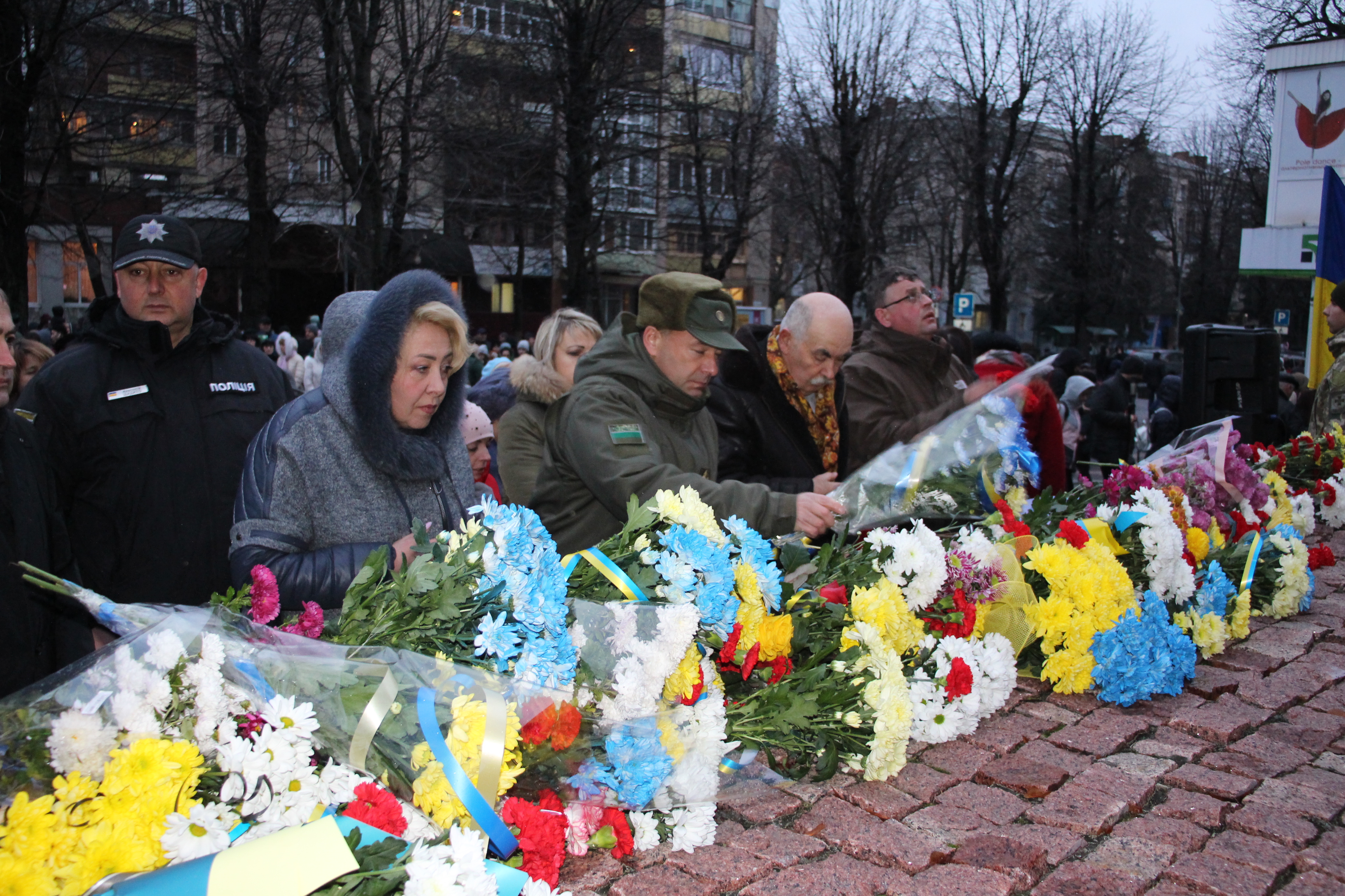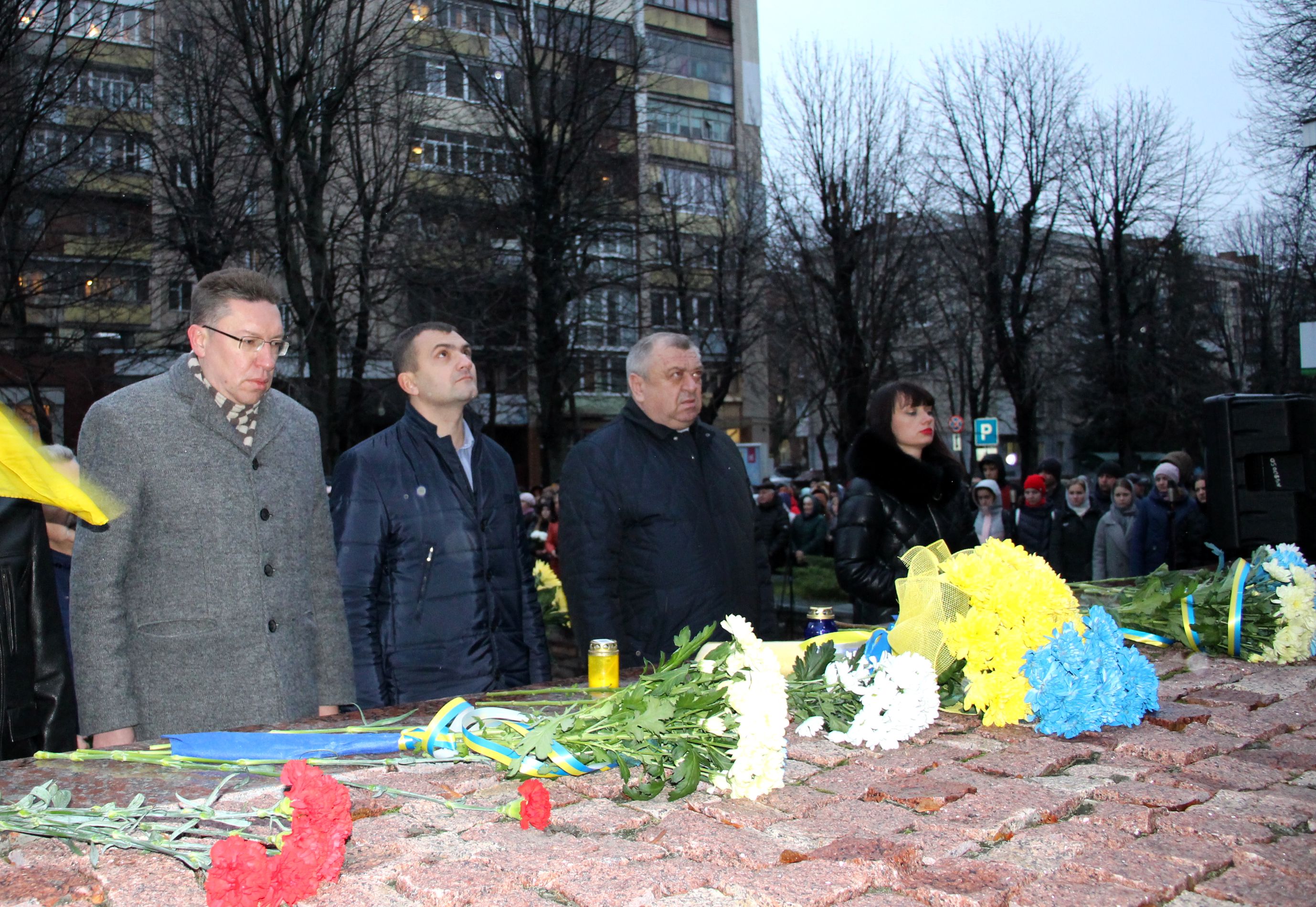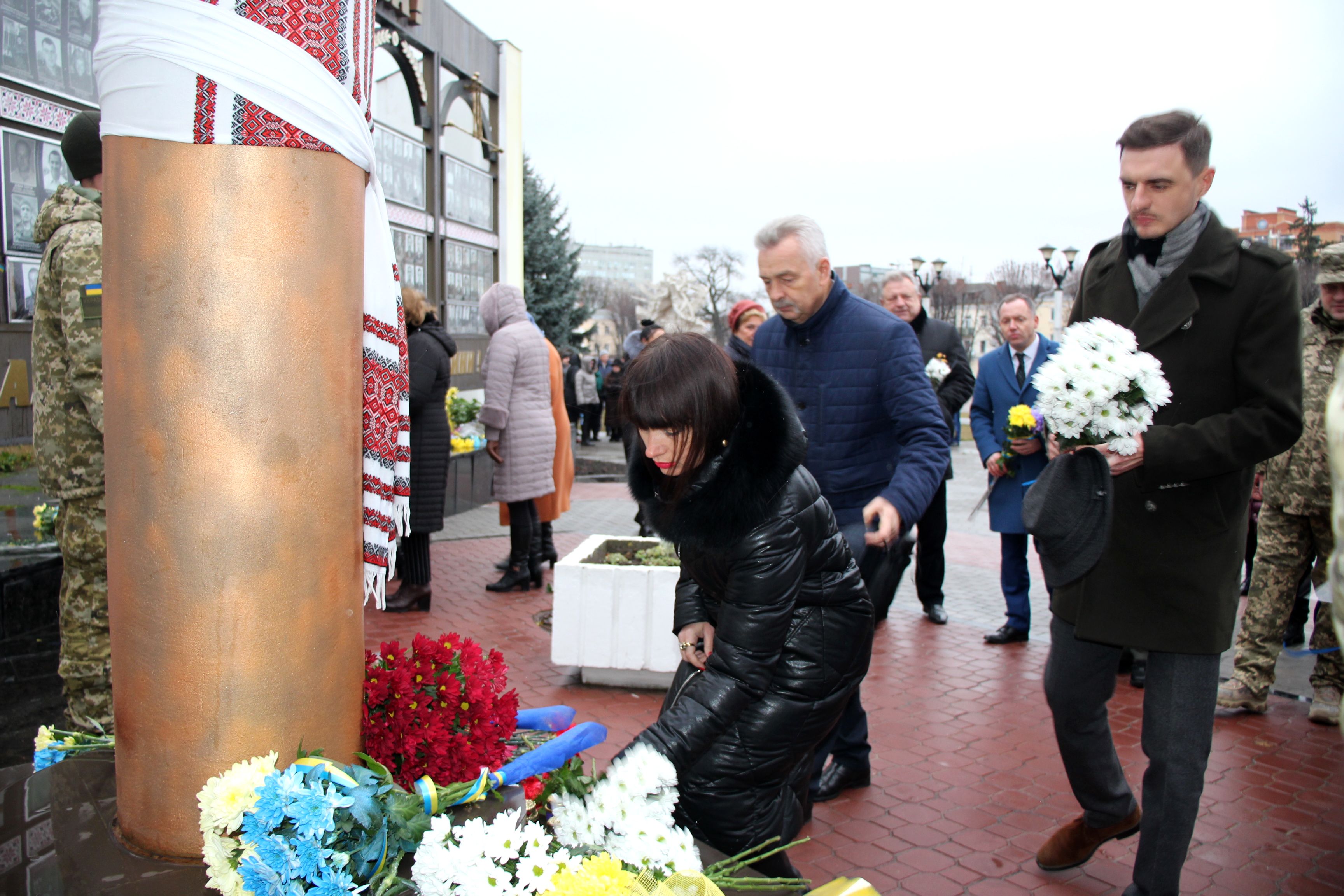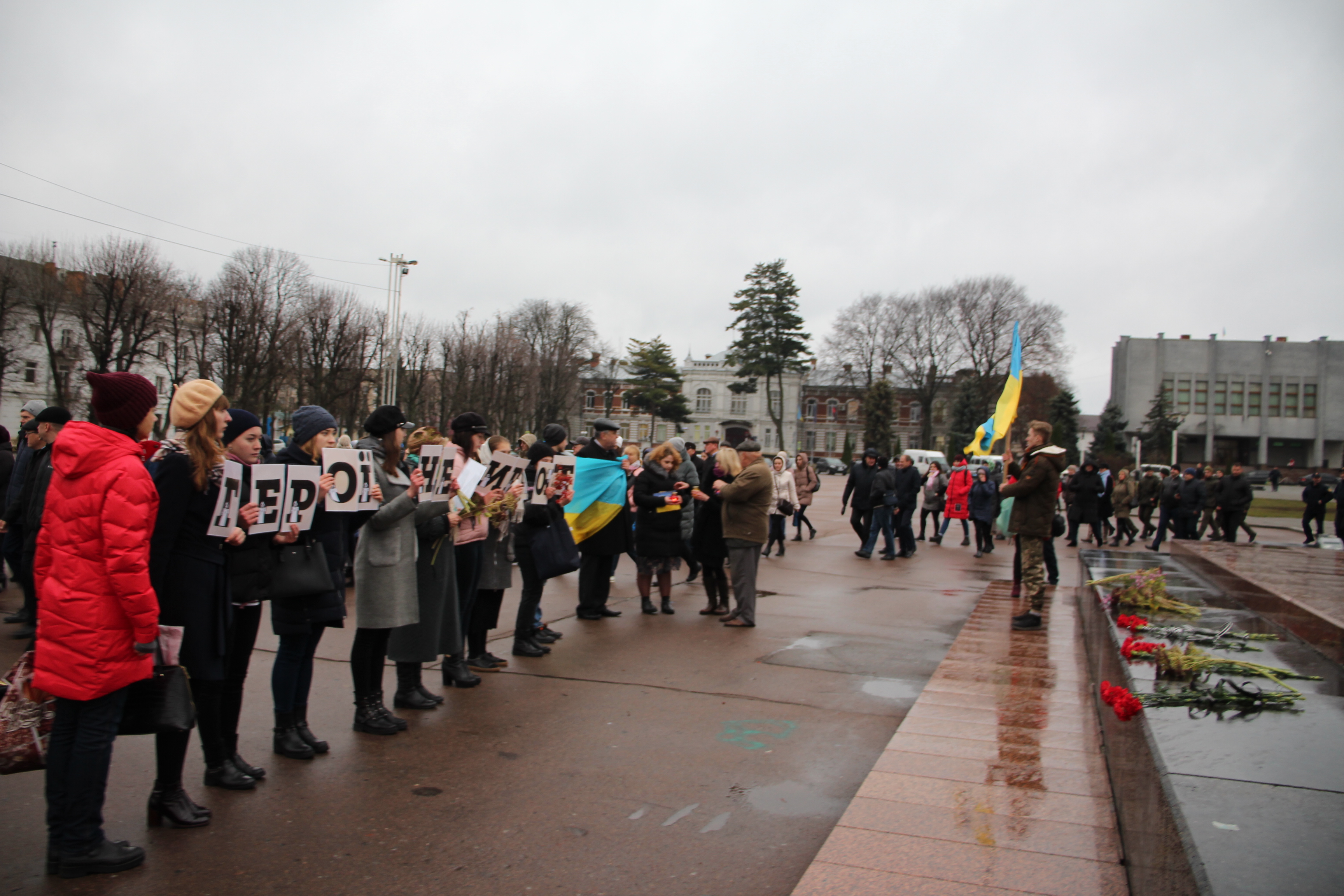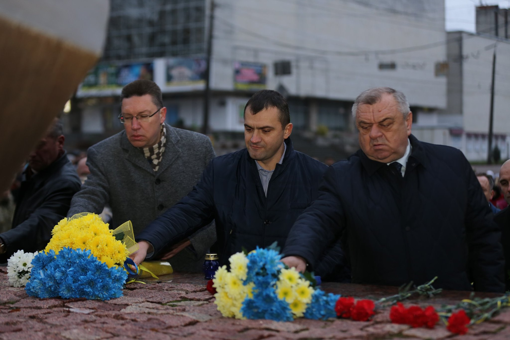 Сотні людей, серед яких керівники міста й області, духовенство, громадськість міста, прийшли з квітами до пам’ятника Героям Небесної Сотні, що на перехресті вулиць Соборної та Героїв Майдану. Поклали квіти також до меморіальної стели Героям Небесної Сотні та російсько-української війни на майдані Незалежності.