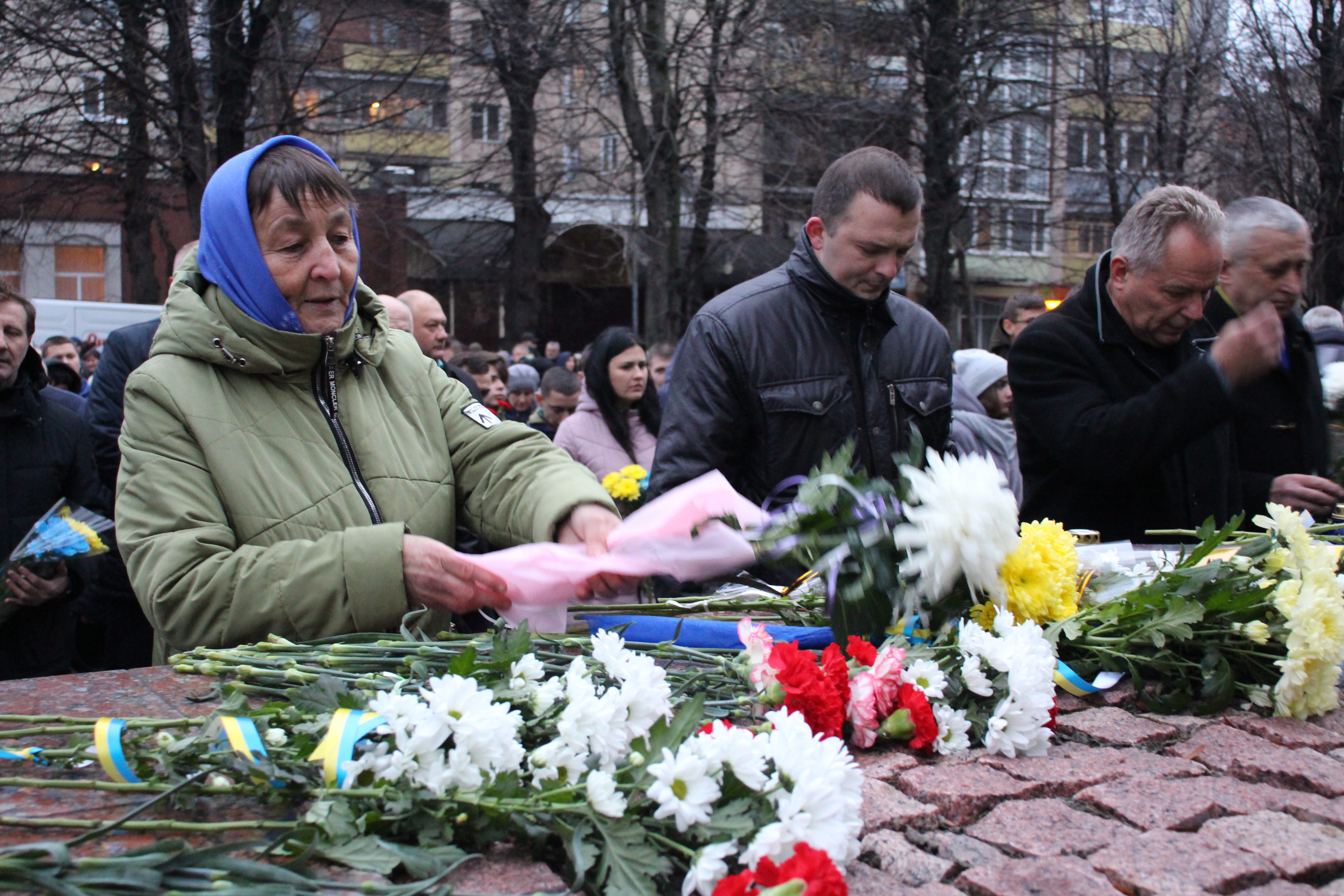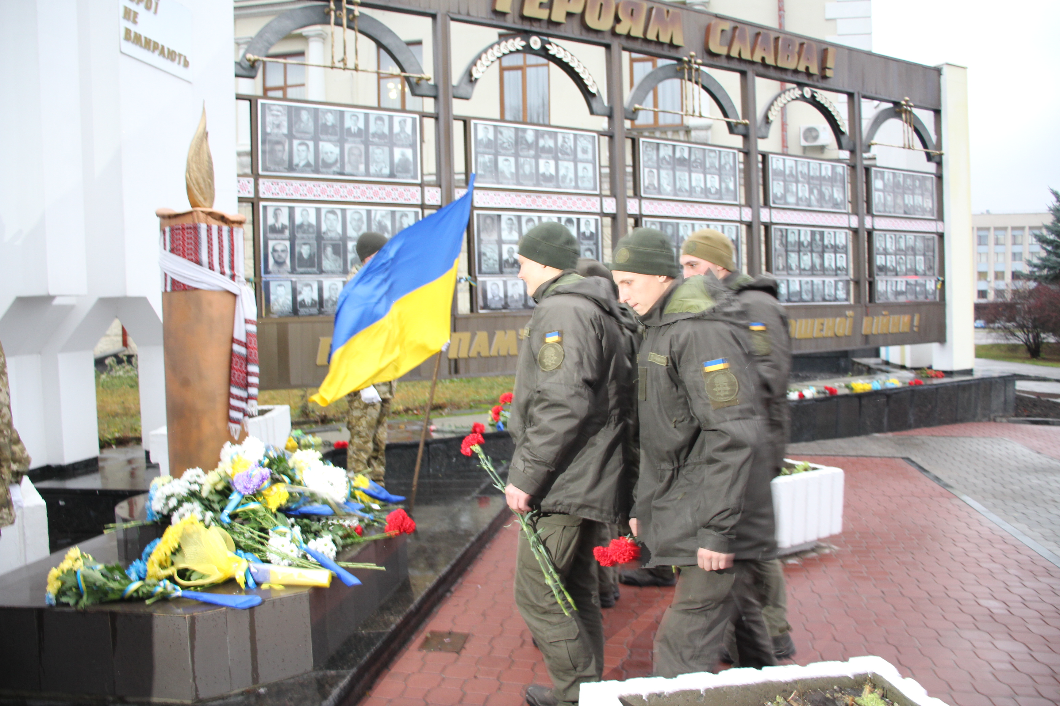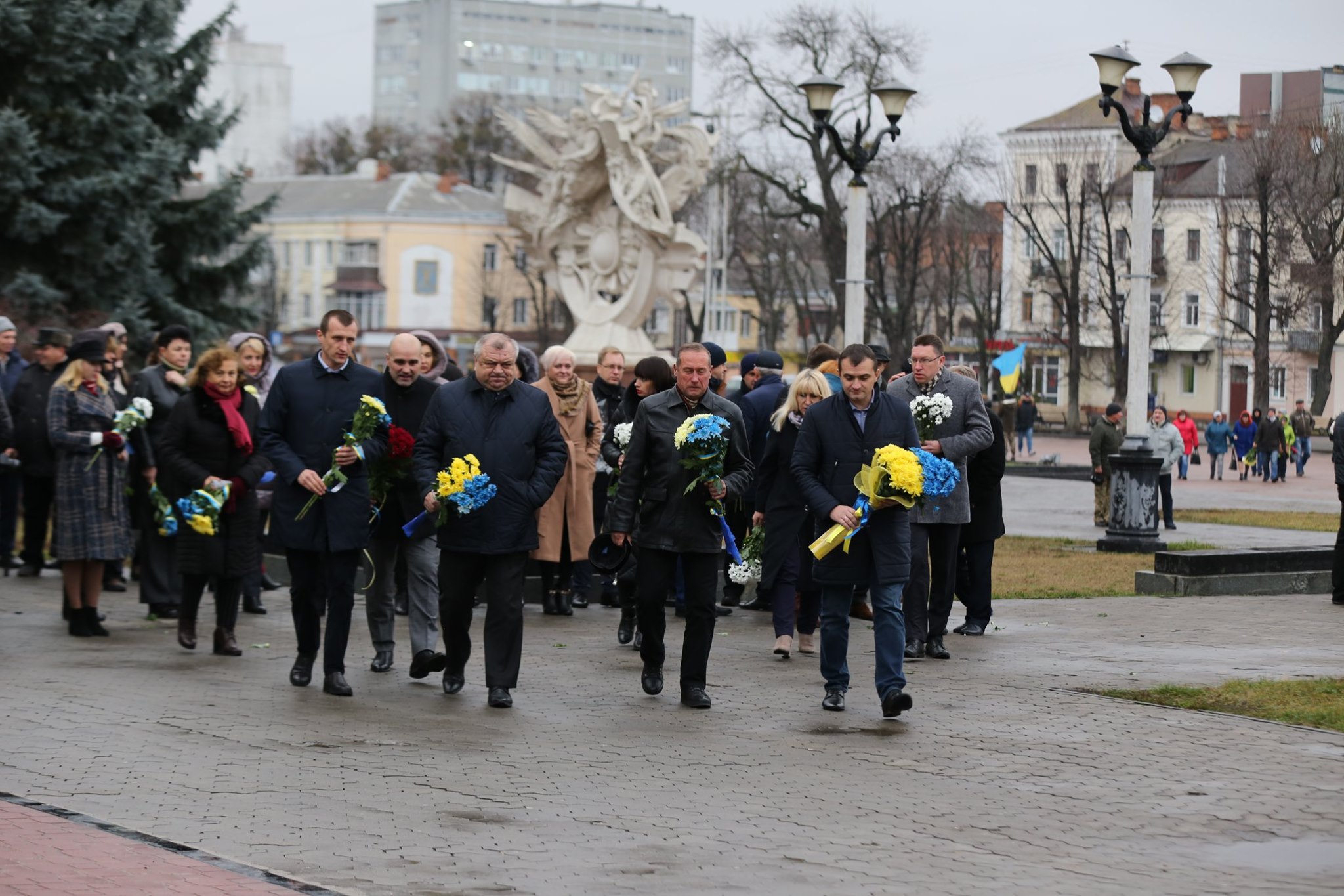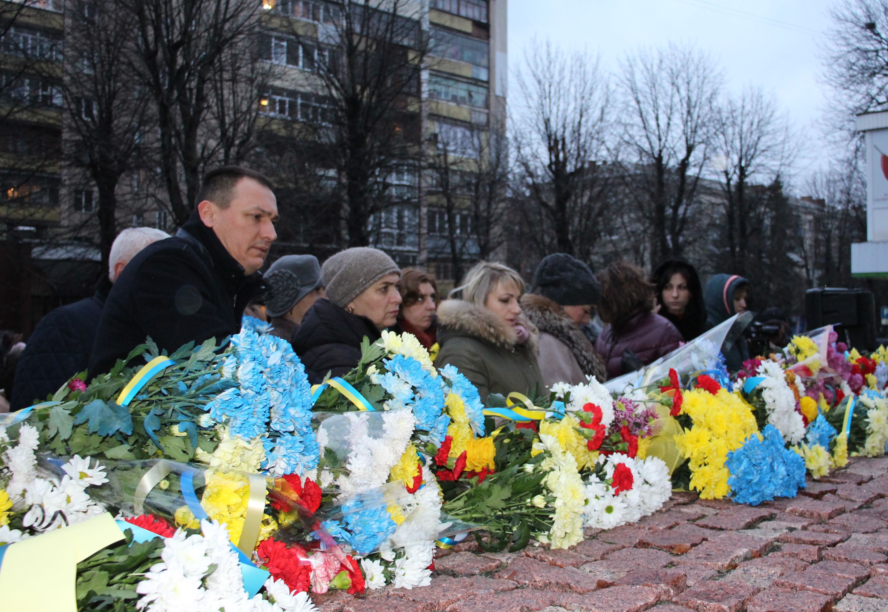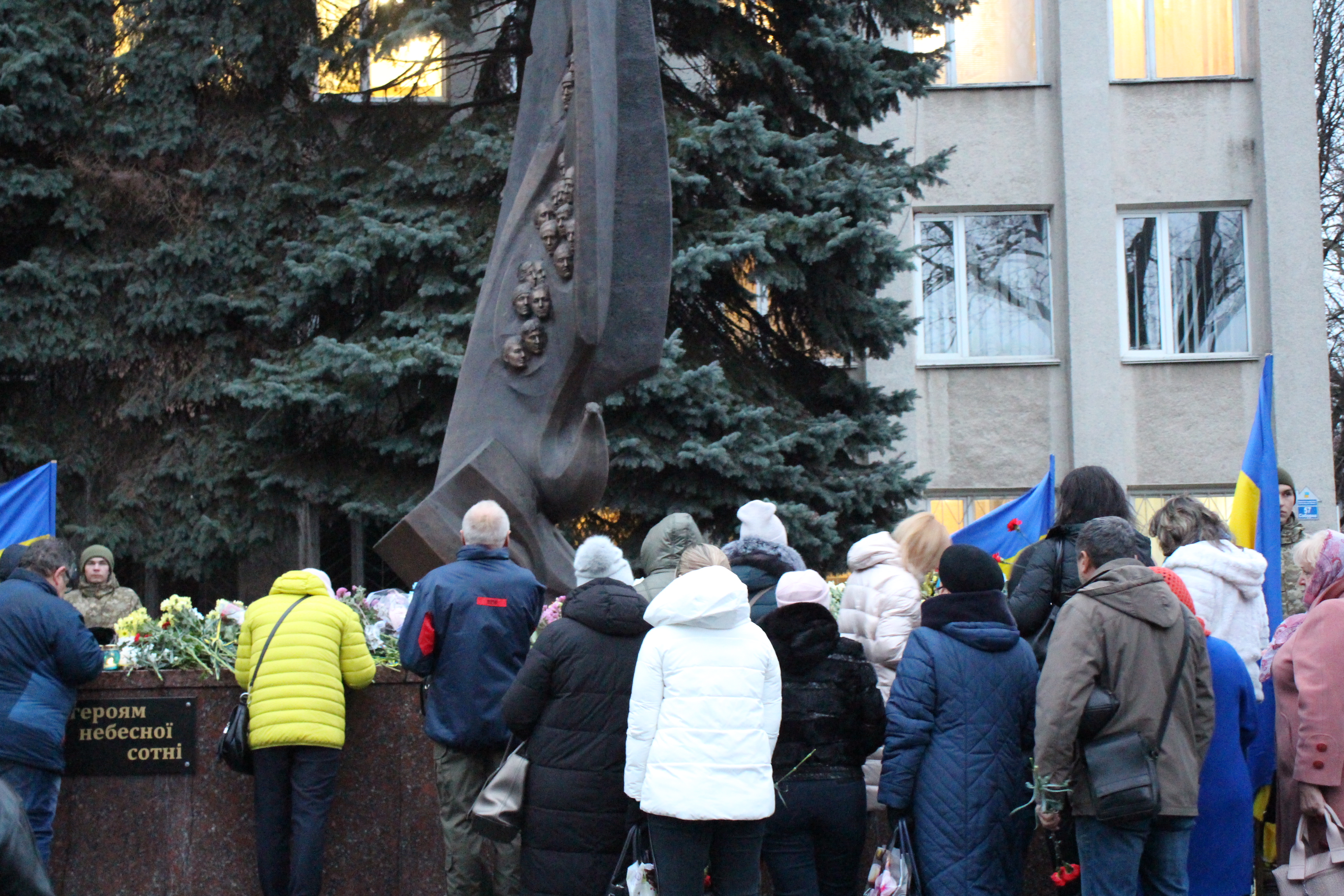 Сотні людей, серед яких керівники міста й області, духовенство, громадськість міста, прийшли з квітами до пам’ятника Героям Небесної Сотні, що на перехресті вулиць Соборної та Героїв Майдану. Поклали квіти також до меморіальної стели Героям Небесної Сотні та російсько-української війни на майдані Незалежності.