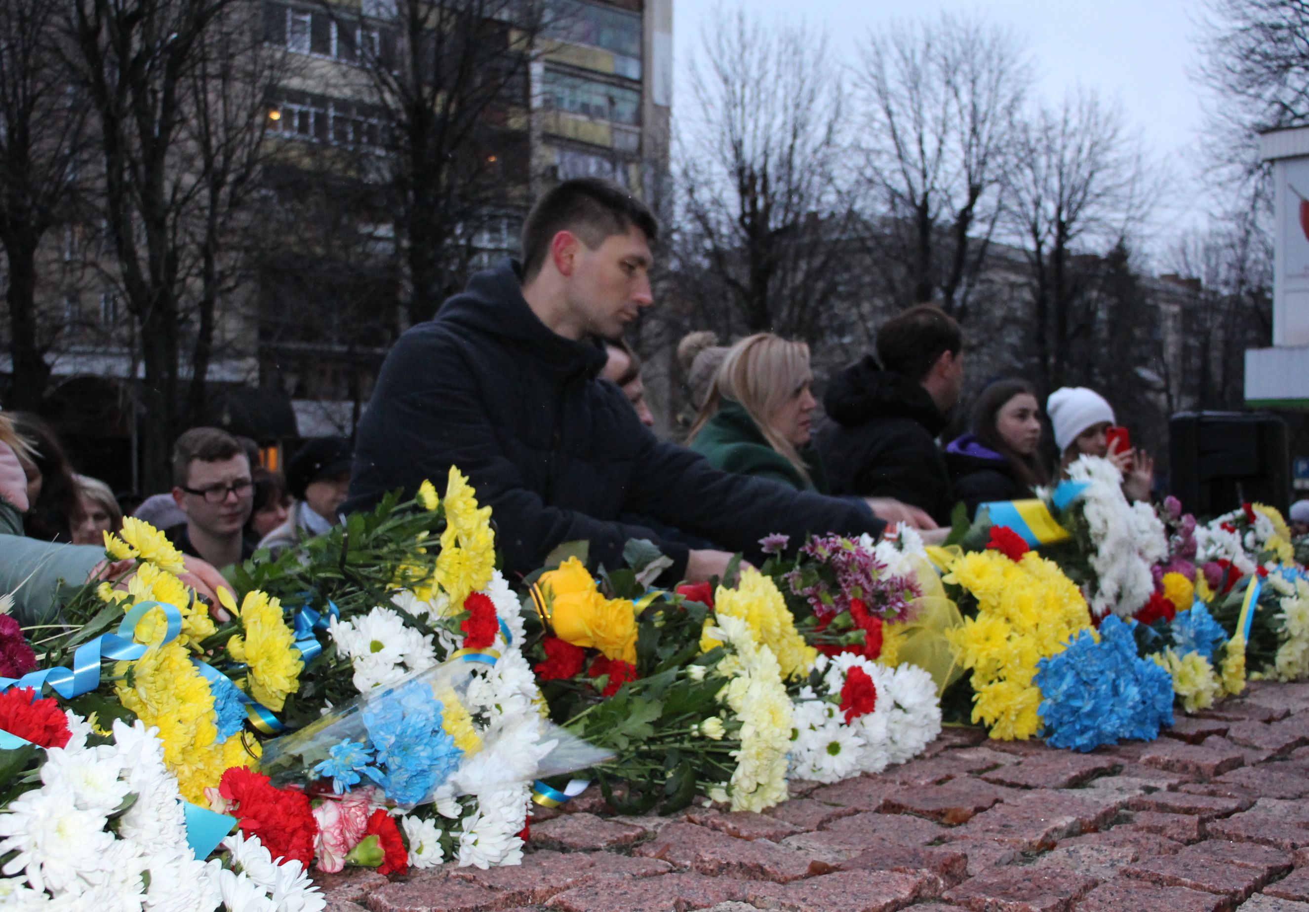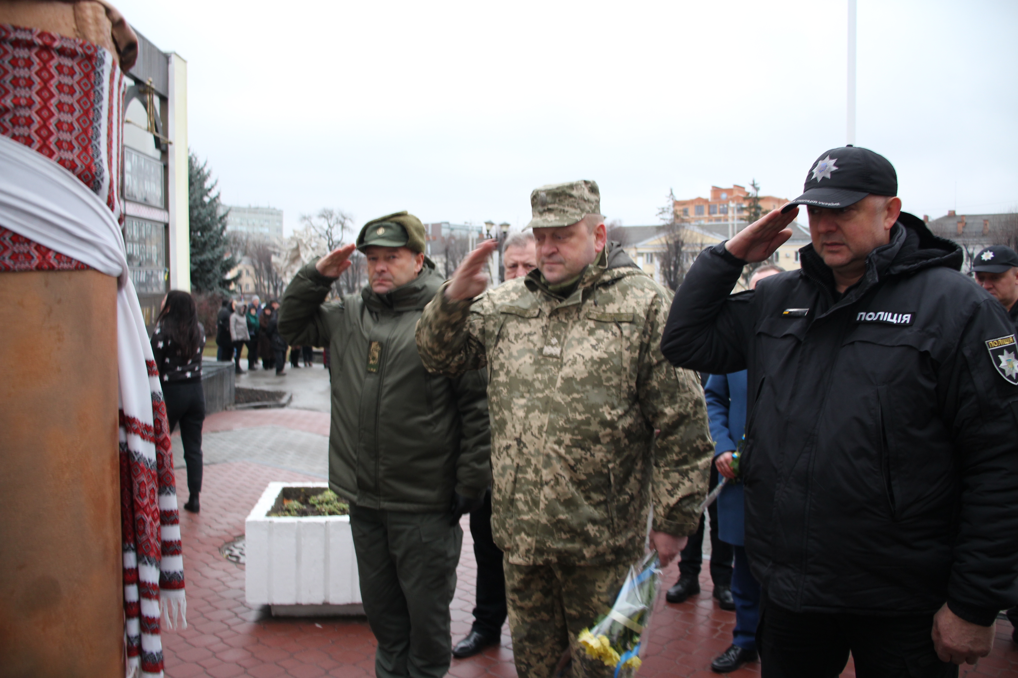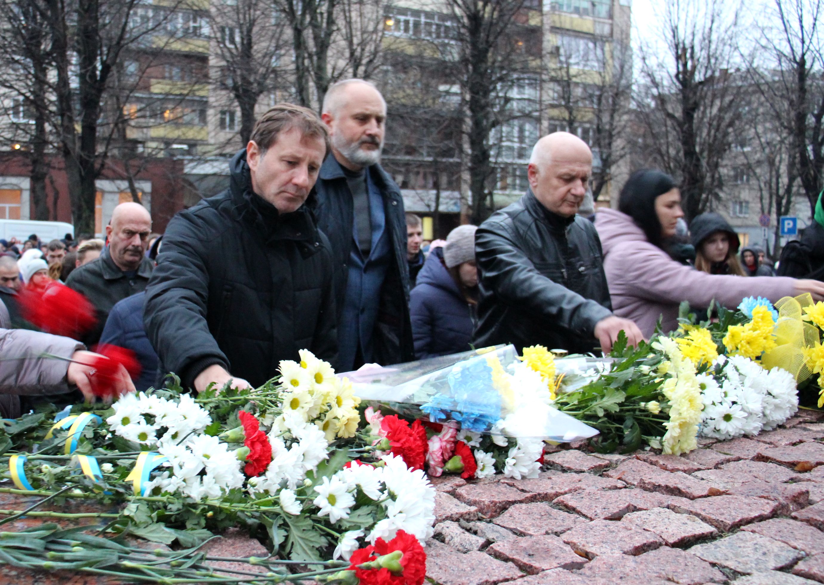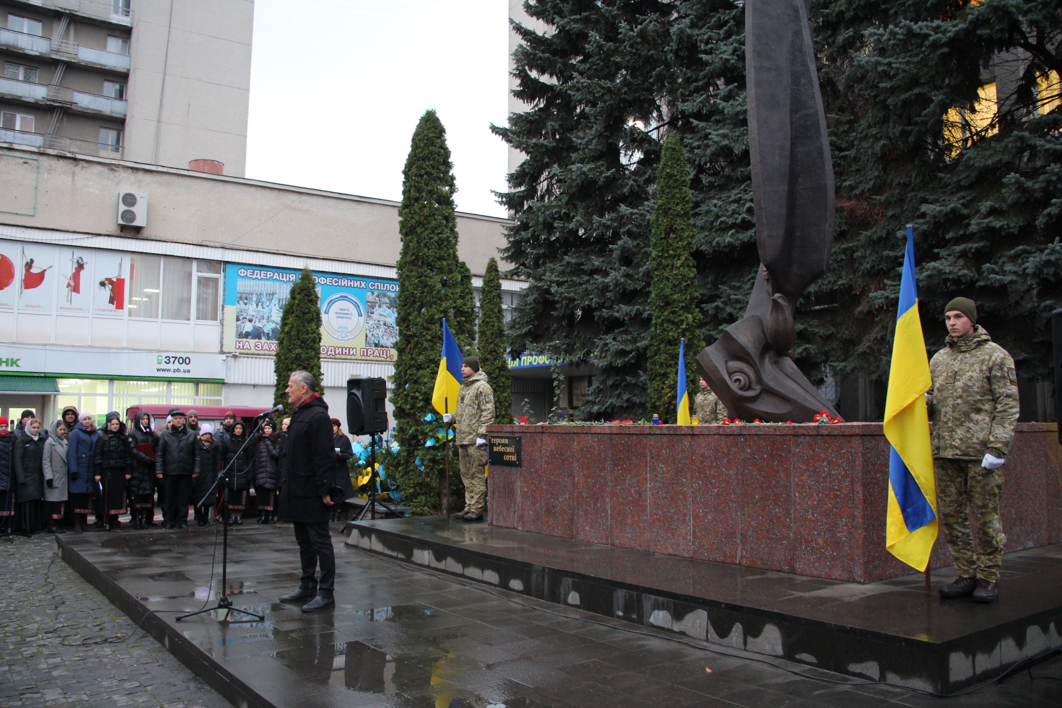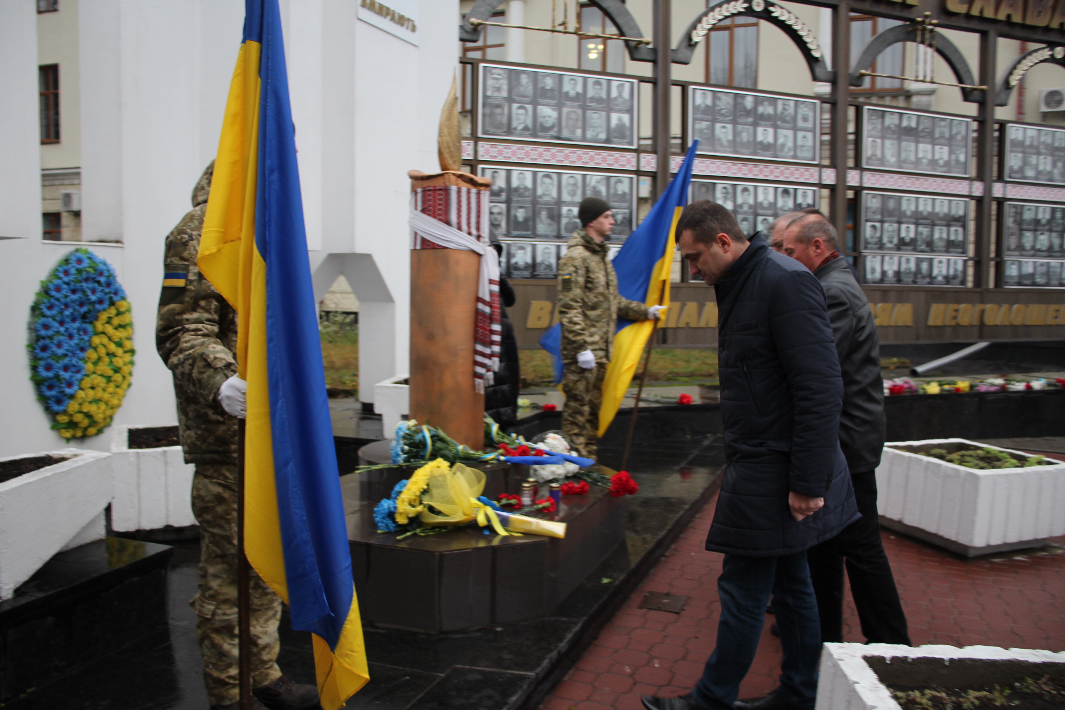 Сотні людей, серед яких керівники міста й області, духовенство, громадськість міста, прийшли з квітами до пам’ятника Героям Небесної Сотні, що на перехресті вулиць Соборної та Героїв Майдану. Поклали квіти також до меморіальної стели Героям Небесної Сотні та російсько-української війни на майдані Незалежності.