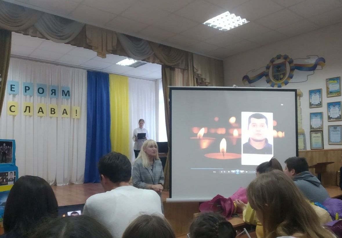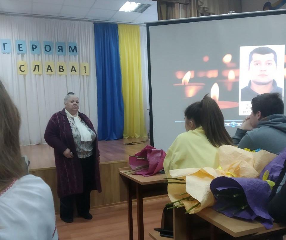 Після хвилини мовчання за усіма Героями Української держави одинадцятикласники ліцею поклали квіти до меморіальних дошок Героя російсько-української війни Руслана Ліщука та Героя Небесної Сотні Артема Мазура.