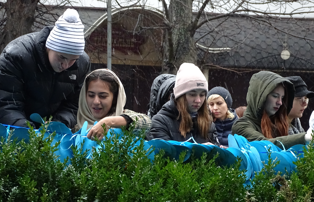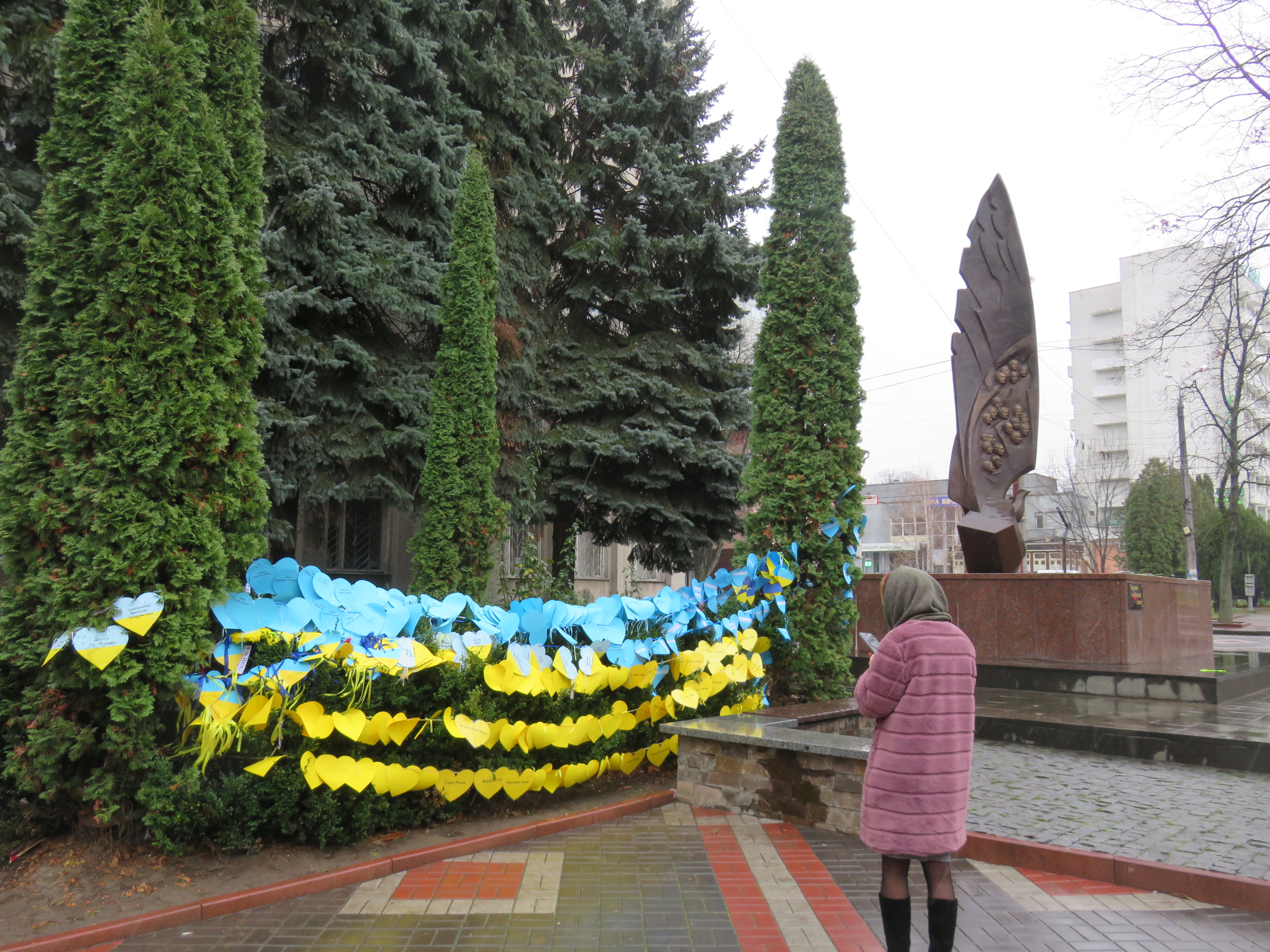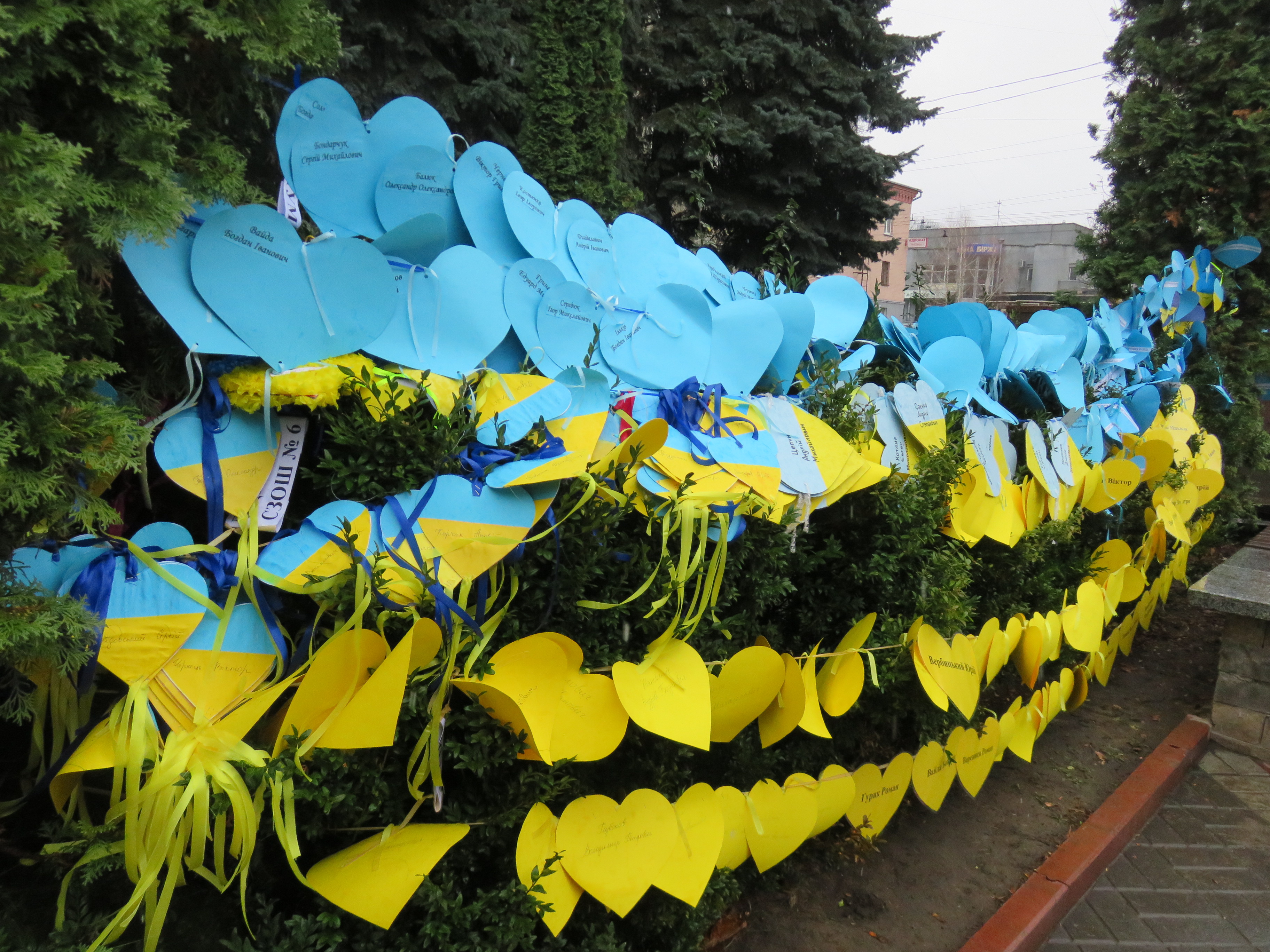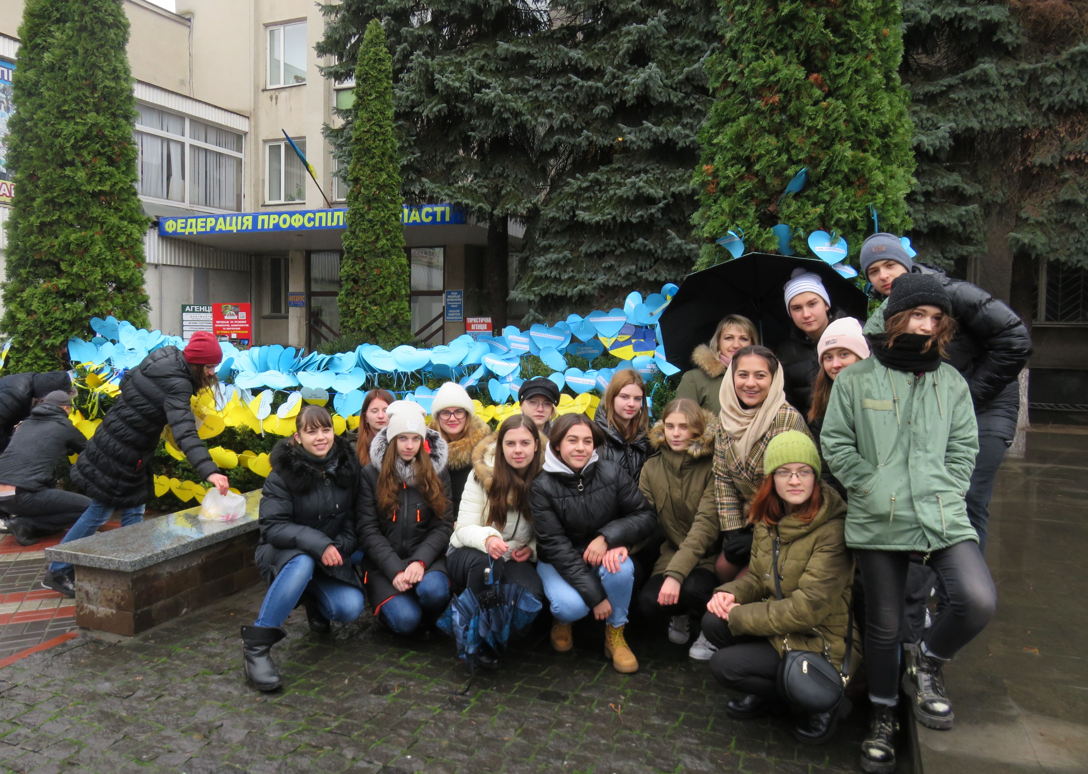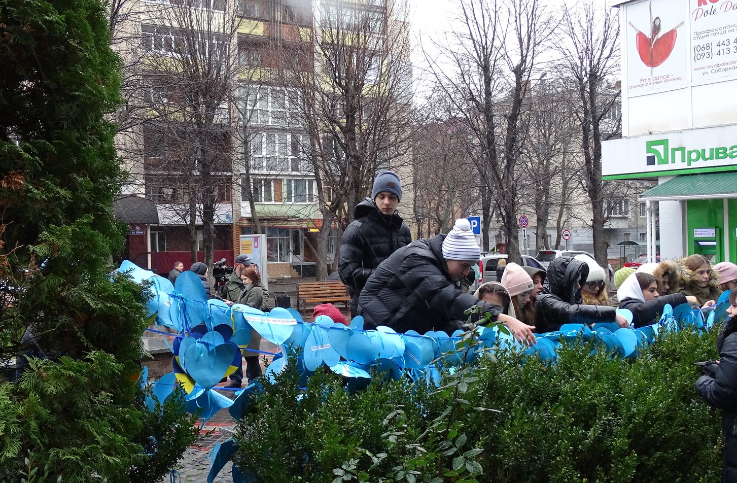 До акції долучилися учні з шести шкіл Хмельницького. Школярі розвісили поряд з пам'ятником 500 власноруч виготовлених сердечок з іменами загиблих Героїв Небесної Сотні та учасників російсько-української війни.