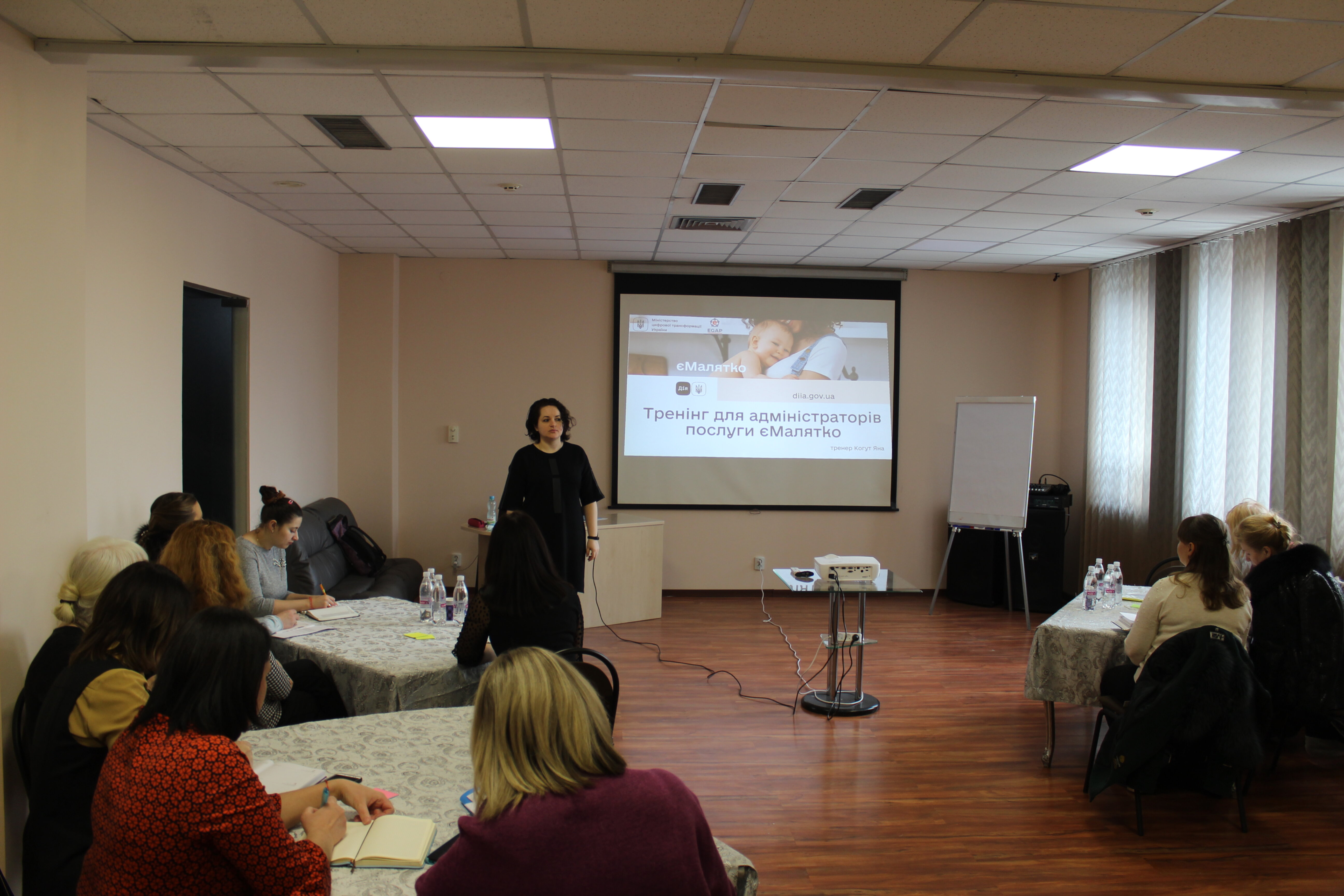 Сьогодні відбулося навчання для фахівців управлінь адміністративних послуг, державної реєстрації, праці та соціального захисту населення міської ради, перинатального центру, які працюватимуть в рамках проєкту «єМалятко». Тренер Яна Когут розповіла про основні проблеми, з якими стикаються батьки новонароджених. Зокрема, відсутній комплексний підхід державних органів до надання послуг за однією життєвою подією, адже після народження дитини батькам потрібно відвідати 11 установ та отримати 37 документів, щоб отримати необхідні послуги, пов’язані із появою нового члена родини.
