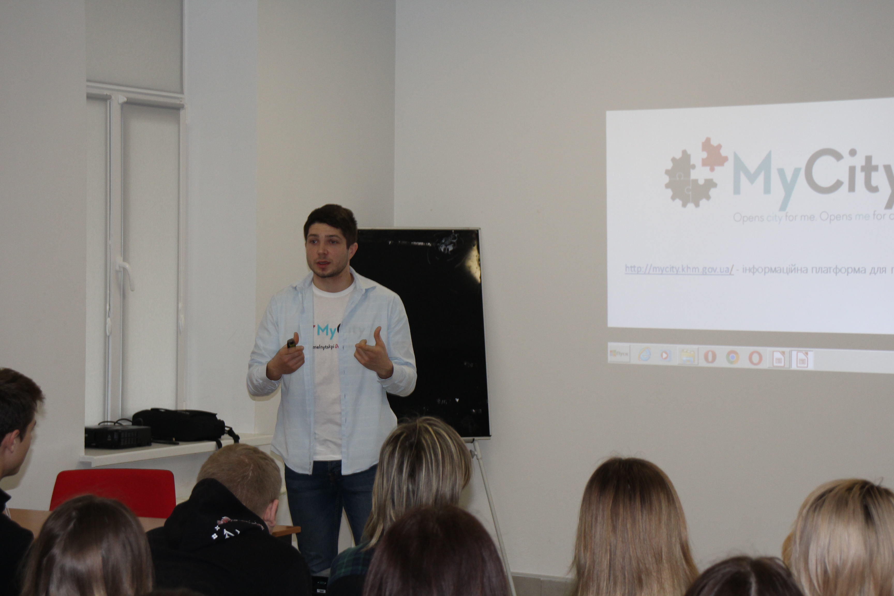 Працівник КП «Хмельницькінфоцентр» познайомив присутніх з мобільним додатком «Mycity» та однойменною веб-платформою. Розповів про сервіси та корисну інформацію, яку можна знайти на сайті міської ради.