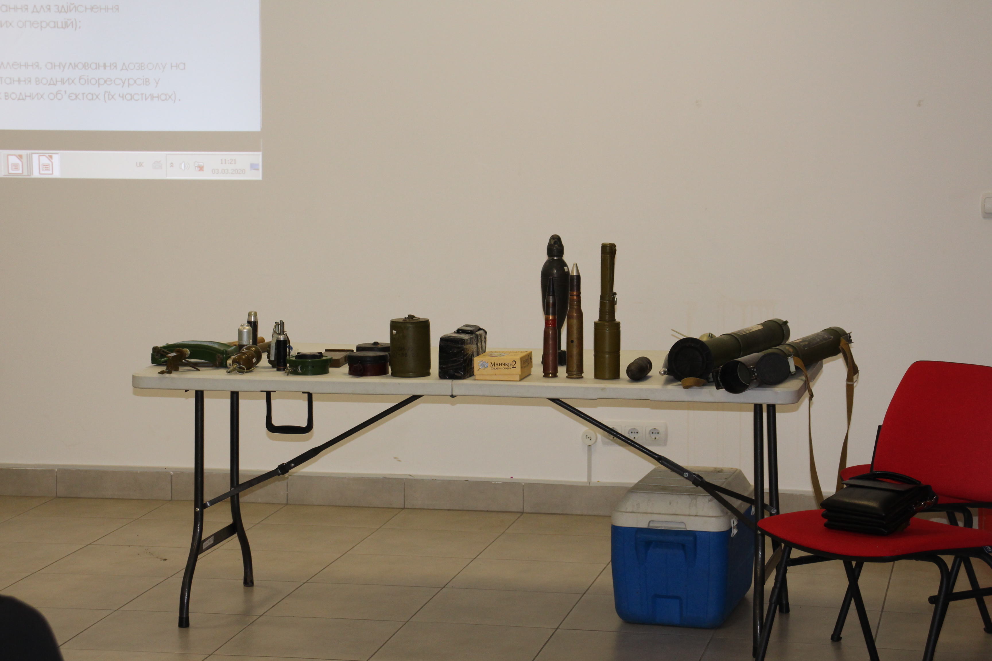 Вибухотехніки організували виставку військових снарядів та боєприпасів, які використовуються в зоні проведення АТО/ООС, та які незаконним шляхом потрапляють на мирну територію країни. Вкотре звернули увагу на недопущення незаконного обігу таких речей та наголосили на необхідності негайного інформування відповідних служб у разі їх виявлення.