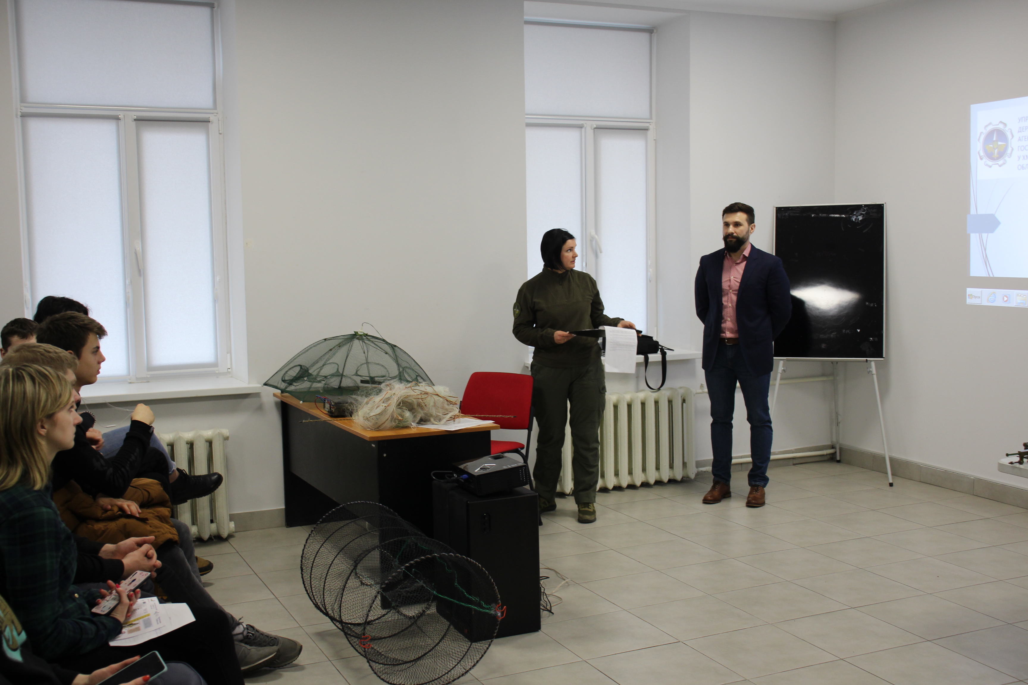Співробітники рибоохоронного патруля розповіли про свої повноваження, правила спортивного риболовства та відповідальність за порушення правил вилову. Окрім того повідомили про аборигенні та червонокнижні види риб, які водяться у наших водоймах, та продемонстрували заборонені знаряддя лову, які були вилучені під час рейдів.
