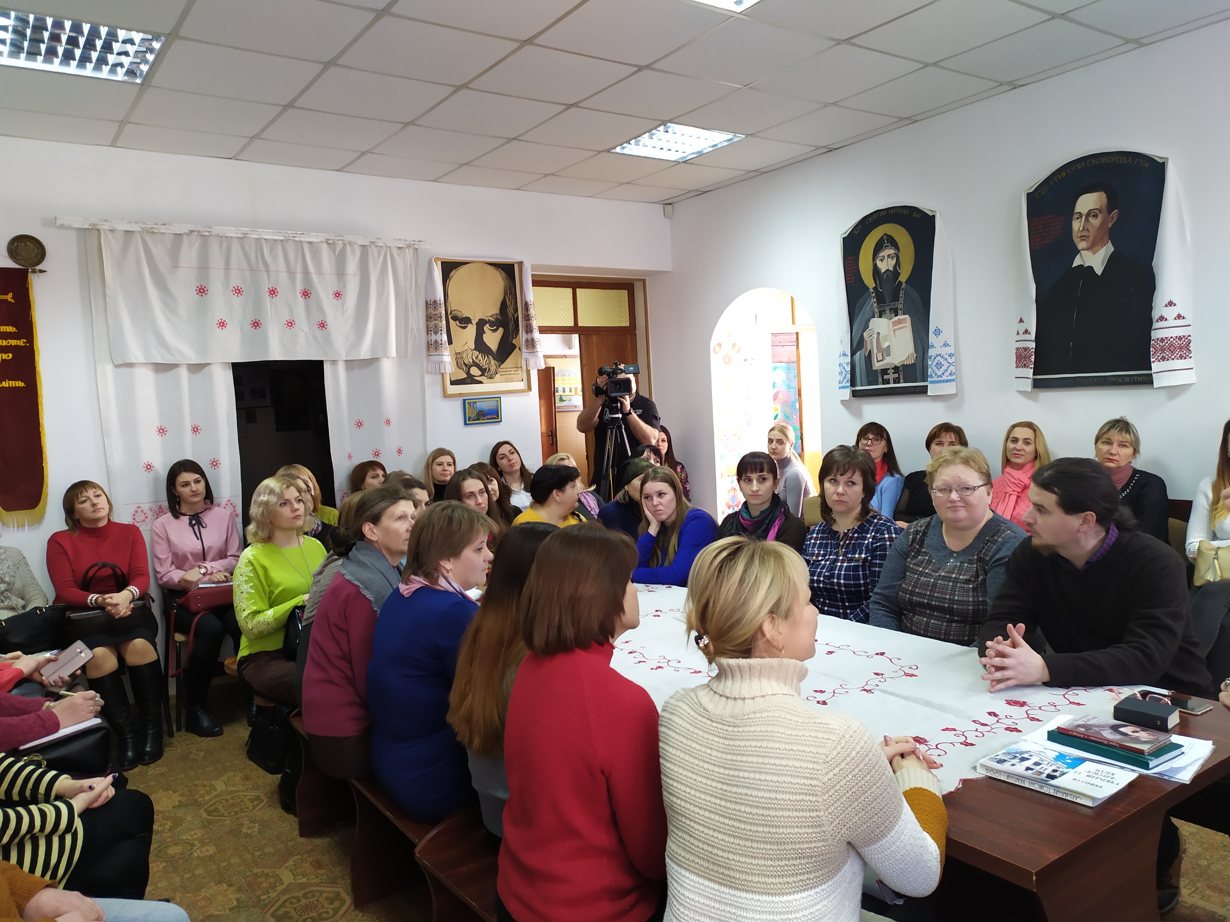 Вчителі навчальних закладів міста Хмельницького та області, представники гуманітарно-педагогічної академії, торговельно-економічного коледжу та ГУ НП у Хмельницькій області дізналися багато нового про історію «Кобзарів», про благодійників, коштом яких книжки були надруковані.