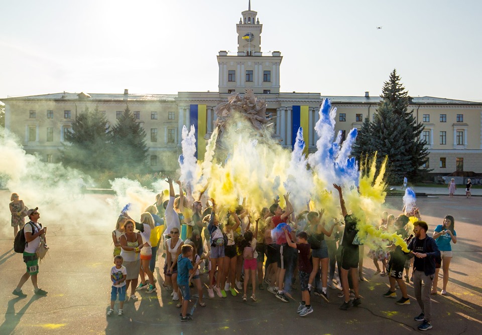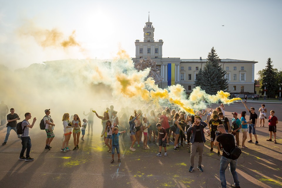 Кольоровий забіг із фарбами – хмельницька молодь святкує День Державного Прапора