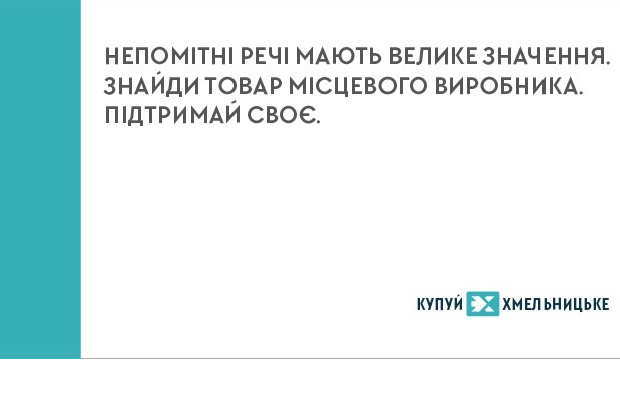 Шановні друзі! Хмельницькою міською радою ініційовано проєкт «Купуй Хмельницьке», спрямований на промоцію та підтримку місцевих товаровиробників. Купуючи продукцію хмельницьких виробників, ми допомагаємо бізнесу зберігати робочі місця та сплачувати податки у місцевий бюджет.
