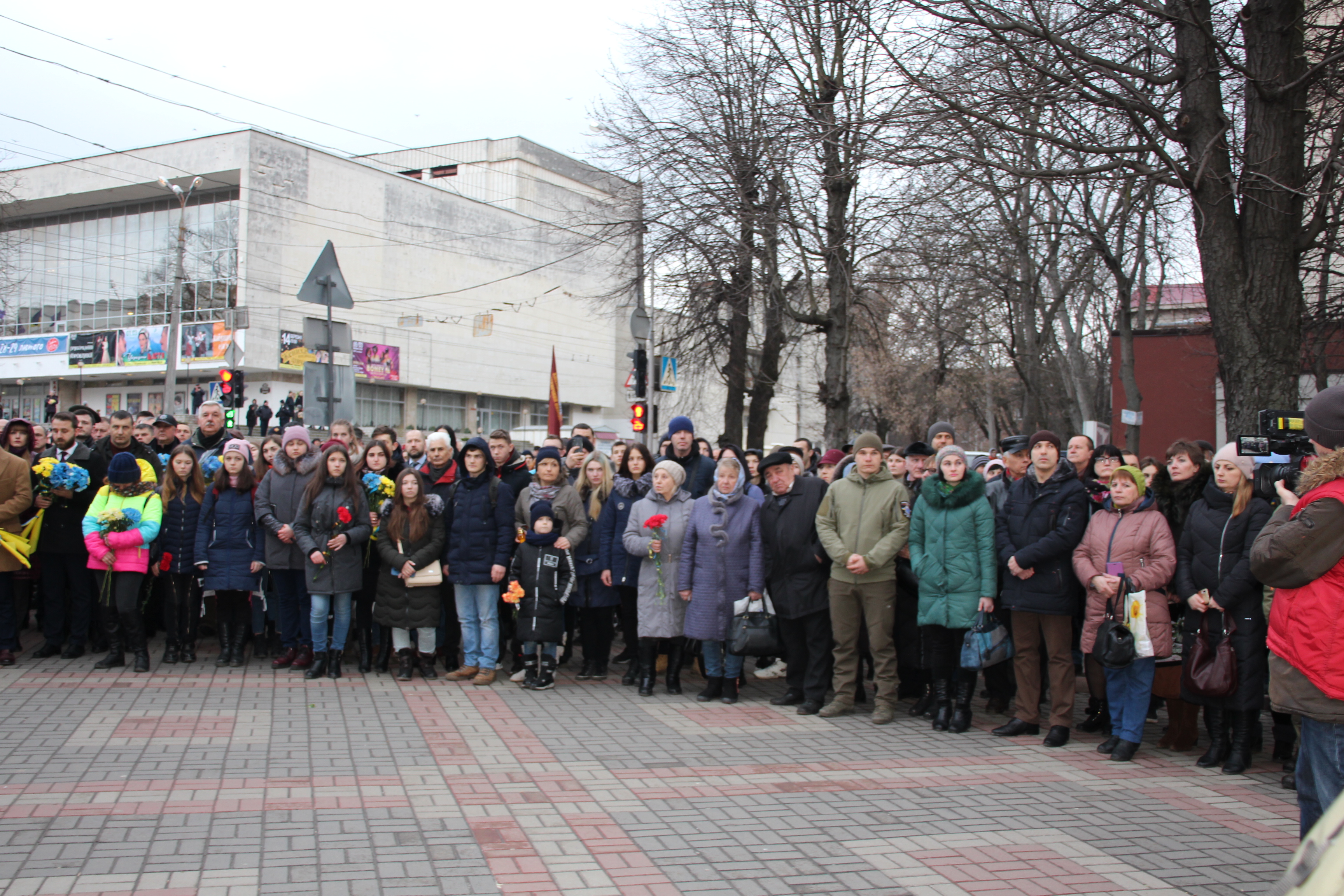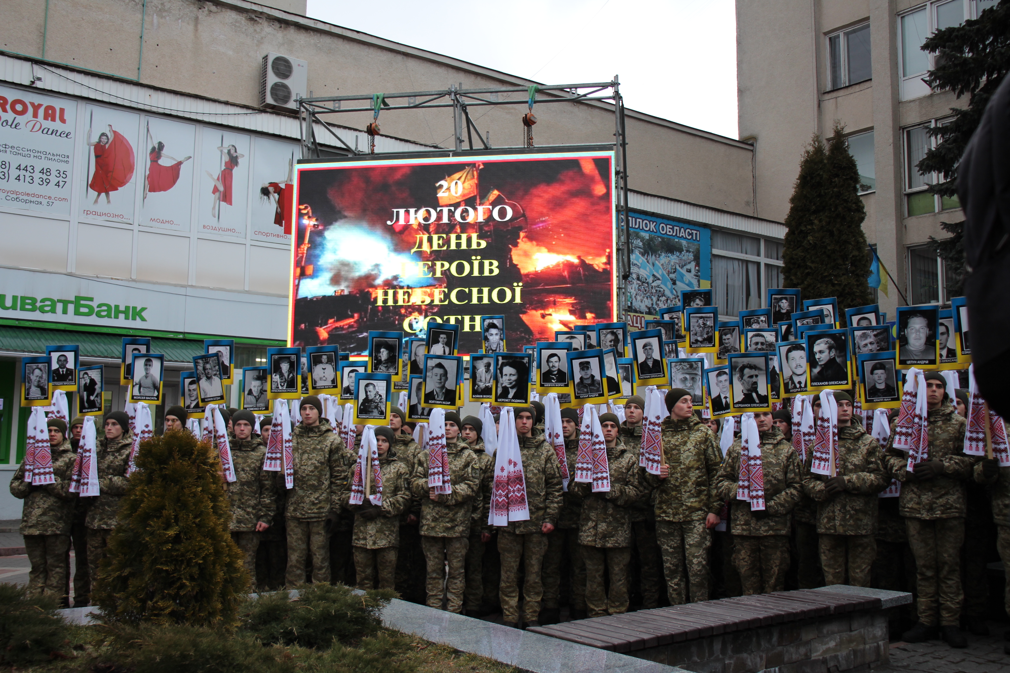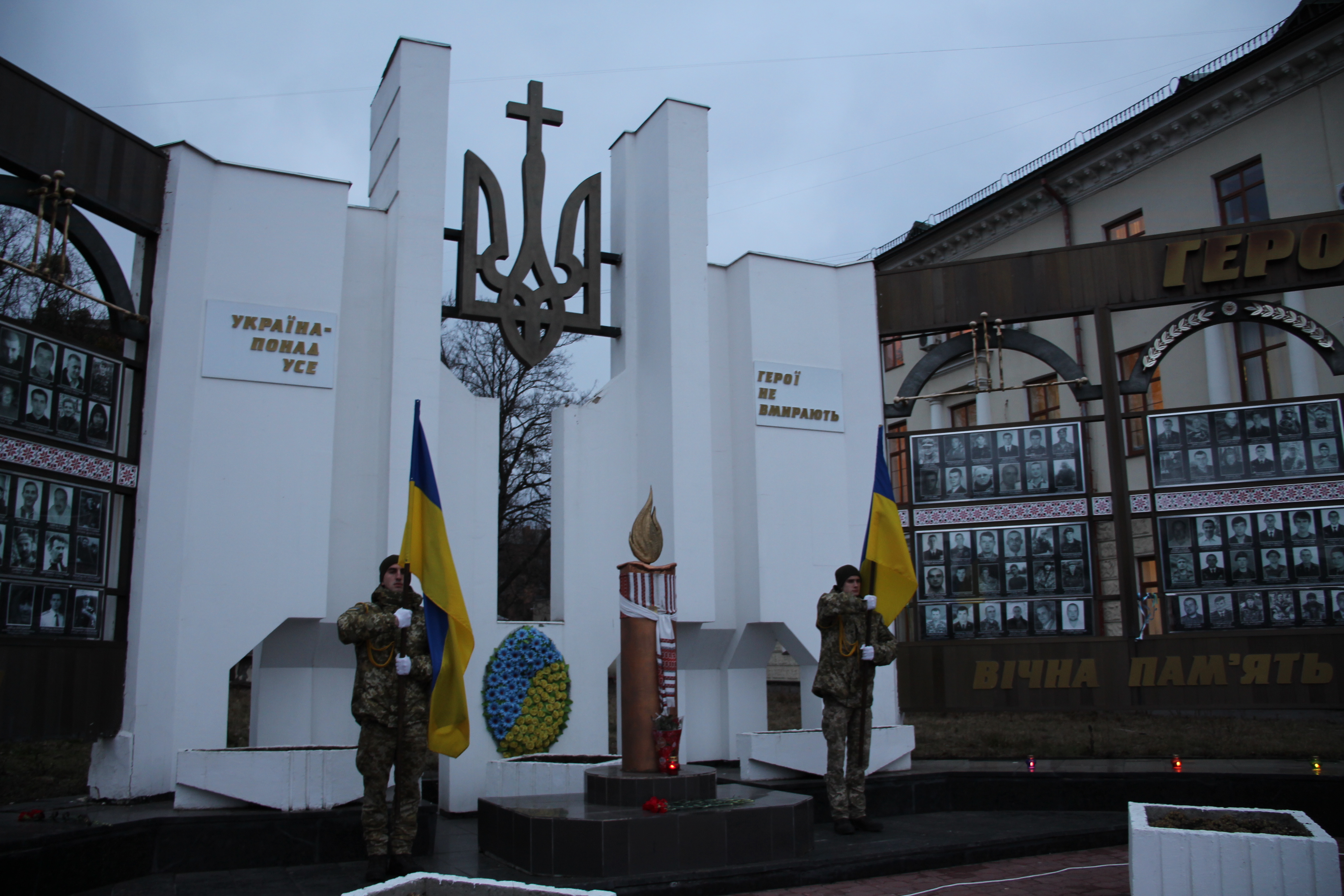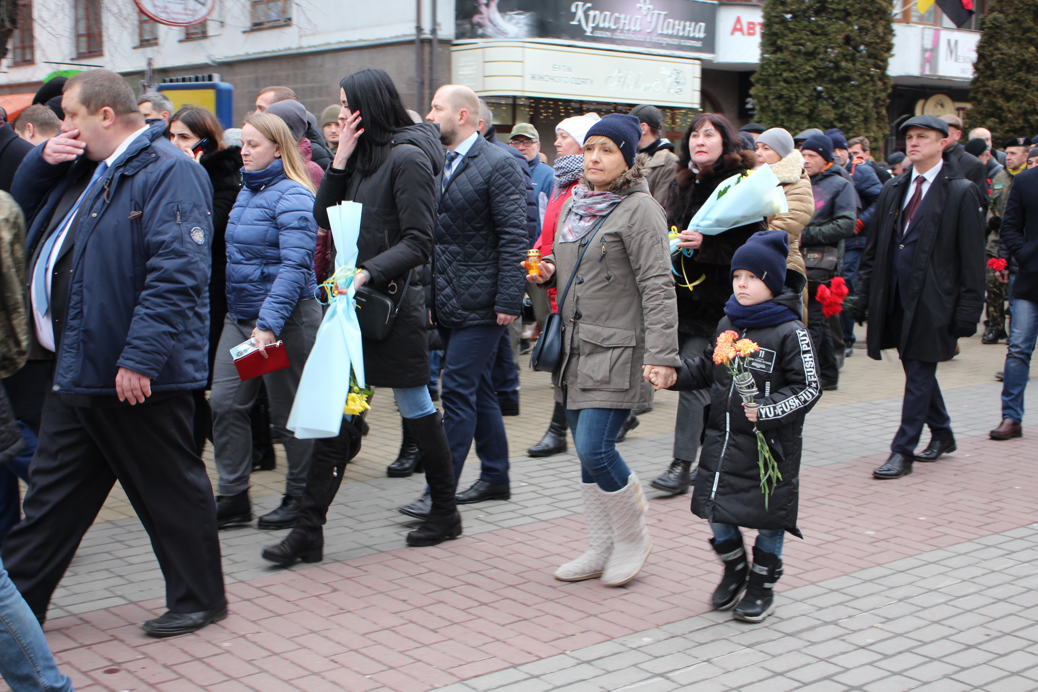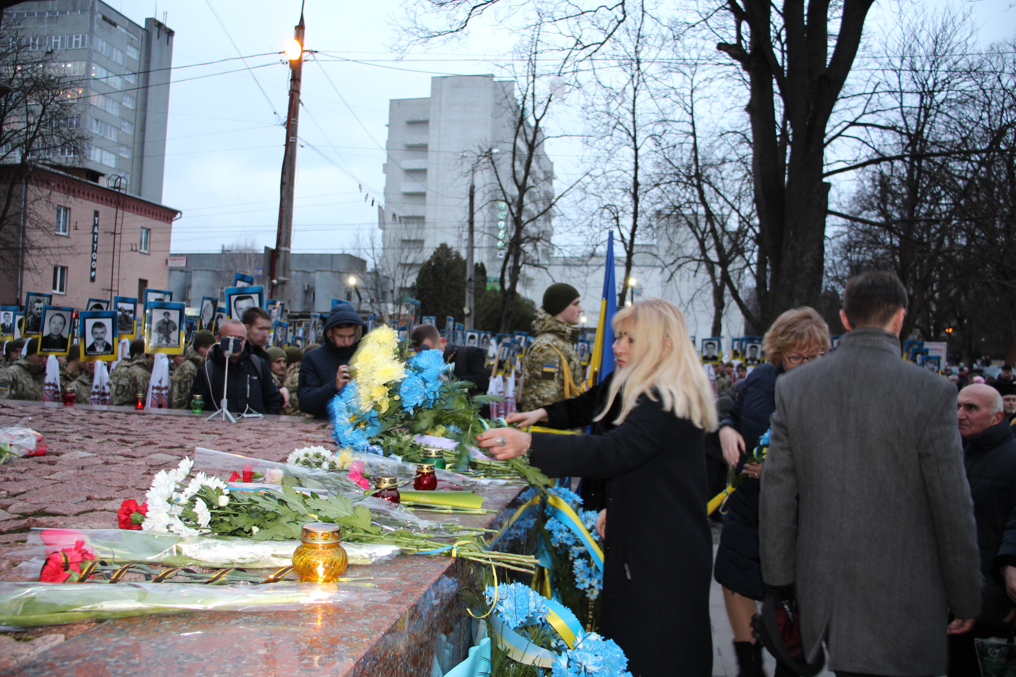 Квіти до пам’ятника Героям Небесної Сотні та Меморіальної дошки пам’яті Героїв Небесної Сотні та учасників АТО поклали учасники Революції Гідності та антитерористичної операції, родини загиблих Героїв Небесної Сотні та учасники Операції об’єднаних сил на Сході України, керівники міста й області, депутати міської та обласної рад, представники духовенства, громадськість міста.