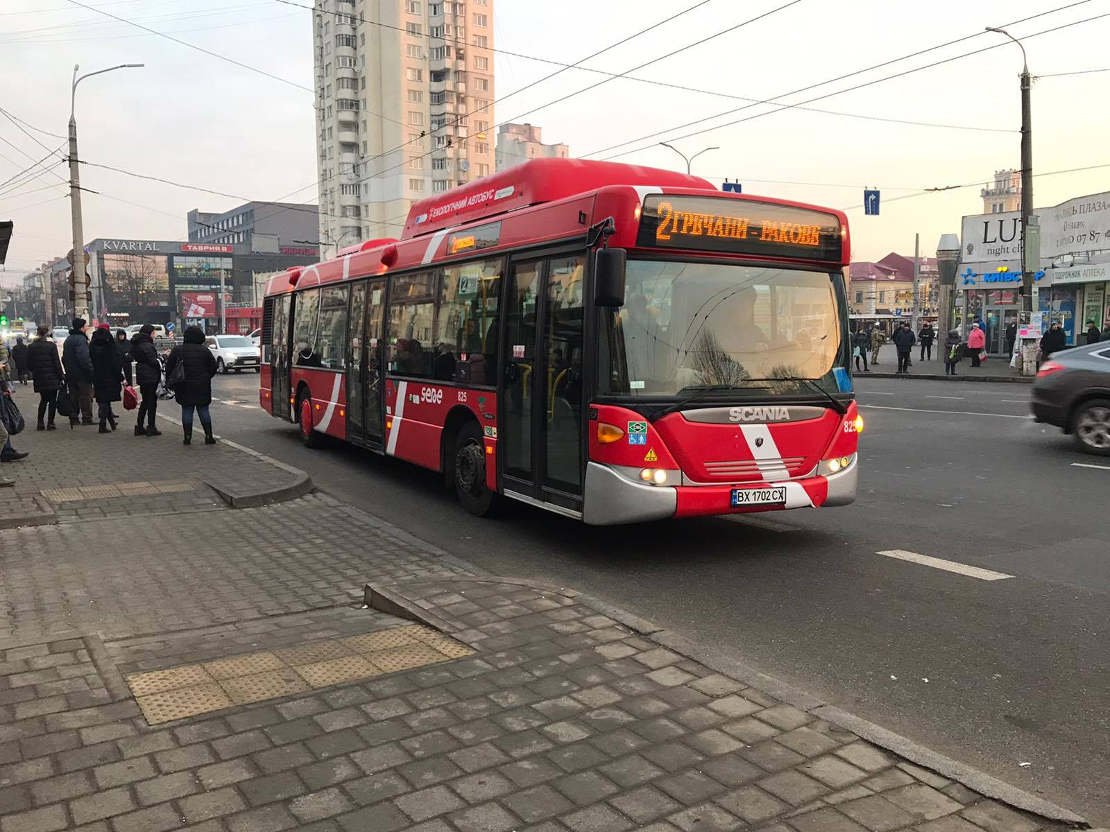 За результатами конкурсів з перевезення пасажирів, що відбулися у листопаді цього року у місті Хмельницькому, автобусний маршрут № 2 сполученням «Вул. Північна - Ракове» з 10 грудня цього року обслуговує новий автомобільний перевізник – приватне підприємство «АвтоГаз-Захід», який забезпечив випуск 5-ти нових низькопідлогових автобусів, що працюють на екологічному виді палива (газ).