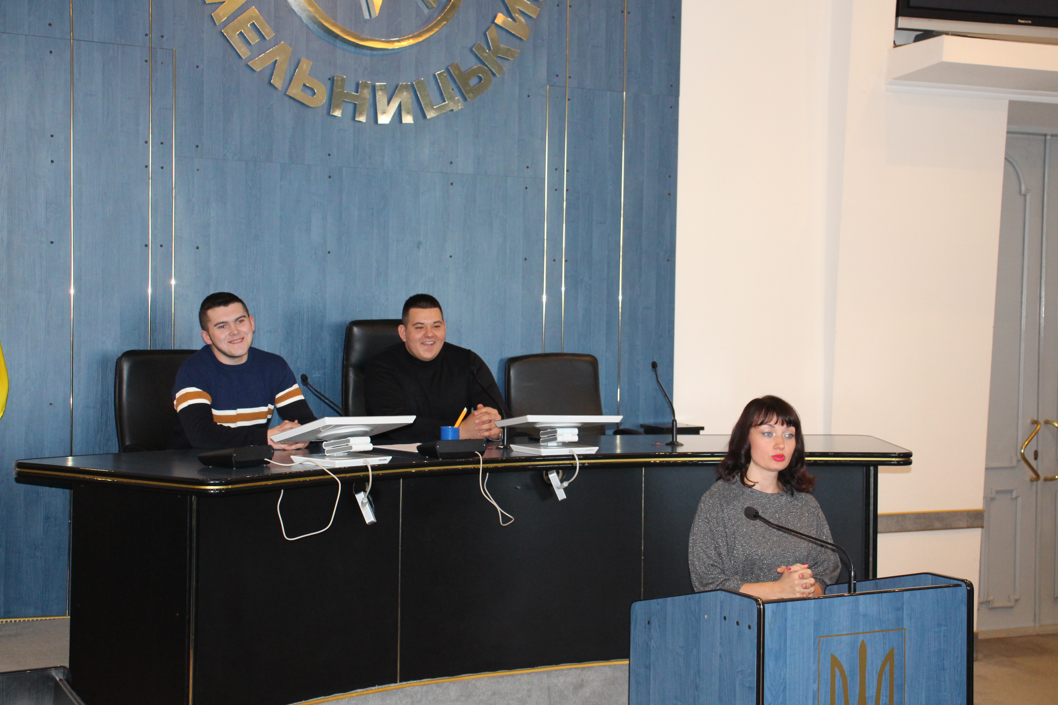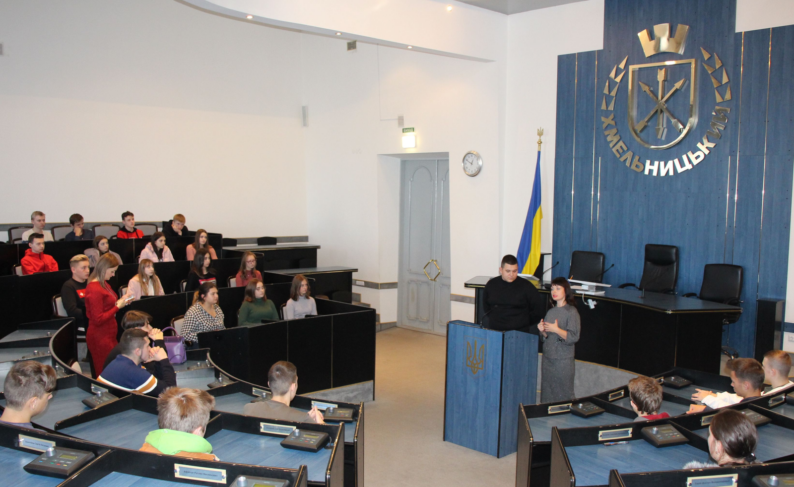 Далі із діяльністю органів місцевого самоврядування, роботою та складом міської ради молодь ознайомила керуючий справами виконавчого комітету Хмельницької міської ради Юлія Сабій.