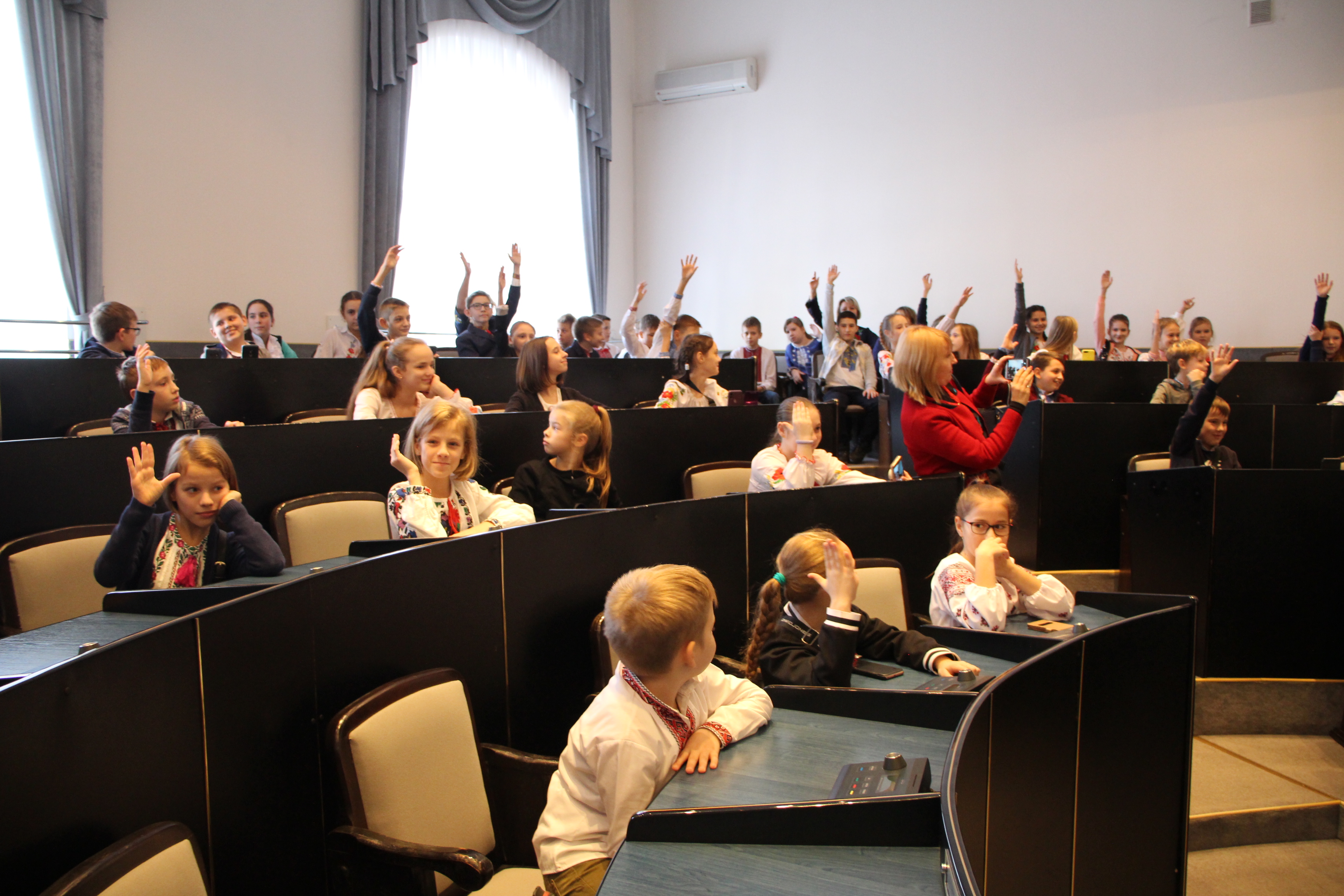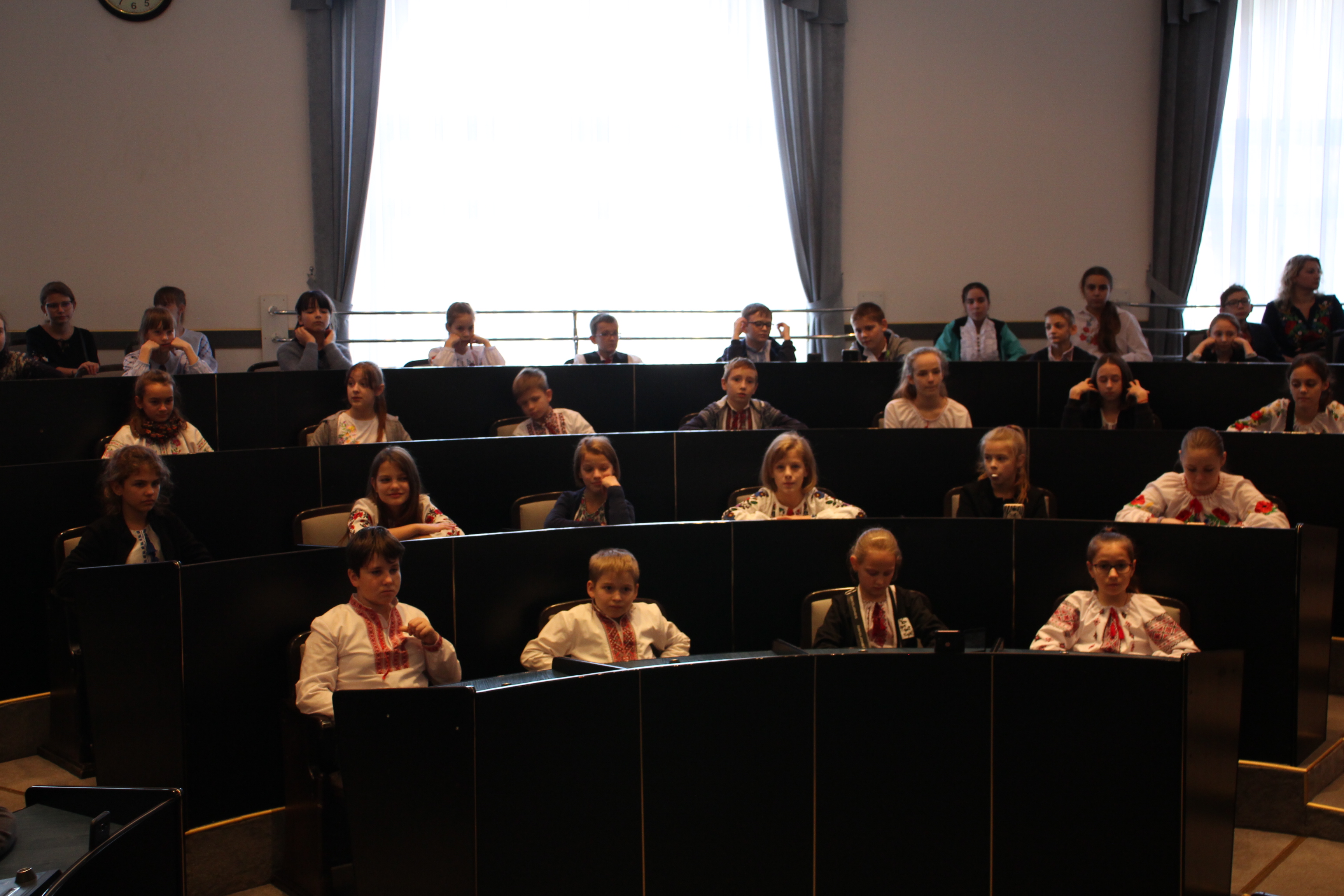 Діти побували у сесійній залі, посиділи на місцях депутатів, а також у кріслі міського голови, дізналися про роботу ради, виконавчого комітету і про те, як ухвалюються важливі для міста рішення. А ще спробували себе у ролі міського голови та його заступників.