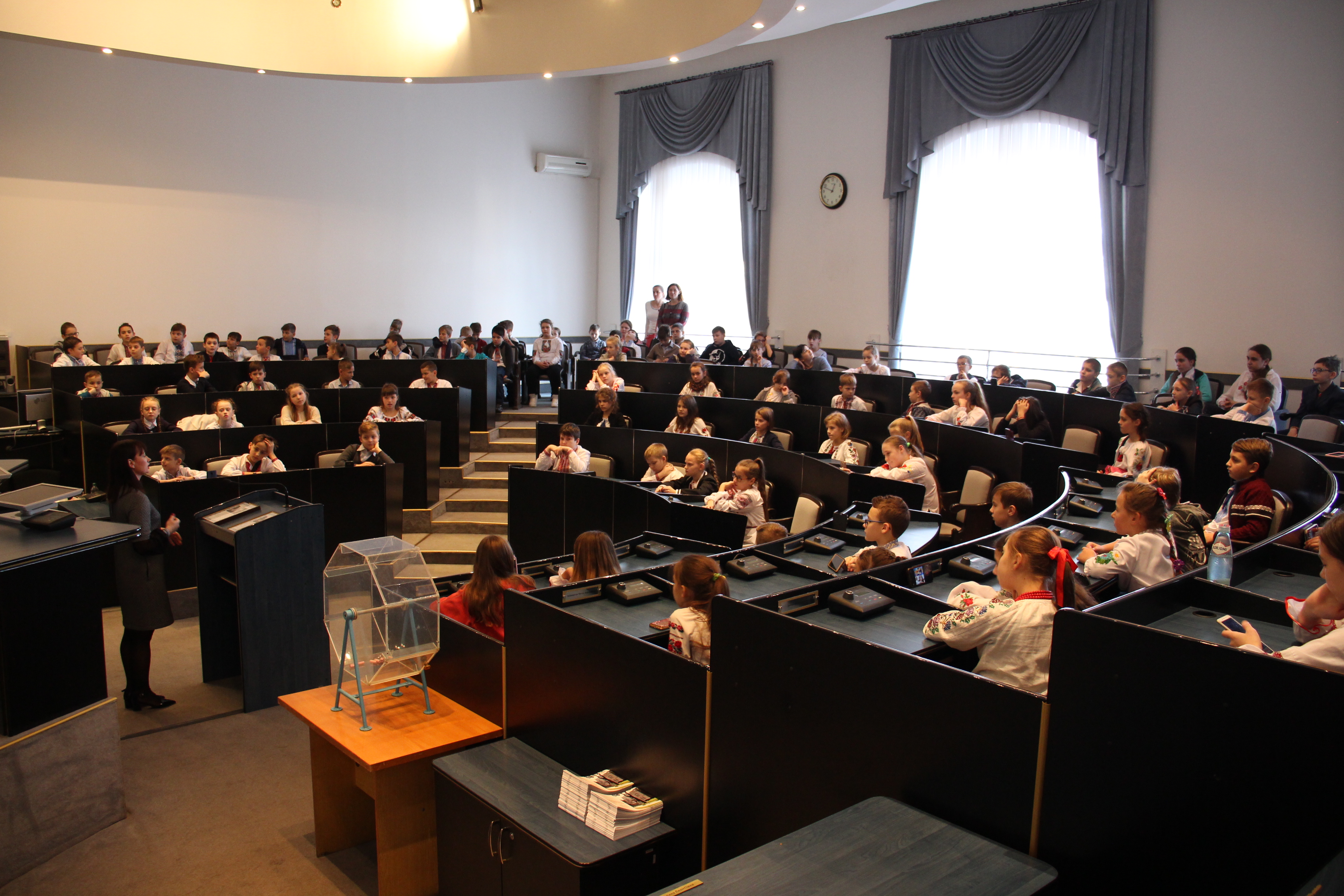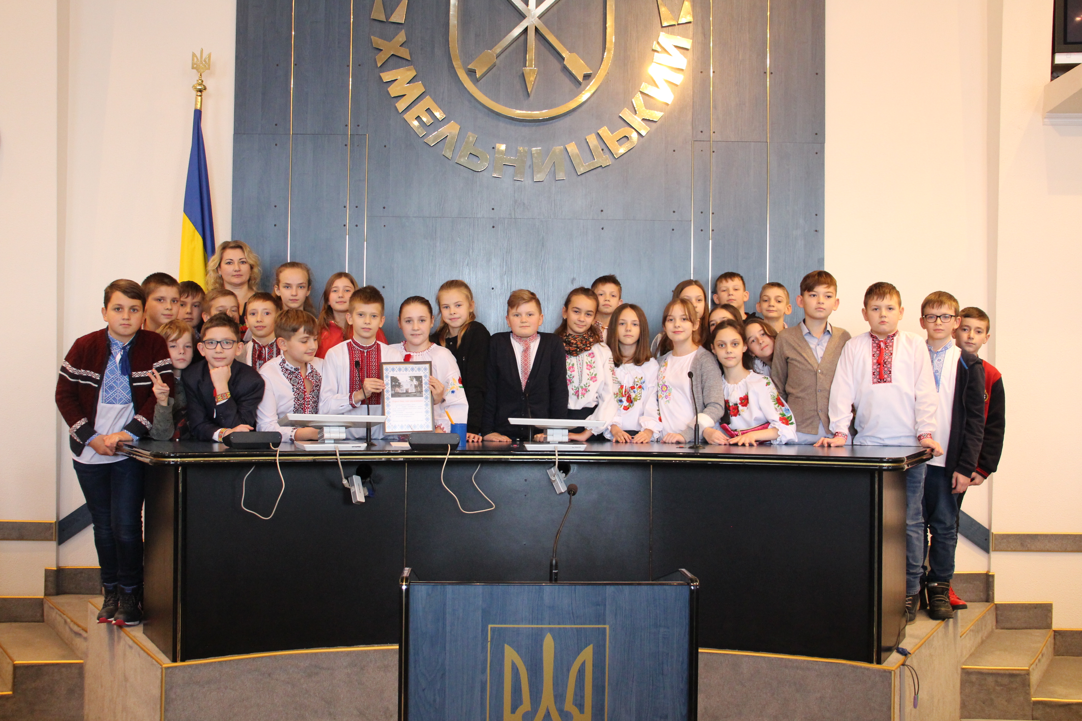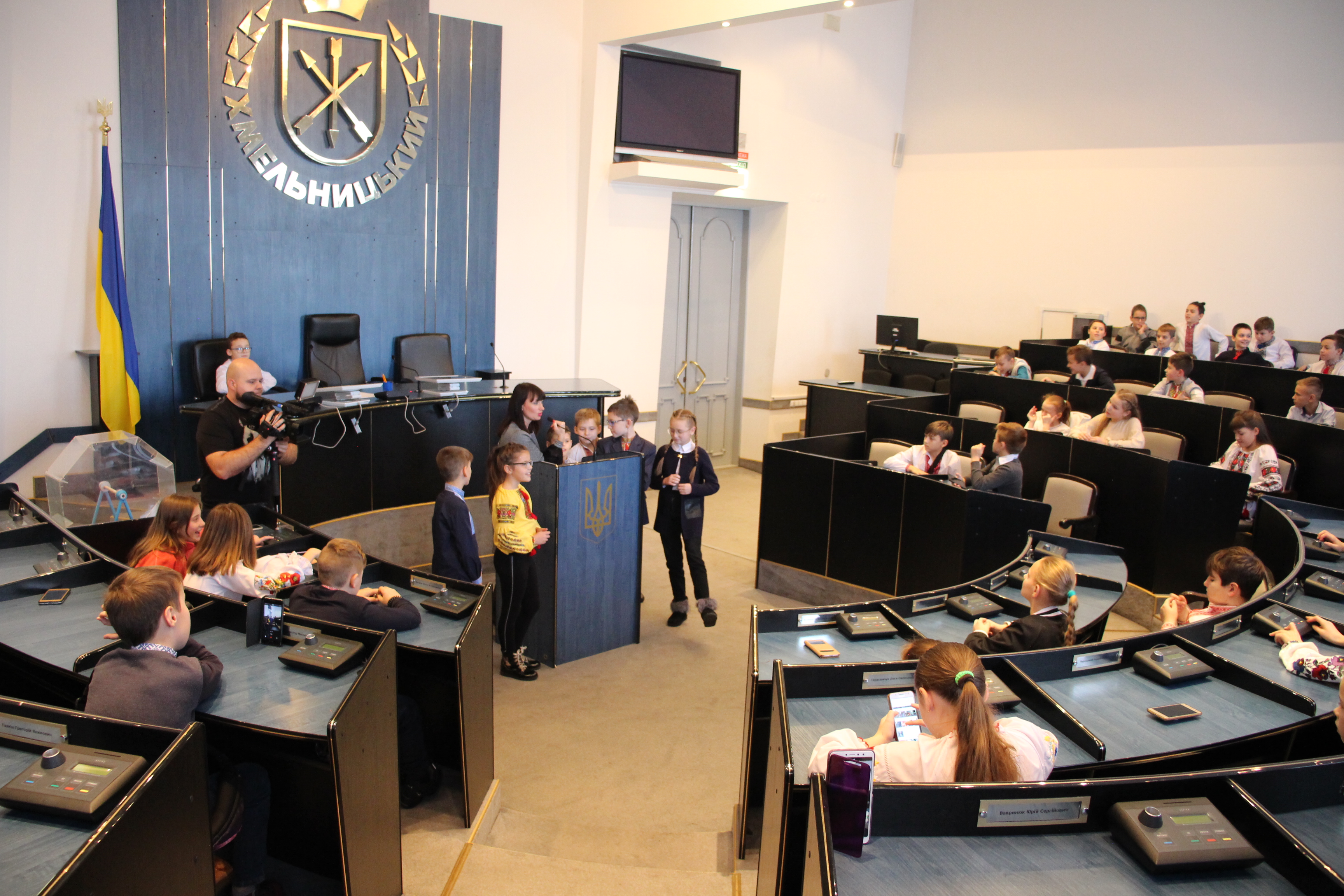 Традиційно школярам розповіли про історію будівлі міської ради, в якій ще минулого століття, у 1904 році, знаходилось Олексіївське реальне училище, а нині працює керівницво міста, про досягнення колишніх міських голів обласного центру, людей, які своєю працею і талантом керівників примножували славу рідного міста, сприяли його розвитку. Дізналися, що на честь колишнього міського голови Миколи Сікори, який головував у період 1917-1921 років, перейменовано одну з вулиць міста Хмельницького, а ім’я очільника міста у 1990-2002 роках Михайла Чекмана носить школа №13, що у мікрорайоні Лезневе, та найбільший парк у Хмельницькому – парк культури та відпочинку.