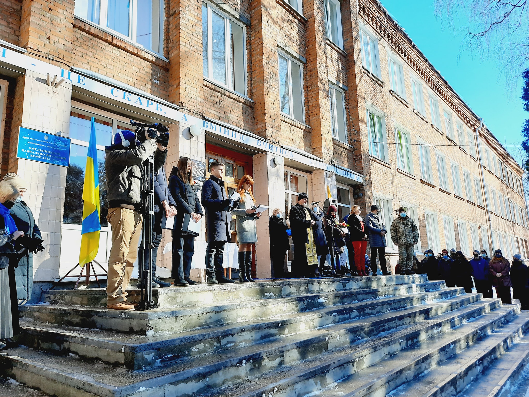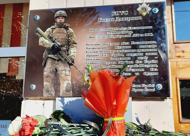 На фасаді НВК №4 урочисто відкрили меморіальну дошку на честь випускника закладу Богдана Бігуса, який загинув у російсько-українській війні