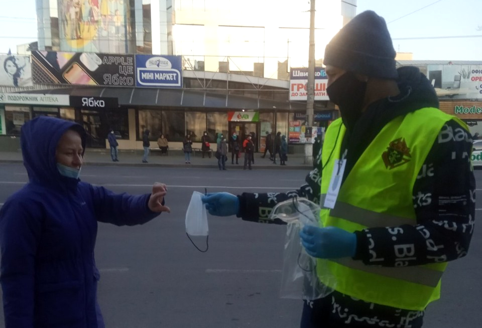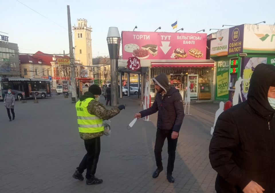 На зупинках громадського транспорту хмельничан забезпечували захисними масками