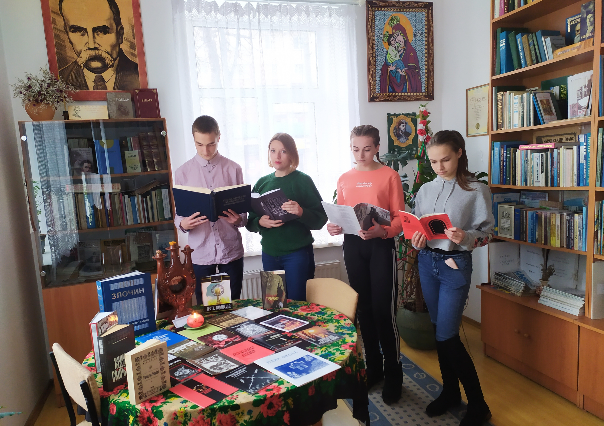 Це засвідчує книжкова виставка в читальні Народного Дому «Просвіти»: унікальні видання англійською мовою, журнали «Рідна школа» й «Пам ’ять століть», Енциклопедія Голодомору, твори місцевих авторів про трагедію жахіття голодної смерті для подолян.