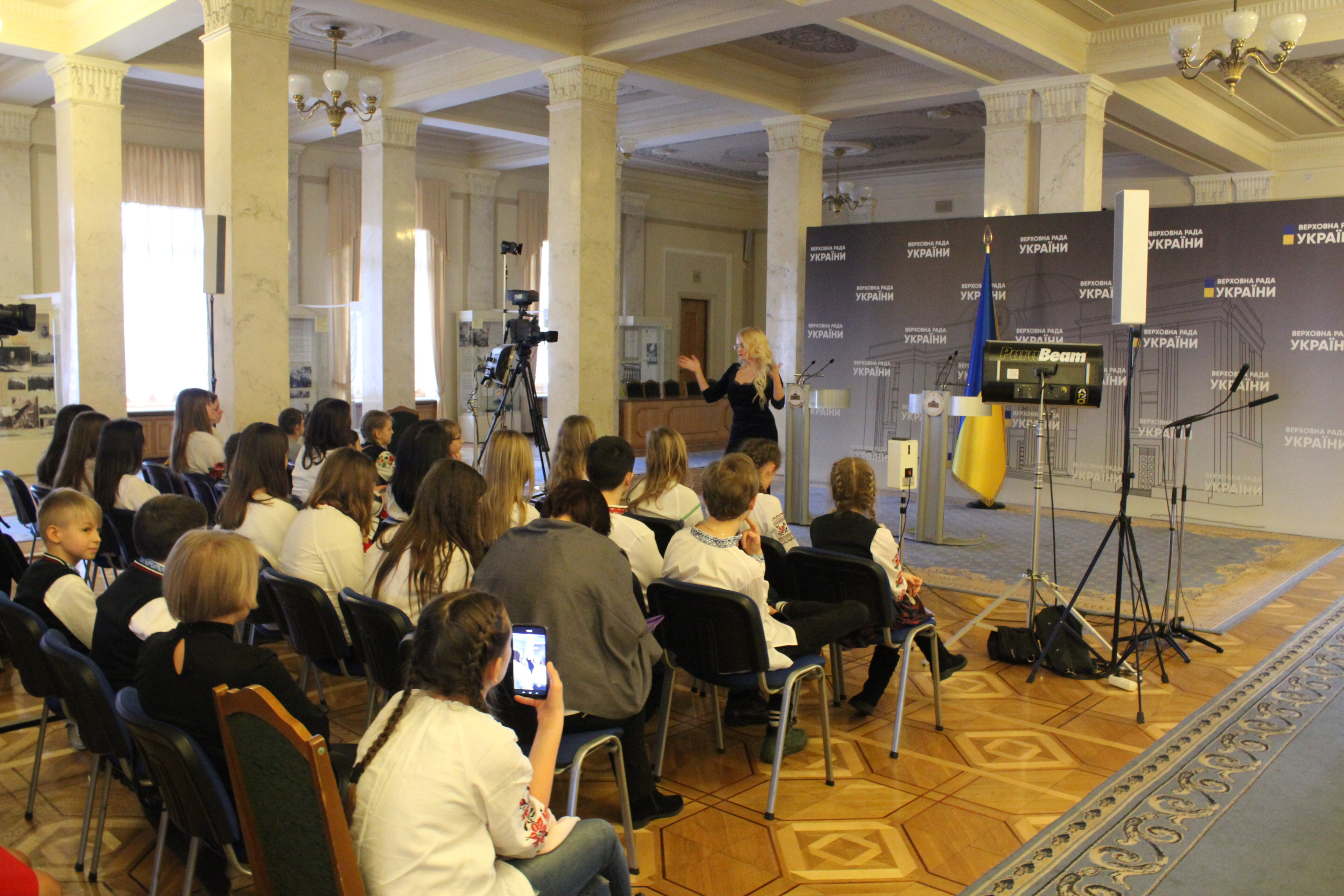Проте найбільше дітей цікавила зала засідань Верховної Ради України. Юні інтелектуали побачили залу, де працюють депутати, ознайомилися із складом депутатського корпусу та іншими важливими моментами в роботі народних обранців.
