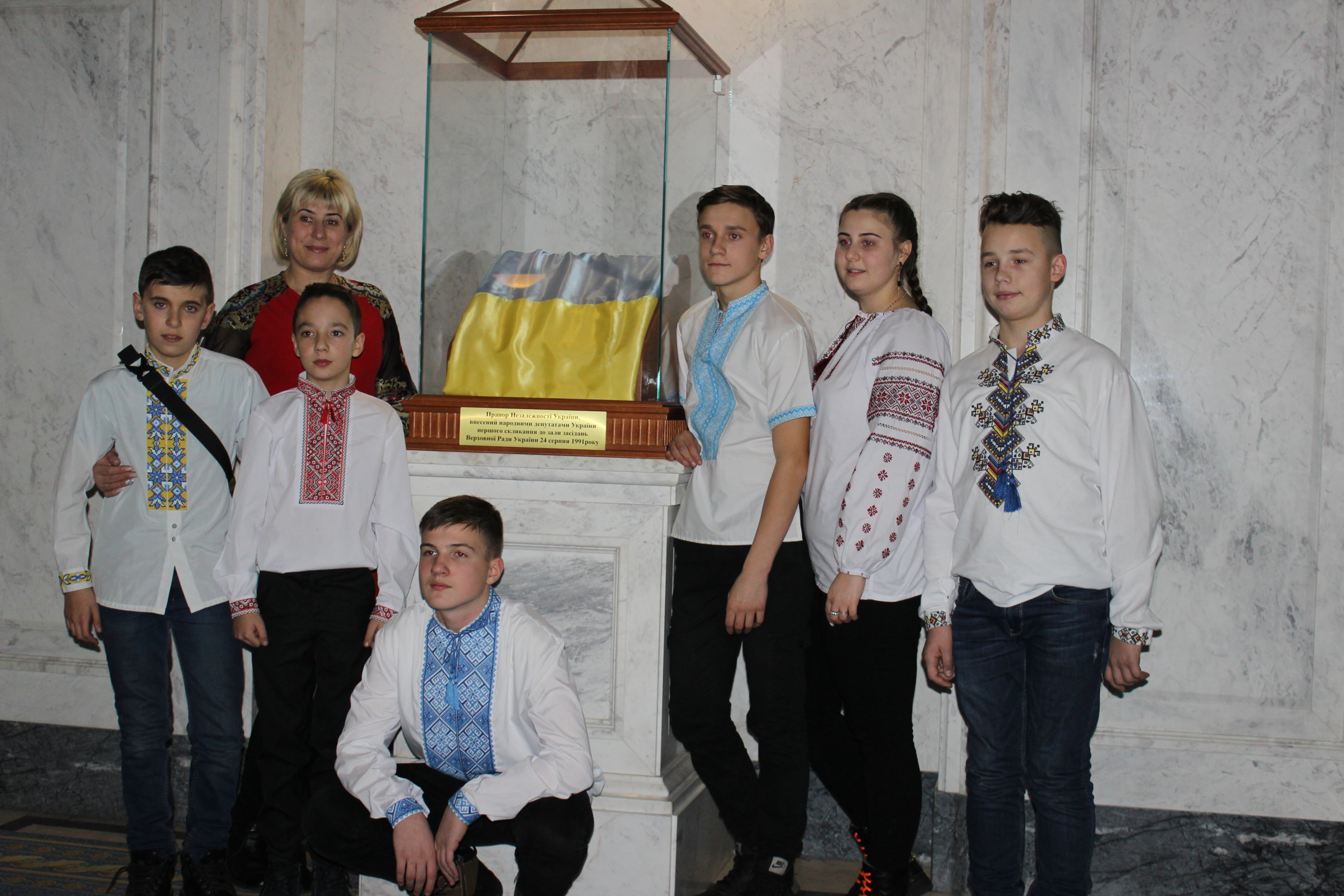 Побачили хмельницькі школярі й український прапор, розміром чотири на вісім метрів. Його було занесено до зали пленарних засідань ВРУ в день проголошення Незалежності України 24 серпня 1991 року.