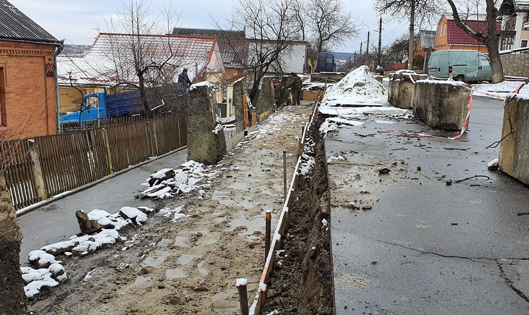 Днями на вулиці Короленка, що у мікрорайоні Дубове, розпочато роботи із капітального ремонту підпірної стінки. Монолітна стіна, яка має довжину 32 метри, збудована досить давно і з часом почала руйнуватись.