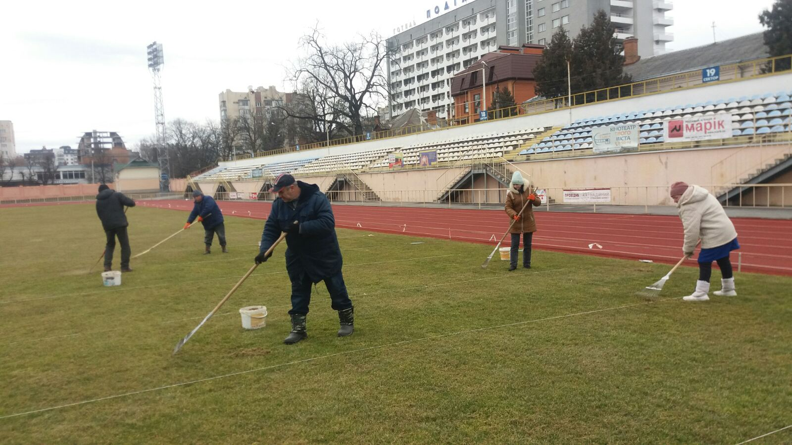 З настанням сприятливого температурного режиму (стабільна температура понад 10 градусів тепла), планується суцільний підсів футбольного газону спеціальними травами з витривалістю до навантаження та спеціальною сумішшю з мінеральних, азотних та калійних добрив, а також проведення робіт спецтехнікою аерації та скарифікації, що у свою чергу додасть сил, як кореневій системі, так і зовнішньому трав’яному покриттю.