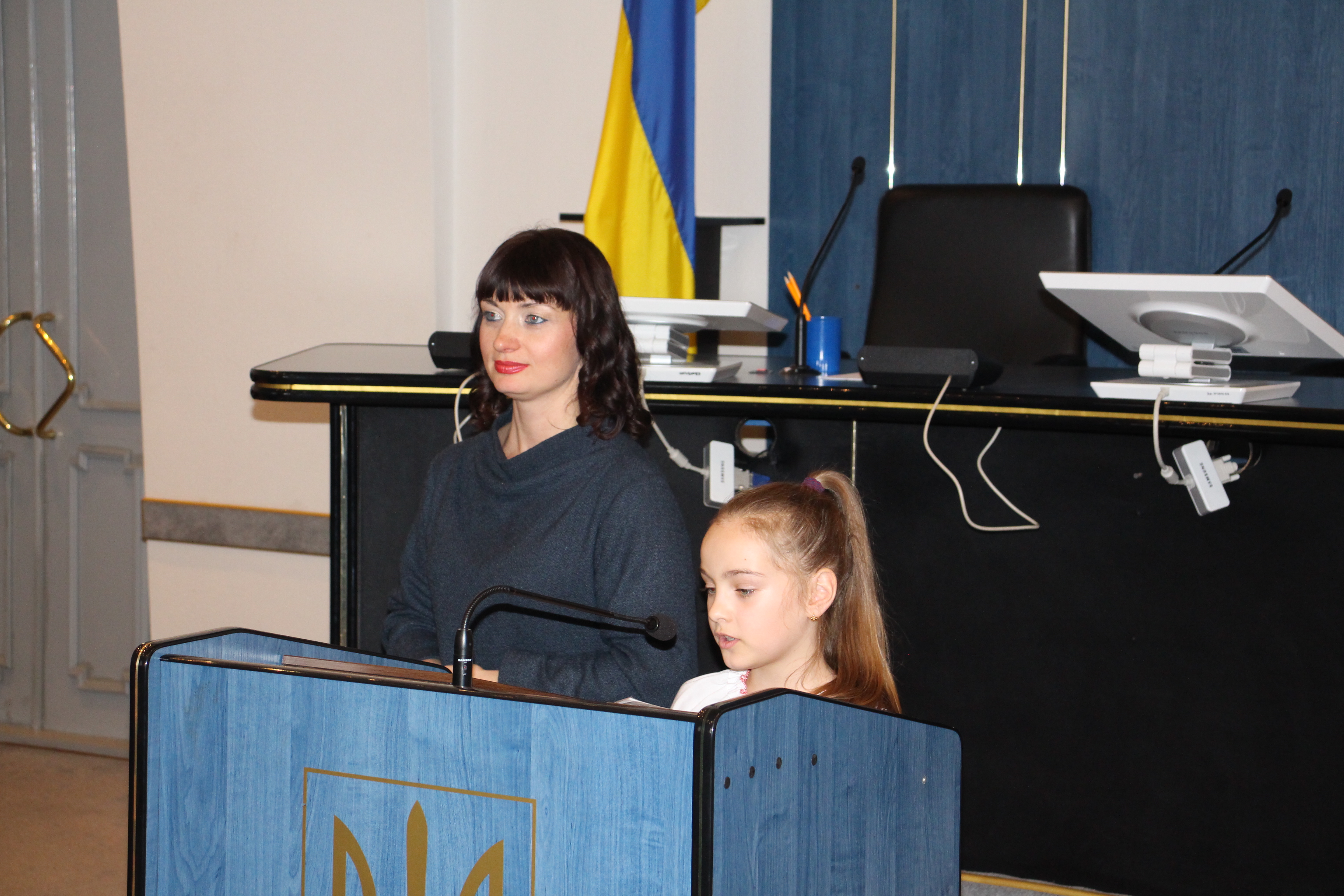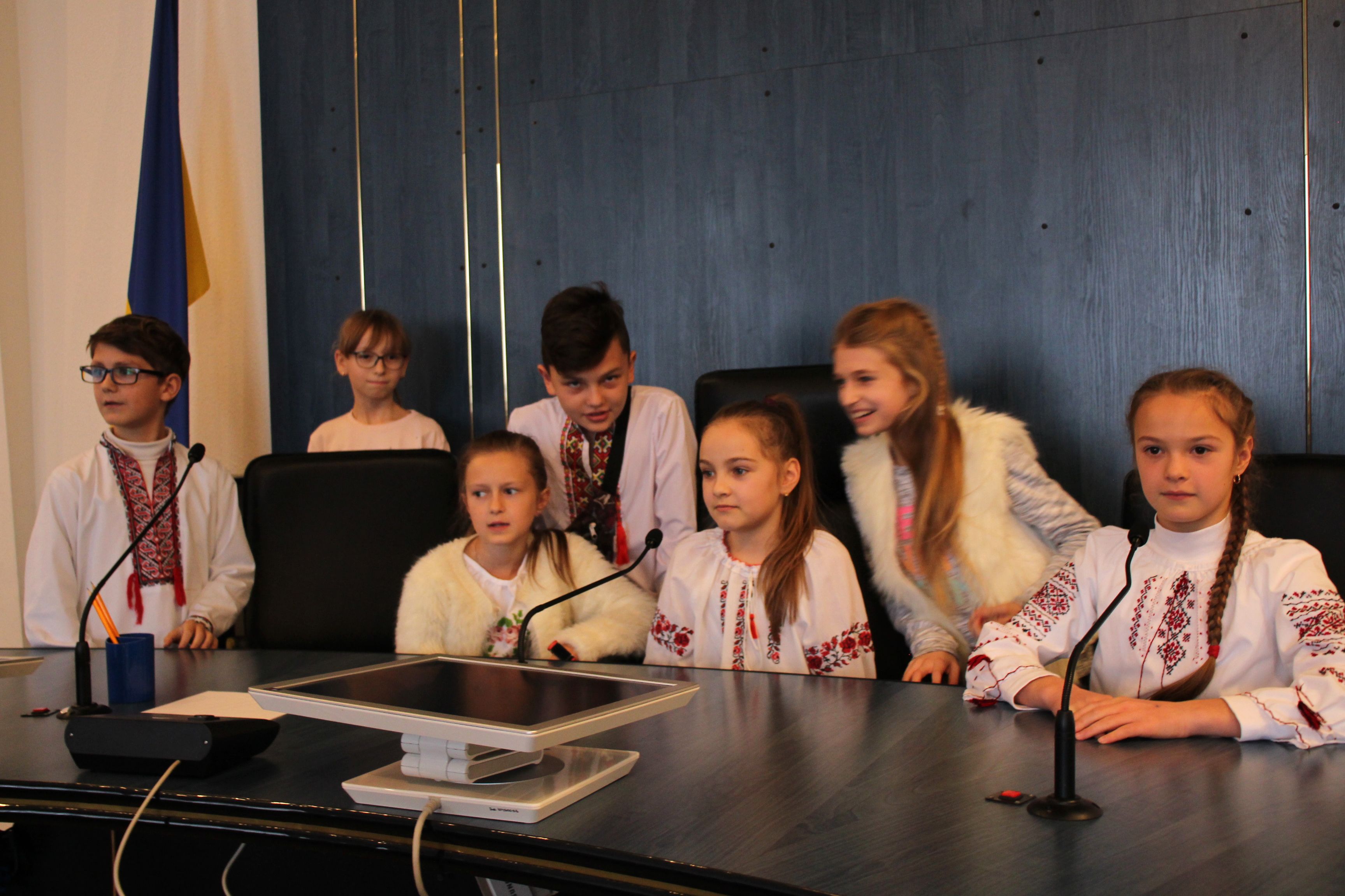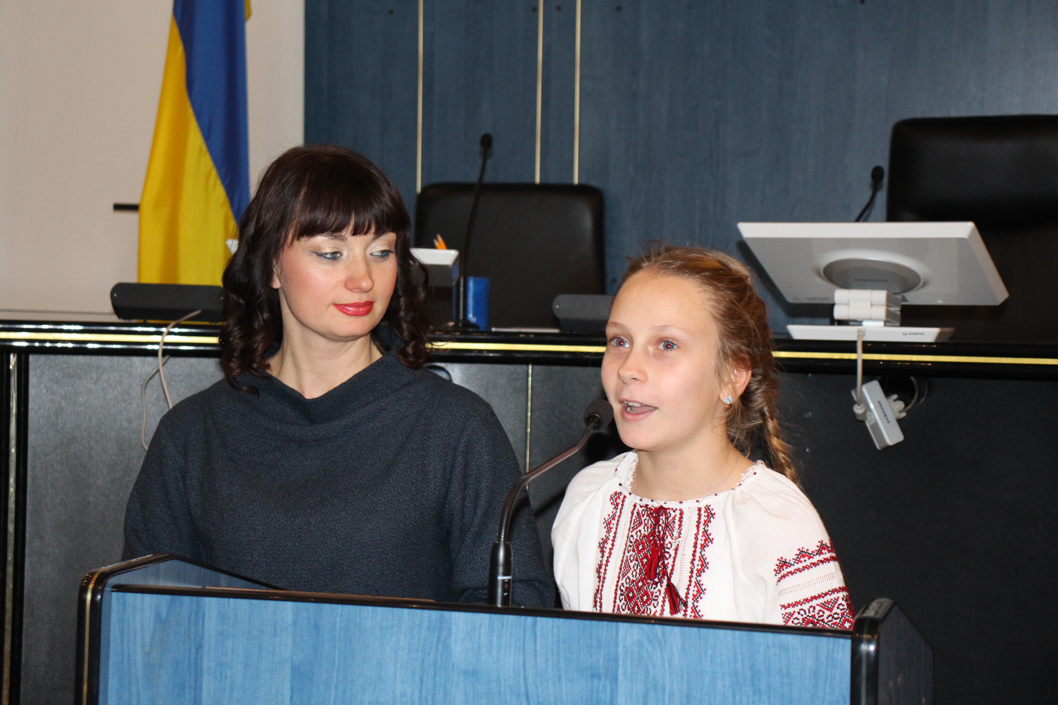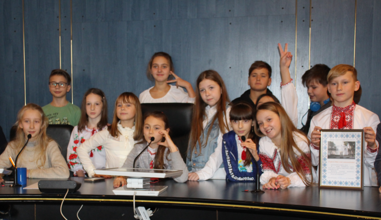 На згадку про візит до міської ради Юлія Сергіївна вручила учням вітальні листівки від міського голови Олександра Симчишина.