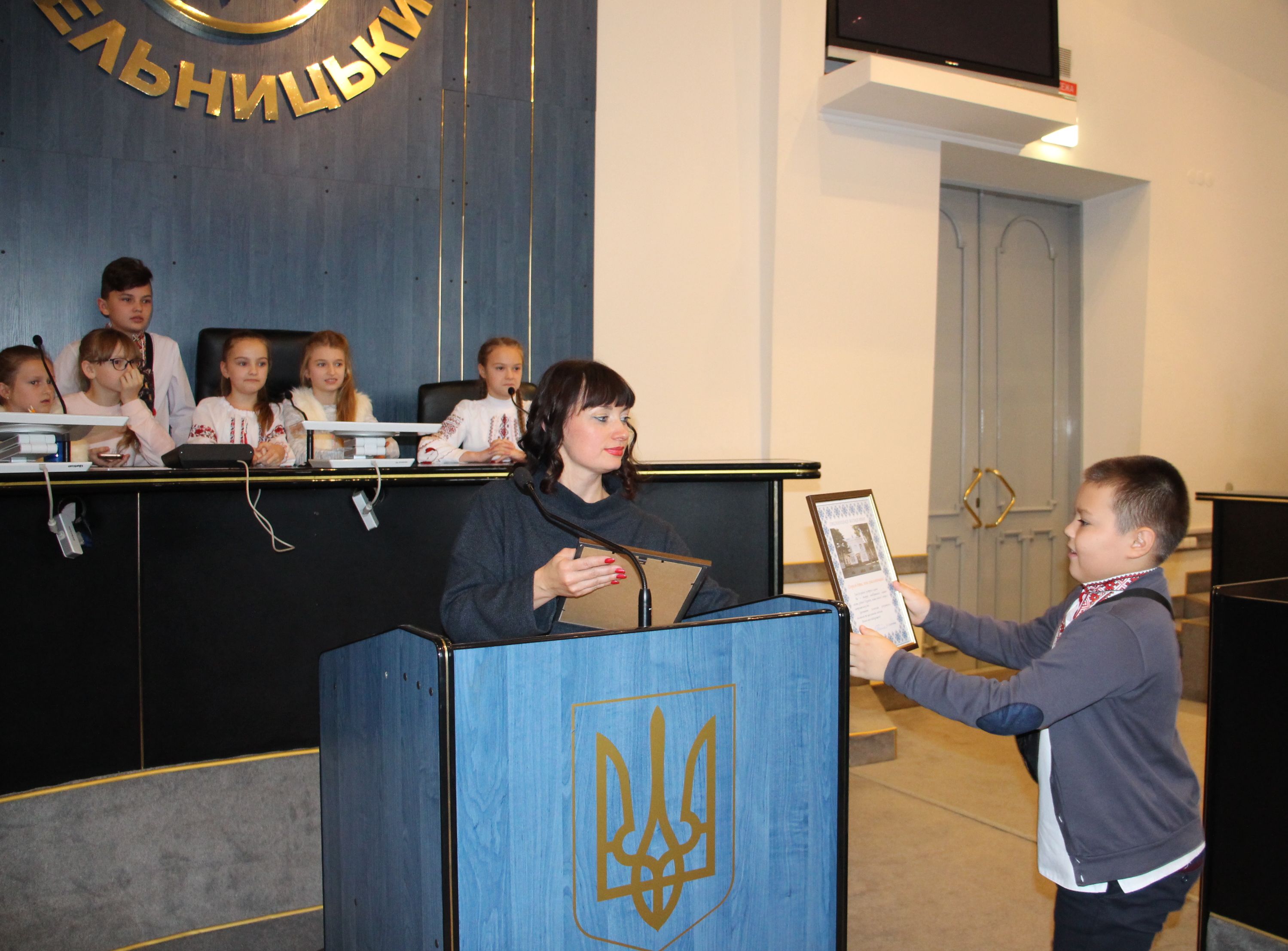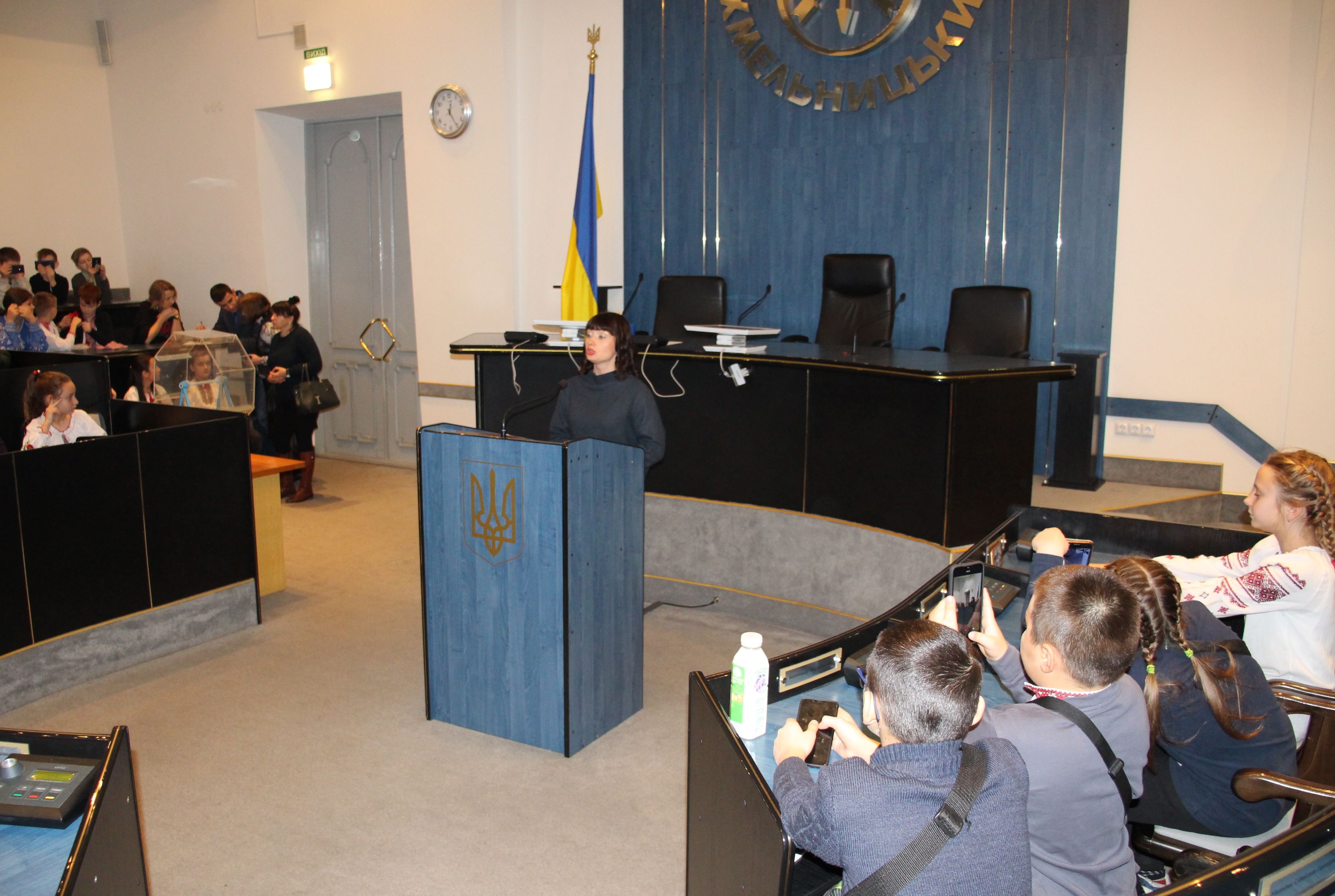 На початку екскурсії юних відвідувачів привітала керуючий справами виконавчого комітету Хмельницької міської ради Юлія Сабій, яка побажала дітям пізнавальної екскурсії. Після цього працівник музею історії міста Хмельницького розповіла про історію розвитку нашого міста.