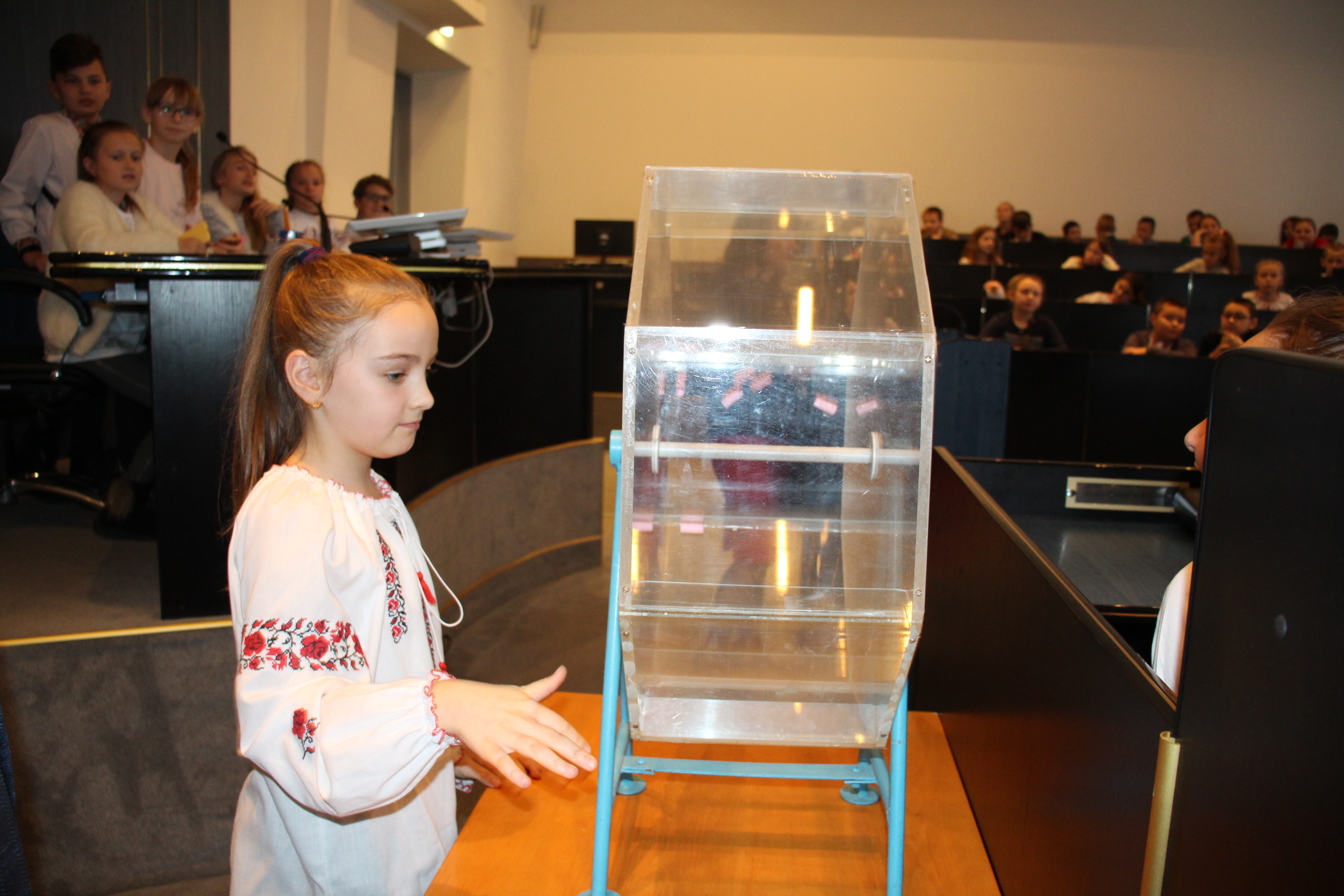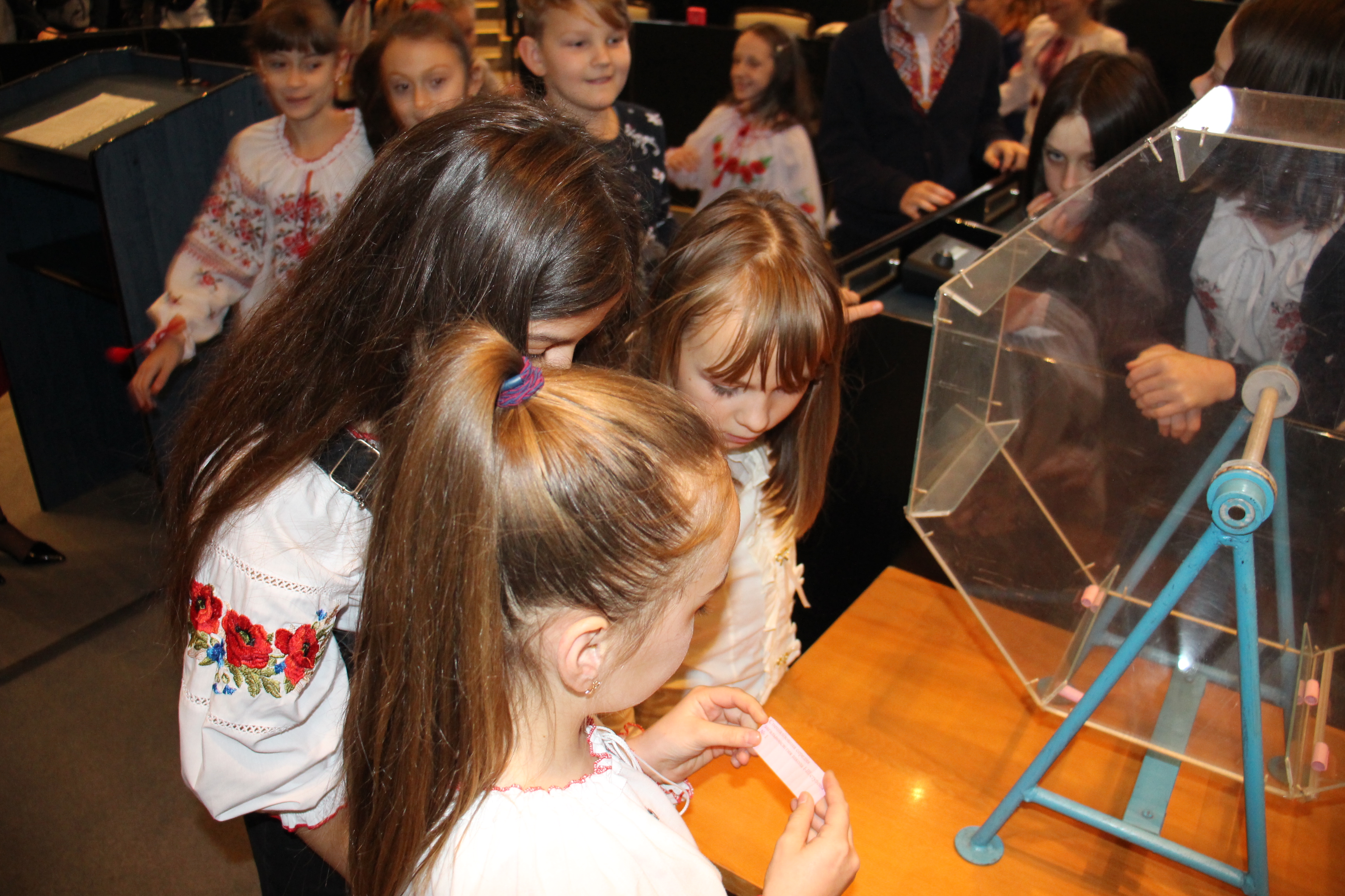 Далі за допомогою барабану школярі обрали заклад, учні якого наступними прийдуть на екскурсію до міської ради. Ними стали учні загальноосвітньої школи №1. В подарунок учасники отримали брошуру «Хмельницька міська рада. Проскурівське реальне училище» (з серії «Пам’ятки історії та архітектури міста Хмельницького», автор С. Єсюнін).