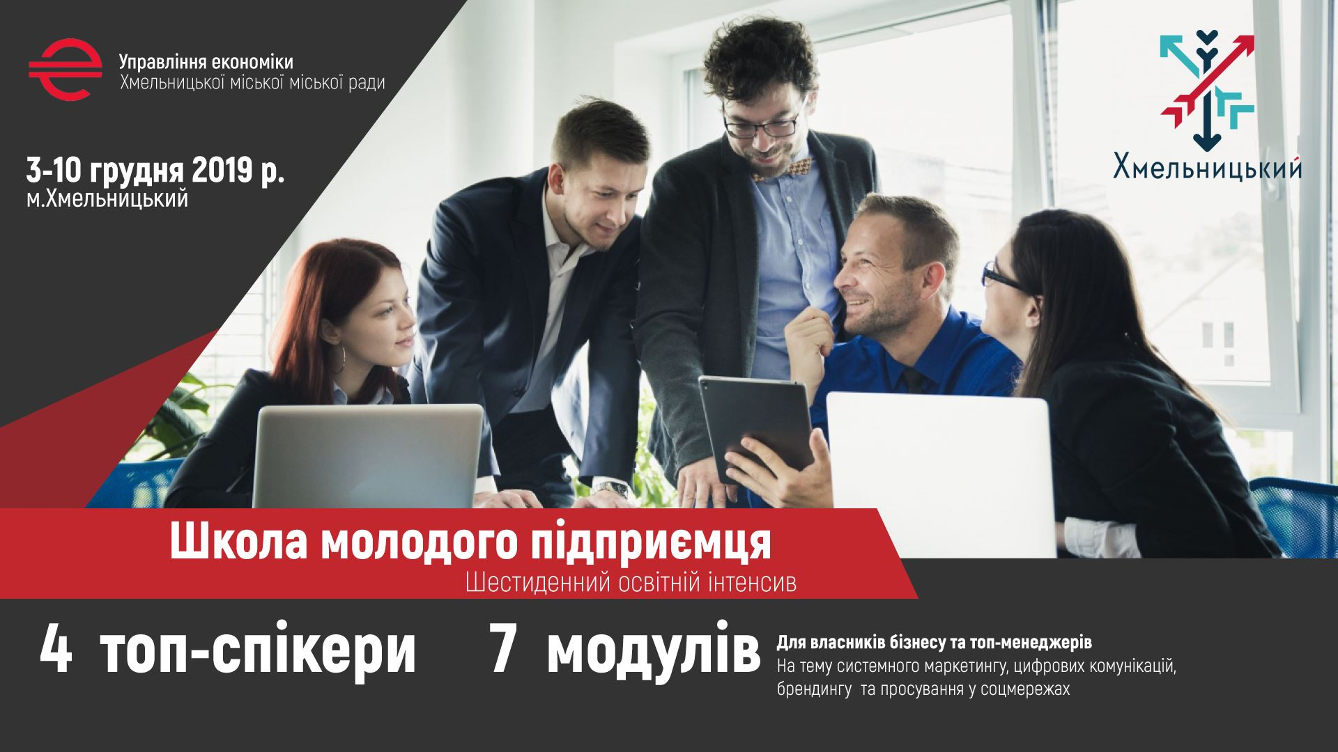 Для усіх активних та цілеспрямованих в Хмельницькому вчергове проведуть освітній інтенсив «Школа молодого підприємця». Протягом шести днів учасники освітнього проєкту вивчатимуть системний маркетинг, цифрові комунікації, брендинг та просування у соціальних мережах. Організатором є Управління економіки Хмельницької міської ради.