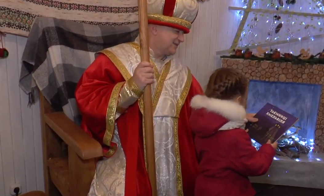 Розказавши віршик, прочитавши молитву чи заспівавши пісеньку маленькі відвідувачі отримують подарунок від Святого Миколая – цікаву книжку «Таємниці Хмельвіля».