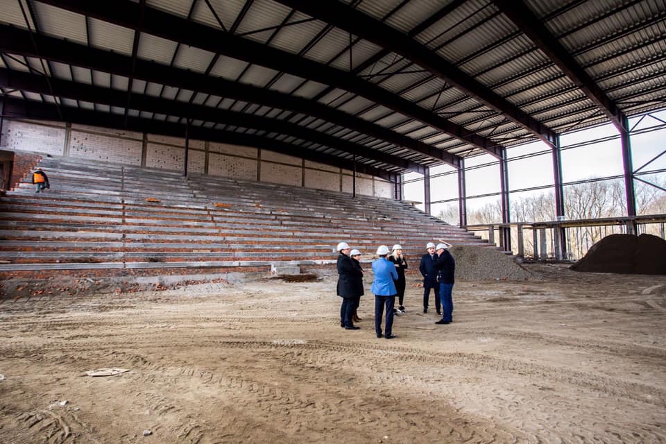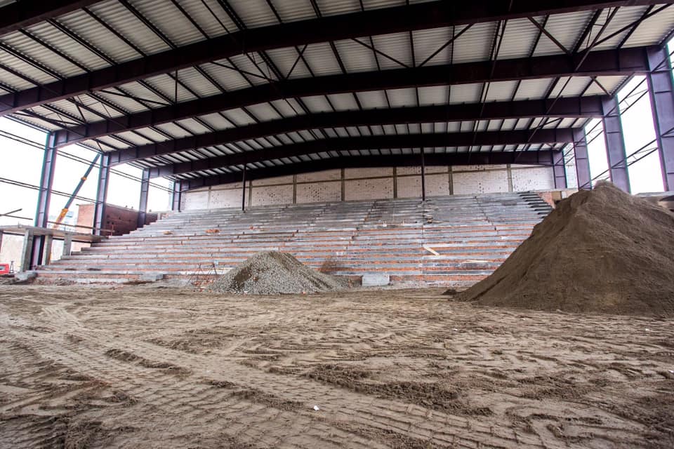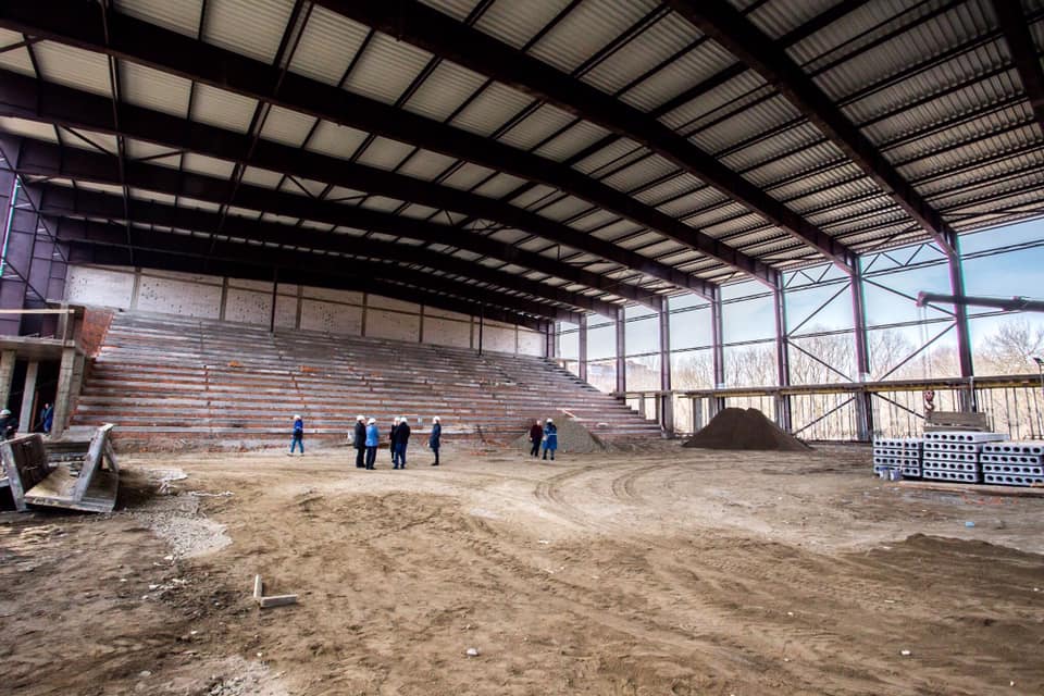 Спортивна арена вже має дах, завершується будівництво трибун на 2700 місць (з балконом, який може вміщувати до 3100 глядачів), завершується будівництво підтрибунних приміщень, аварійних виходів, роздягалень тощо.