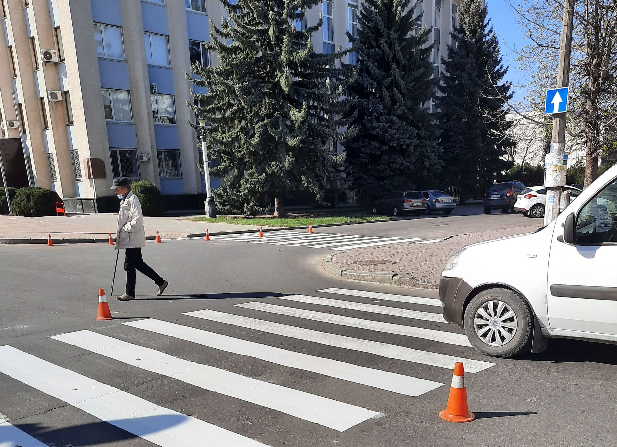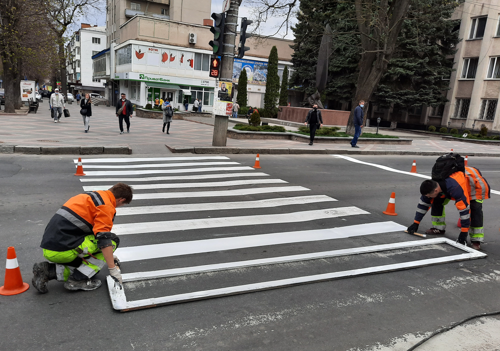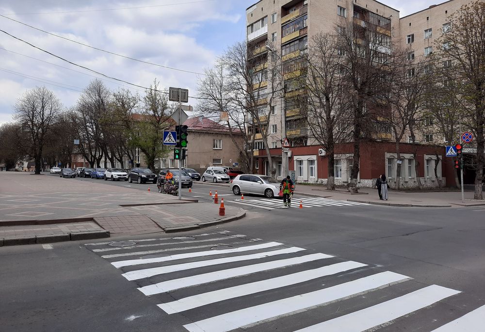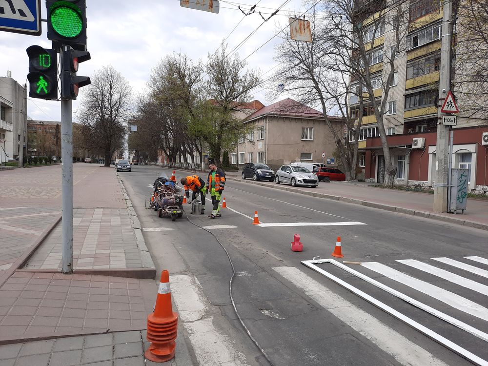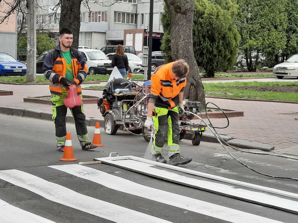 На дорогах міста Хмельницького наносять дорожню розмітку, аби убезпечити учасників дорожнього руху (водіїв, пасажирів, пішоходів, велосипедистів).