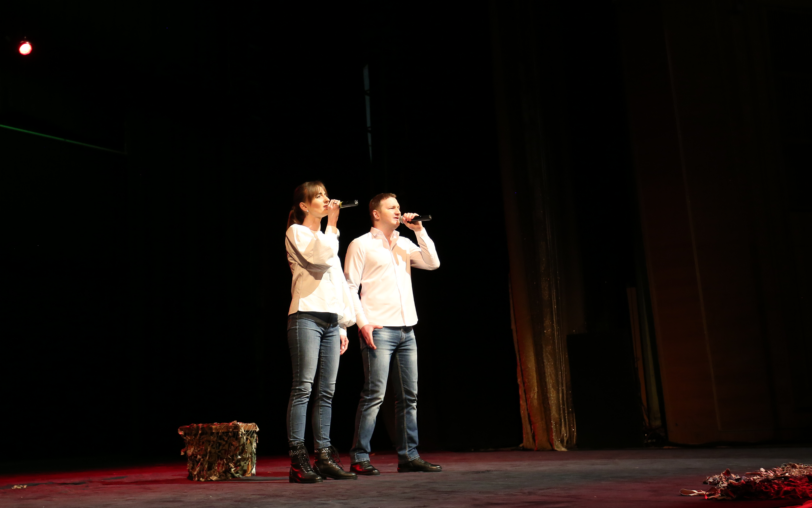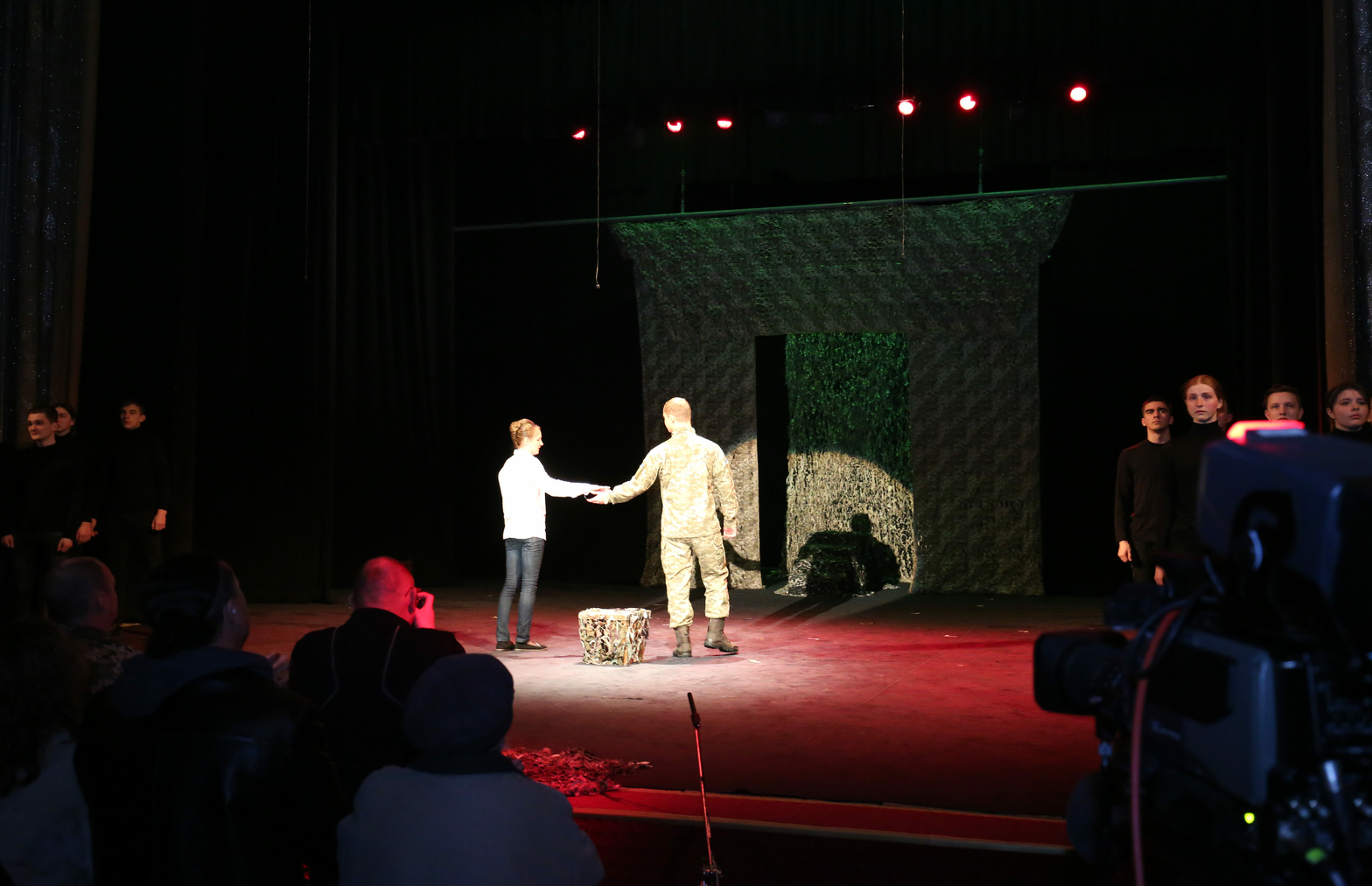 Під час театралізованого дійства також звучали пісні на тему війни на сході України у виконанні Артема Харченка та Марини Українець, власний вірш Ольги Саліпи, реп "Если бы не мы..." (текст журналістки та блогера Світлани Русіної, музика Івана Пустового). Учасниця бойових дій Оксана Анодіна з Хмельницького з болем в душі і щемом у серці розповідала, ніби гортаючи сторінки тих кривавих подій, про своїх бойових побратимів, про біль і страх, нелюдські умови, втрати та дружбу на війні.