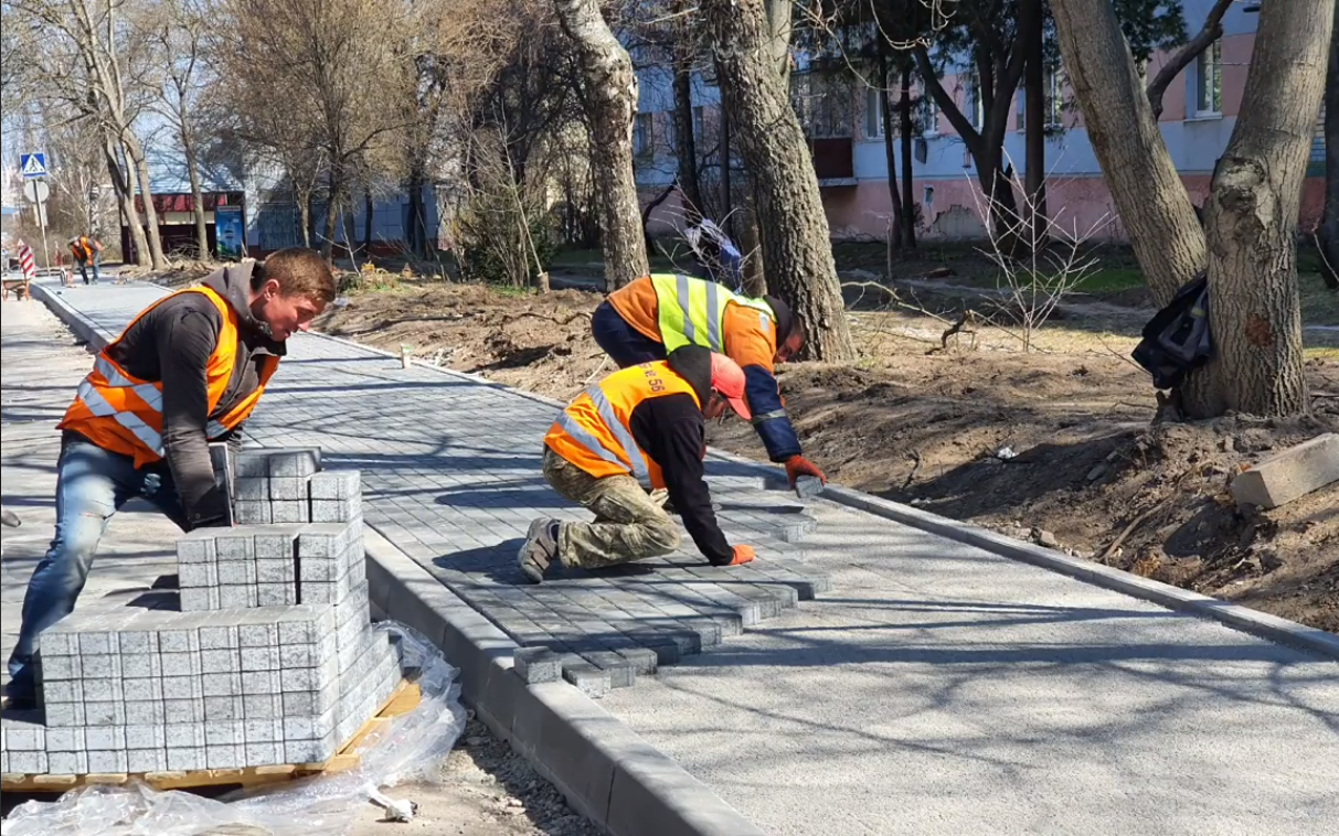 Капітальний ремонт тротуару на вул. Козацькій, що у мікрорайоні Дубове, у розпалі. Для зручності пішоходів працівники підрядної організації вимощують його тротуарною плиткою. Наразі вже виконано 190 м² тротуару.