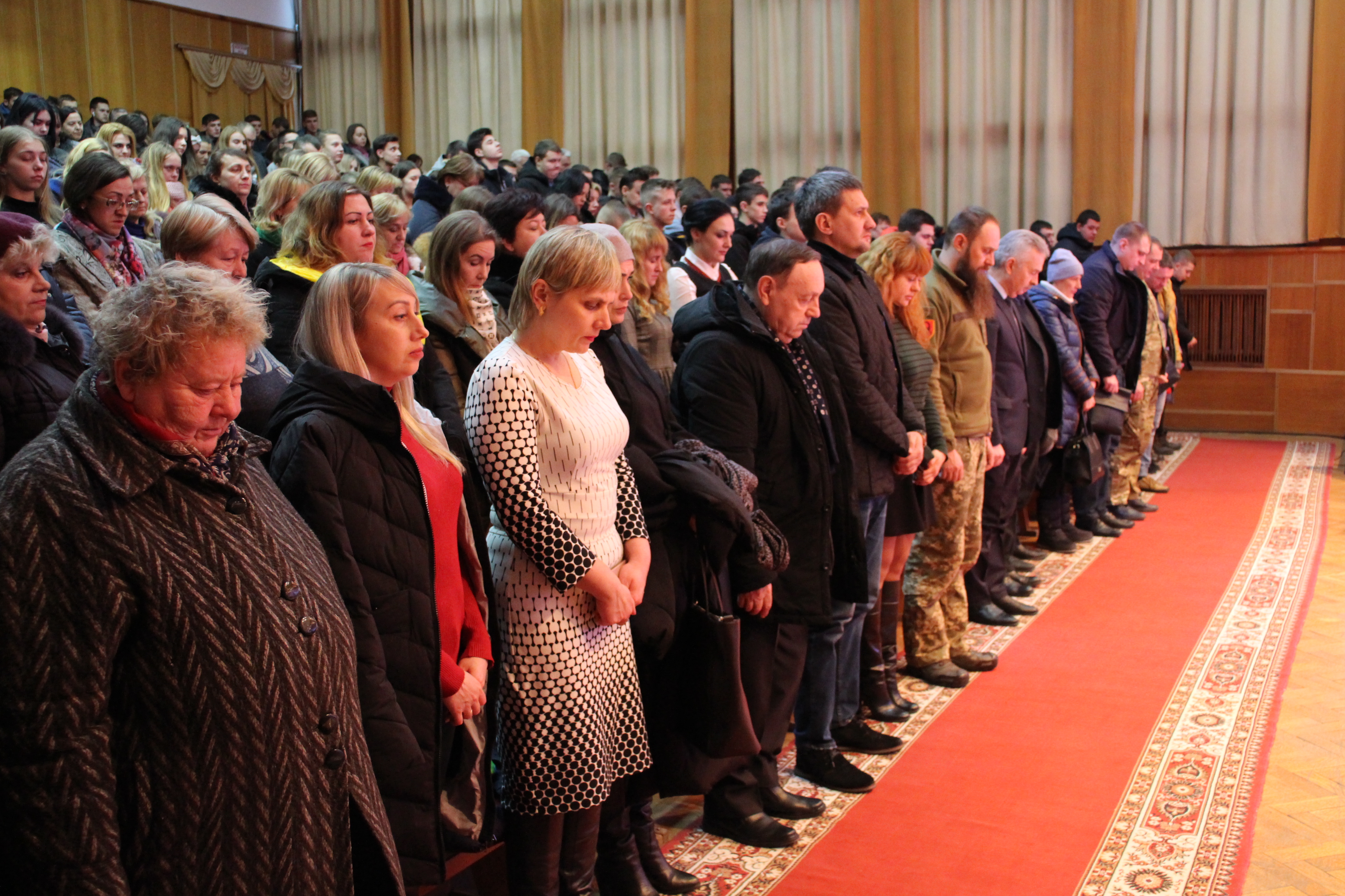 Учасники зібрання вшанували пам’ять про загиблих на сході країни воїнів хвилиною мовчання.
