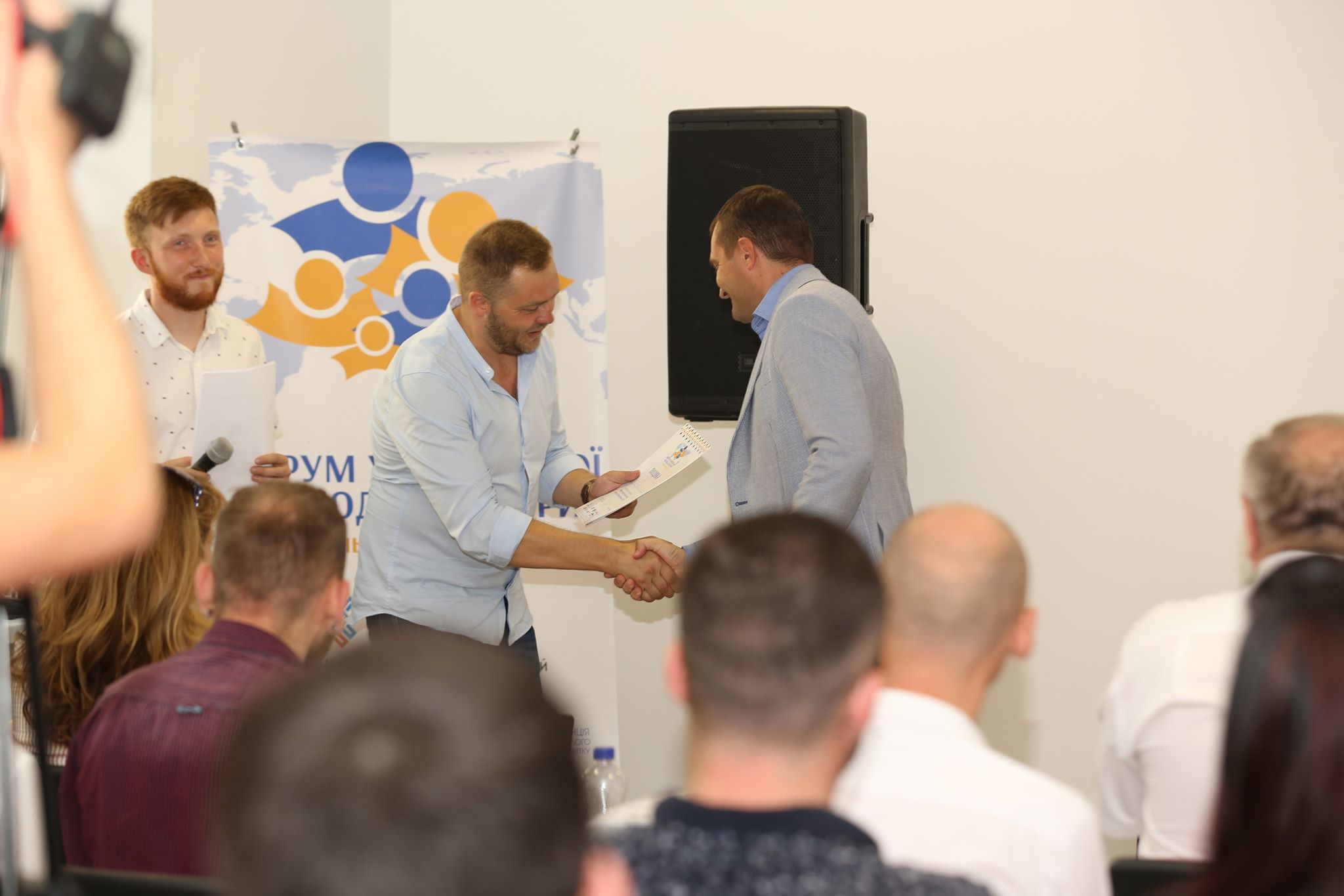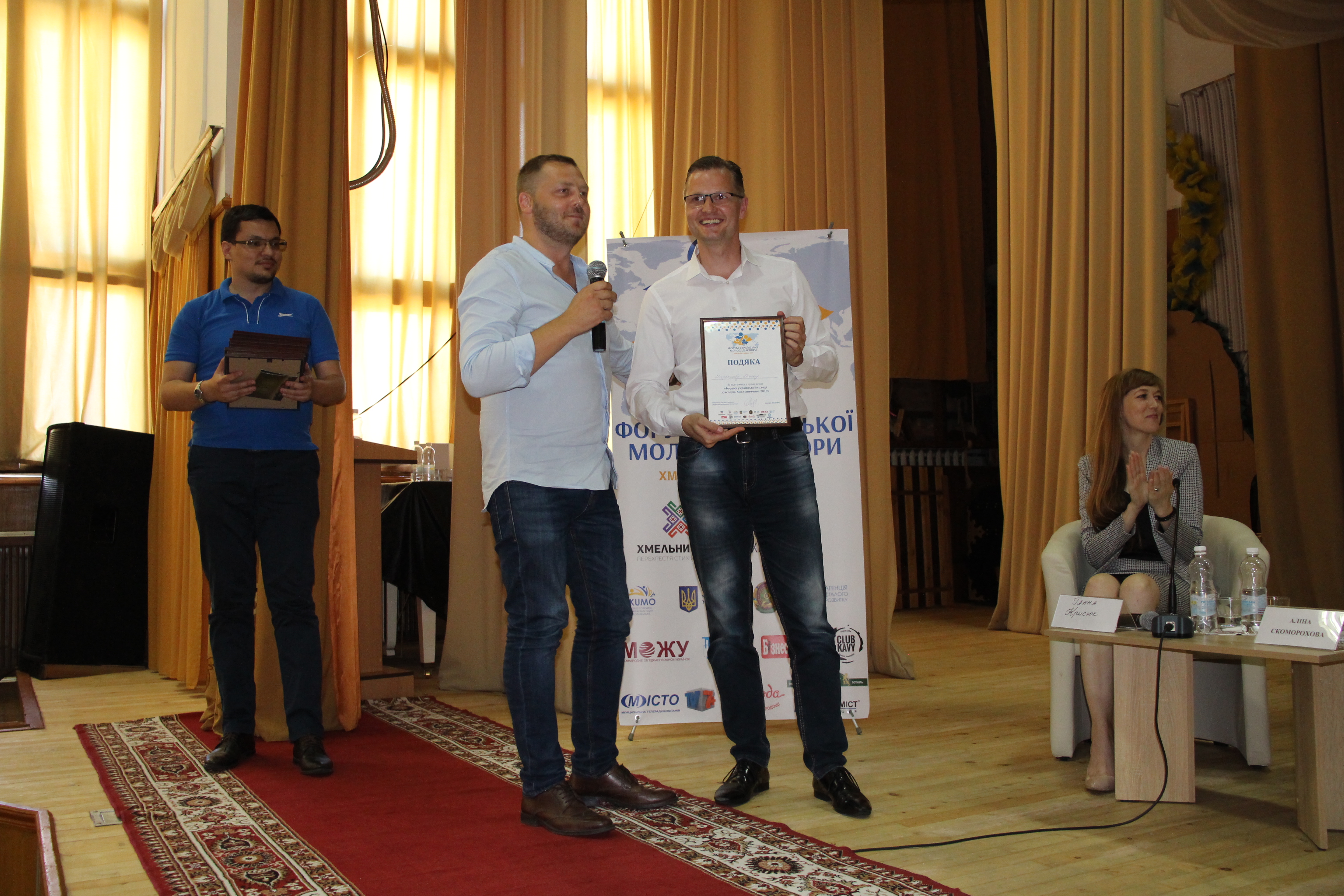 На завершення роботи дискусійних панелей голова Світового конгресу української молодіжної організації Дмитро Лєкарцев подякував спікерам, які поділилися своїм досвідом із учасниками форуму та організаторам за підготовку та проведення заходу. На згадку він вручив подяки від Світового конгресу української молодіжної організації.